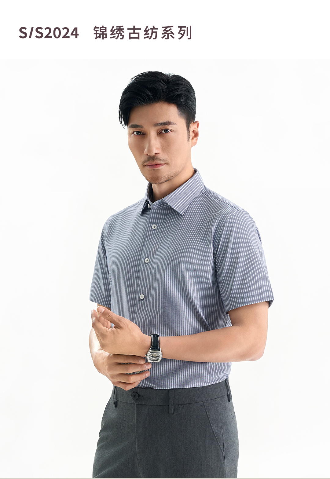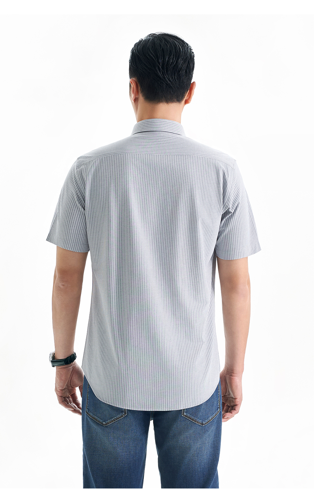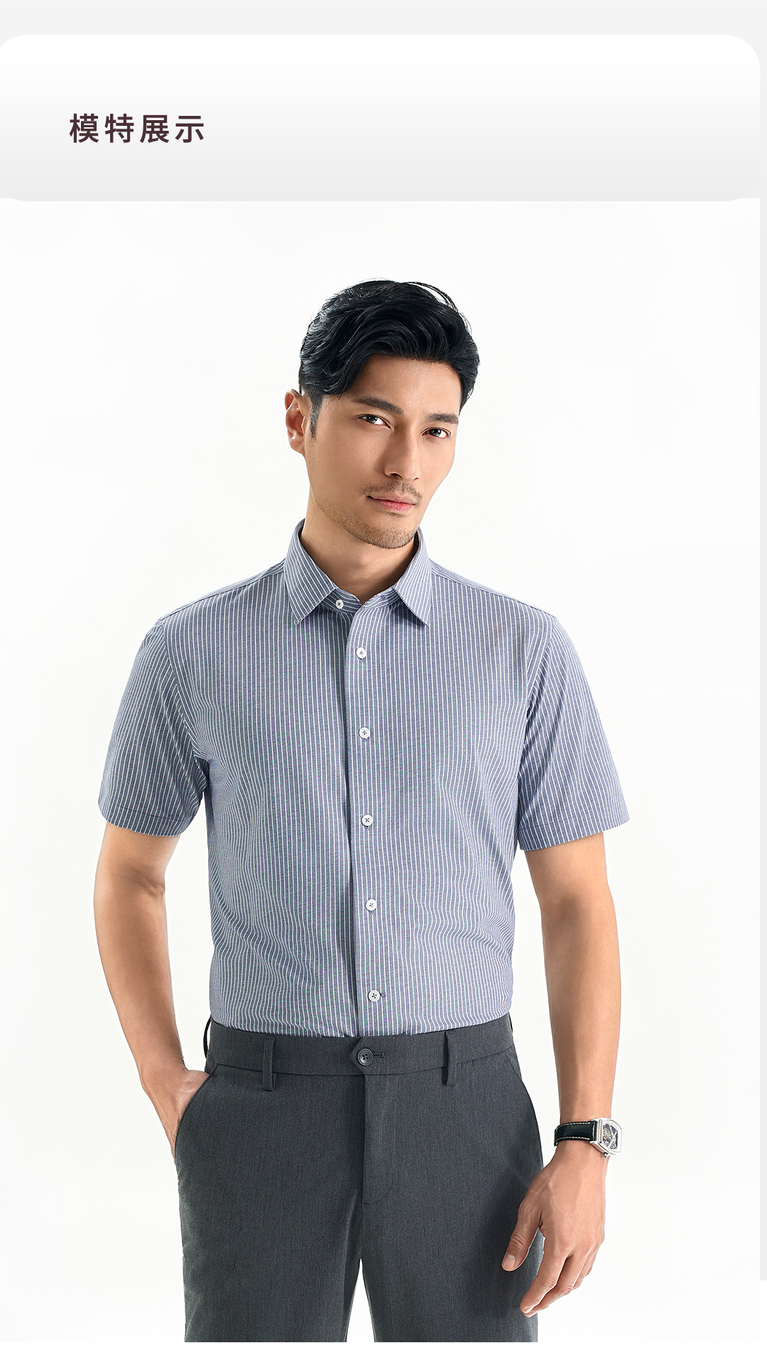 【古纺三号】条纹丝光速干透气短袖衬衫245N0F620S