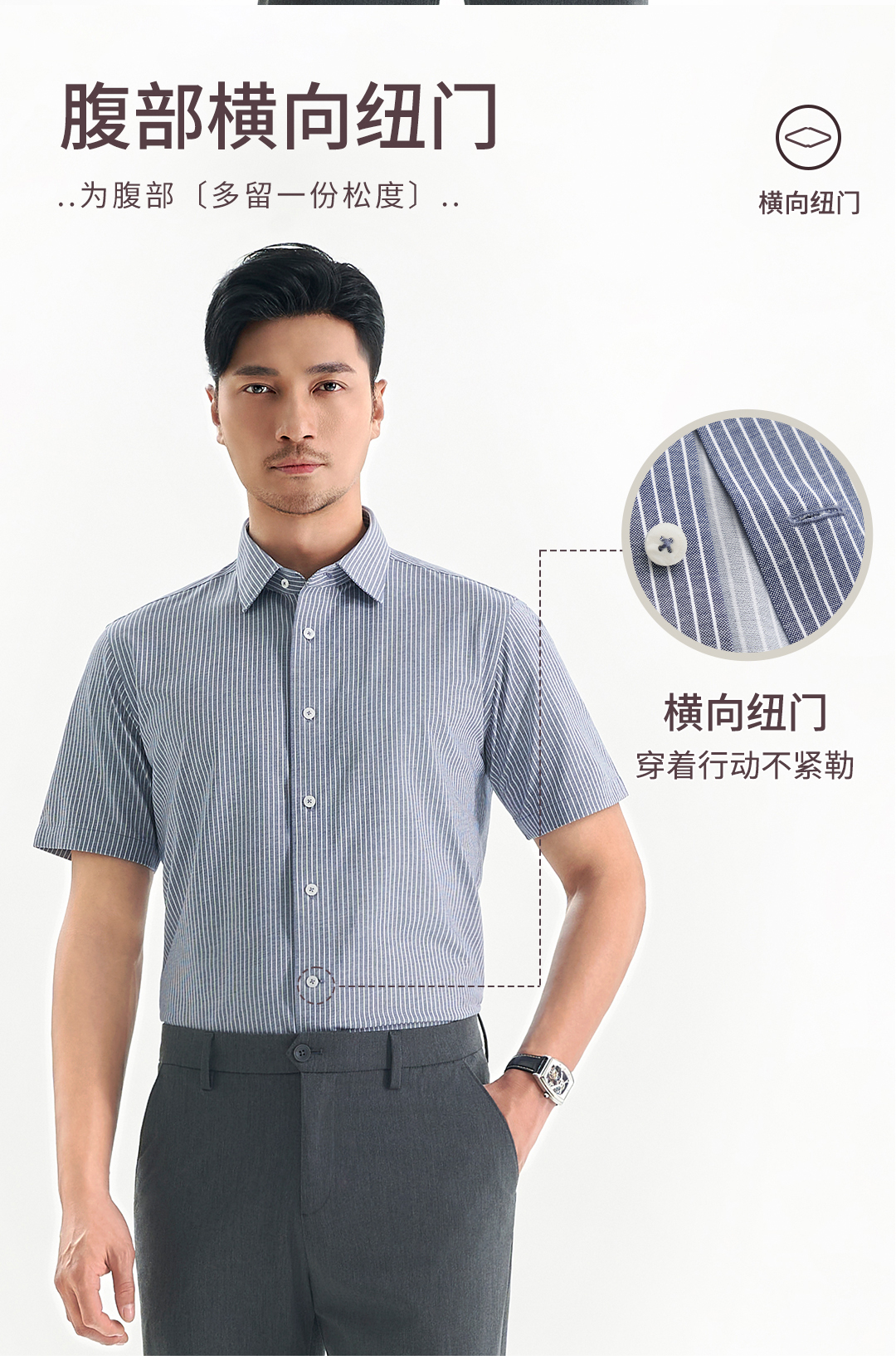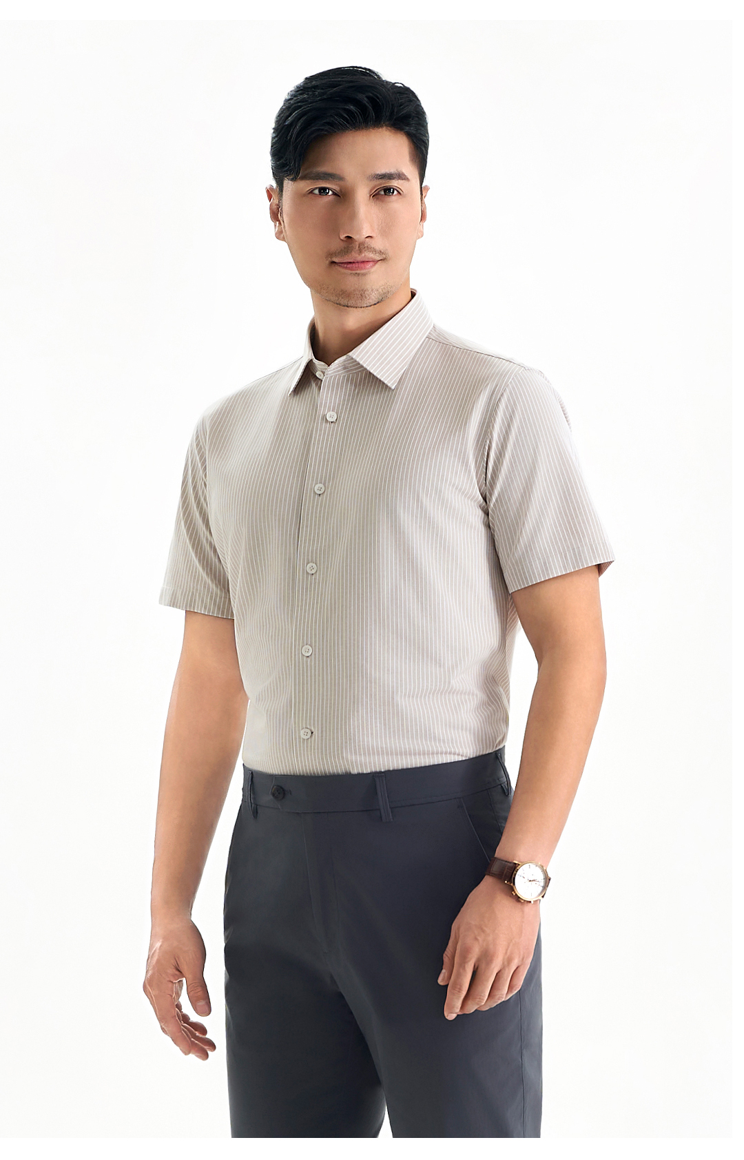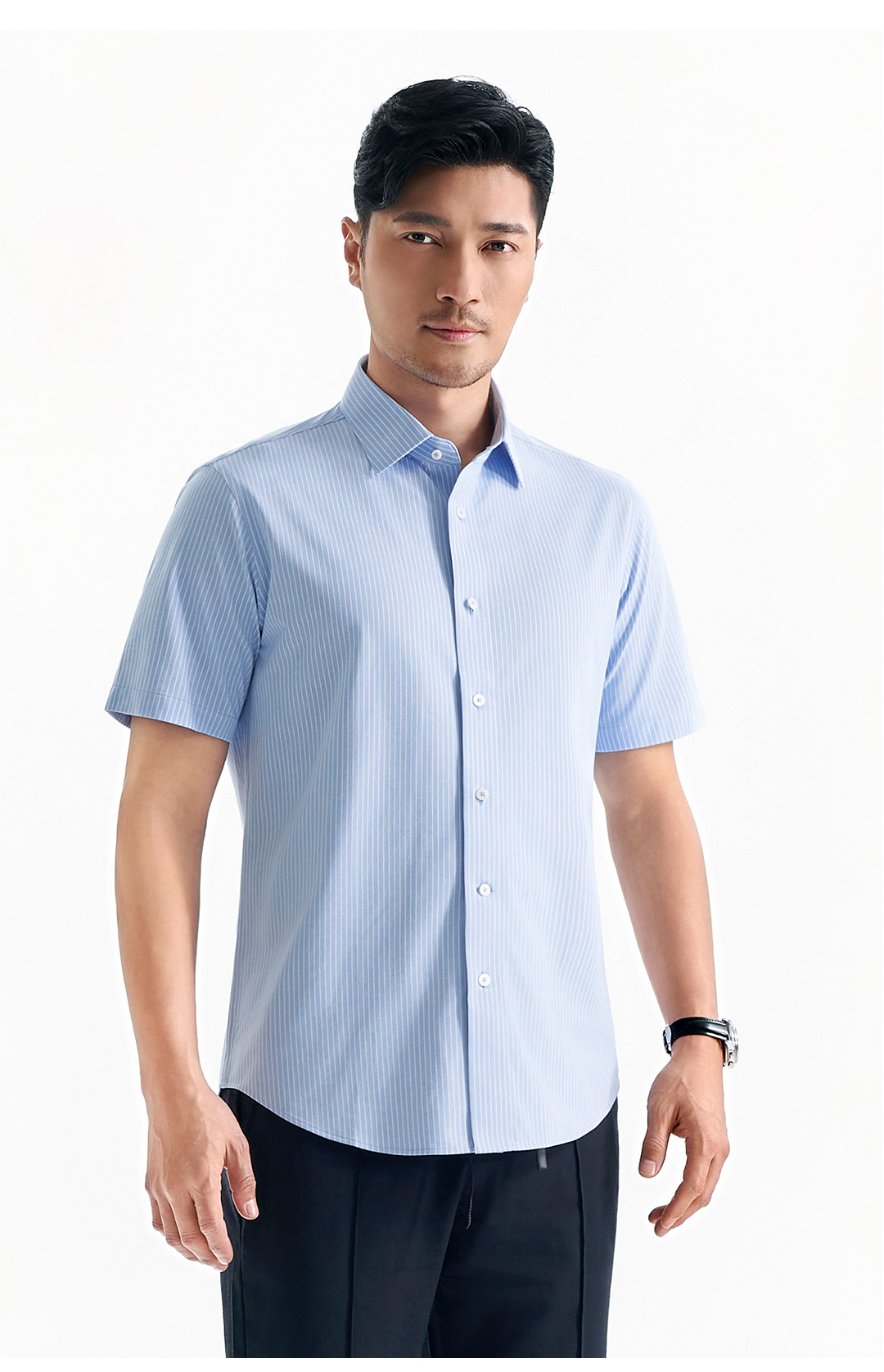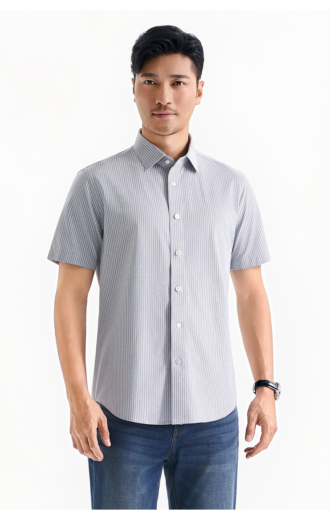 【古纺三号】条纹丝光速干透气短袖衬衫245N0F620S