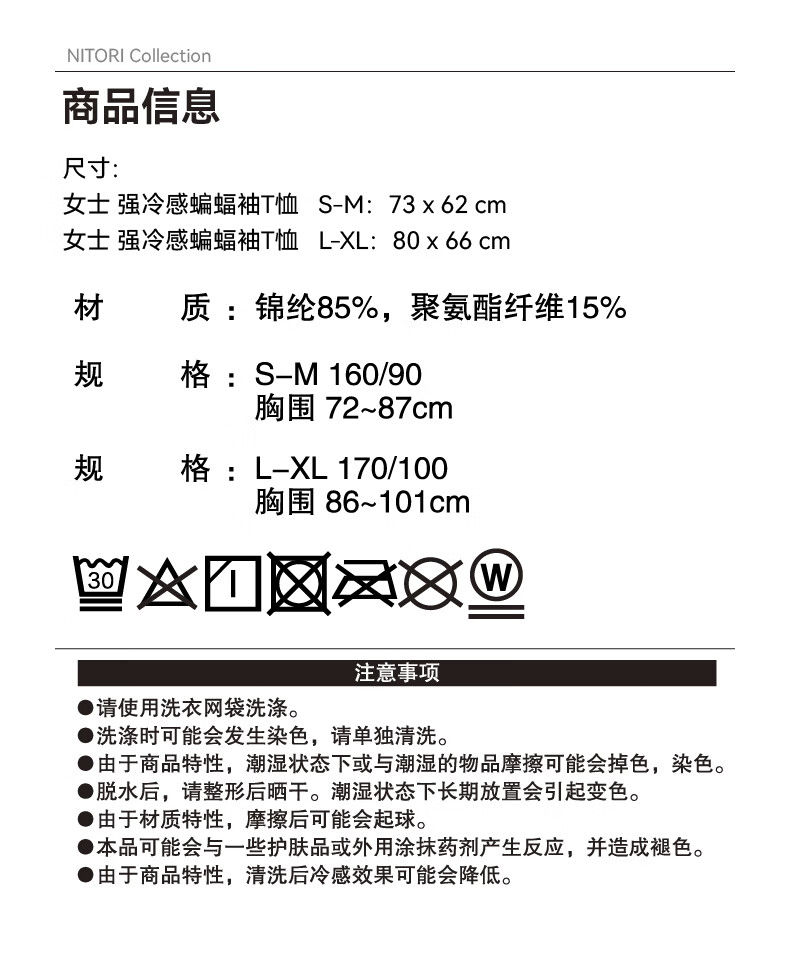 NITORI宜得利家居 居家服女士宽松休闲衣服凉感家居服强冷感蝙蝠袖T恤