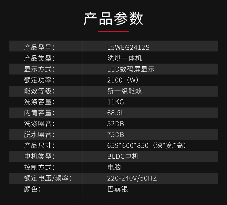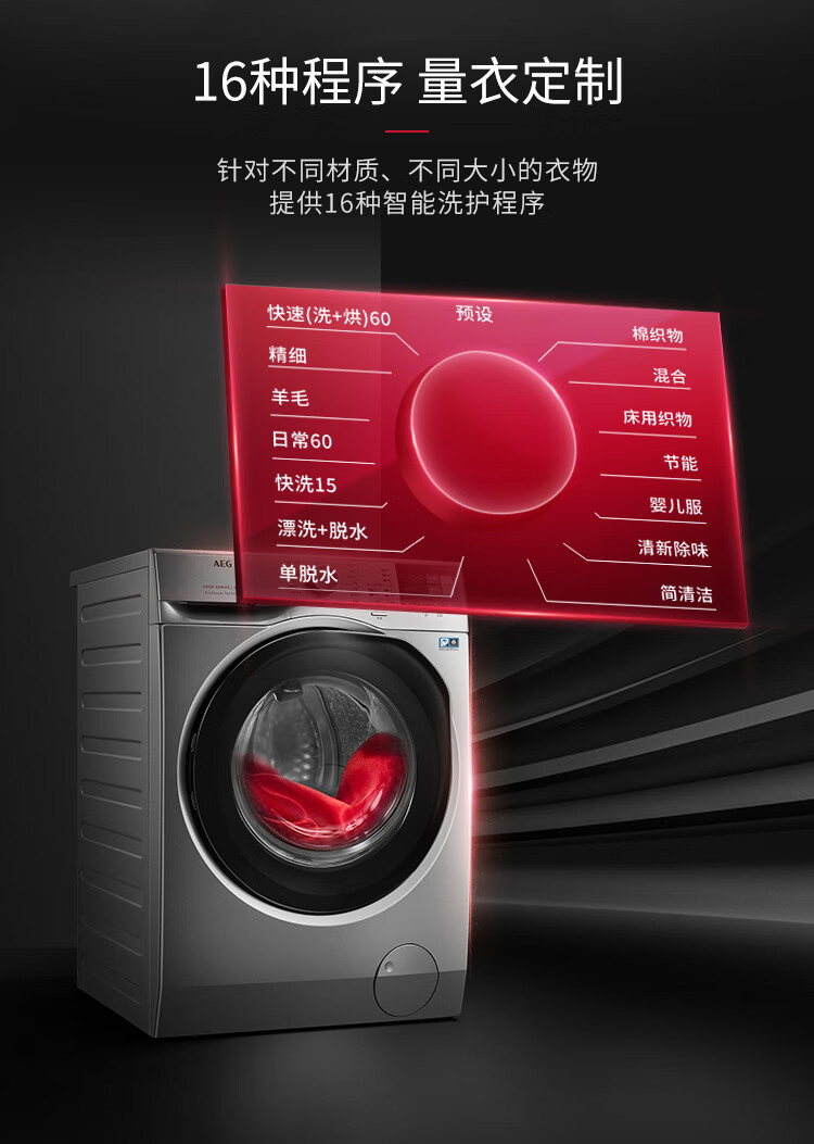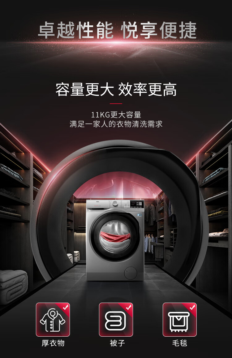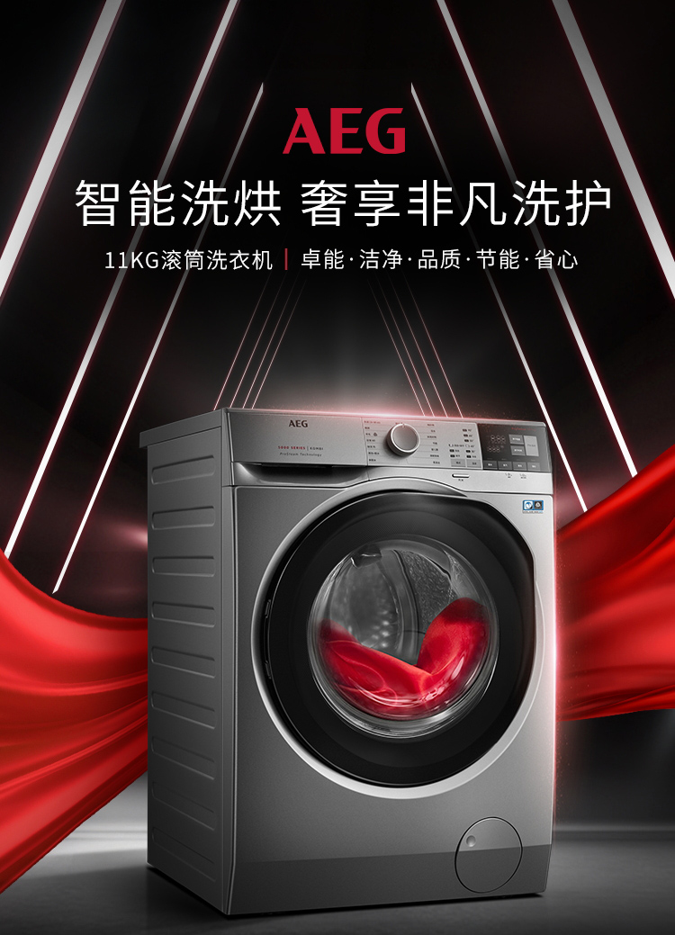 AEG进口家用滚筒全自动洗烘一体机 智能变频洗衣机11公斤 全新喷淋洗 蒸汽预熨烫 羊毛蓝标L5WEG2412S 银色