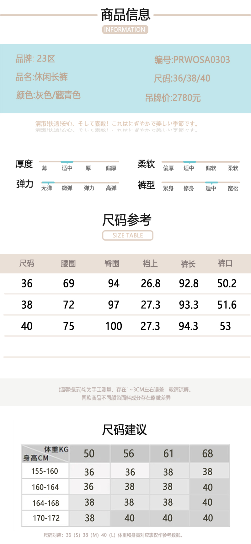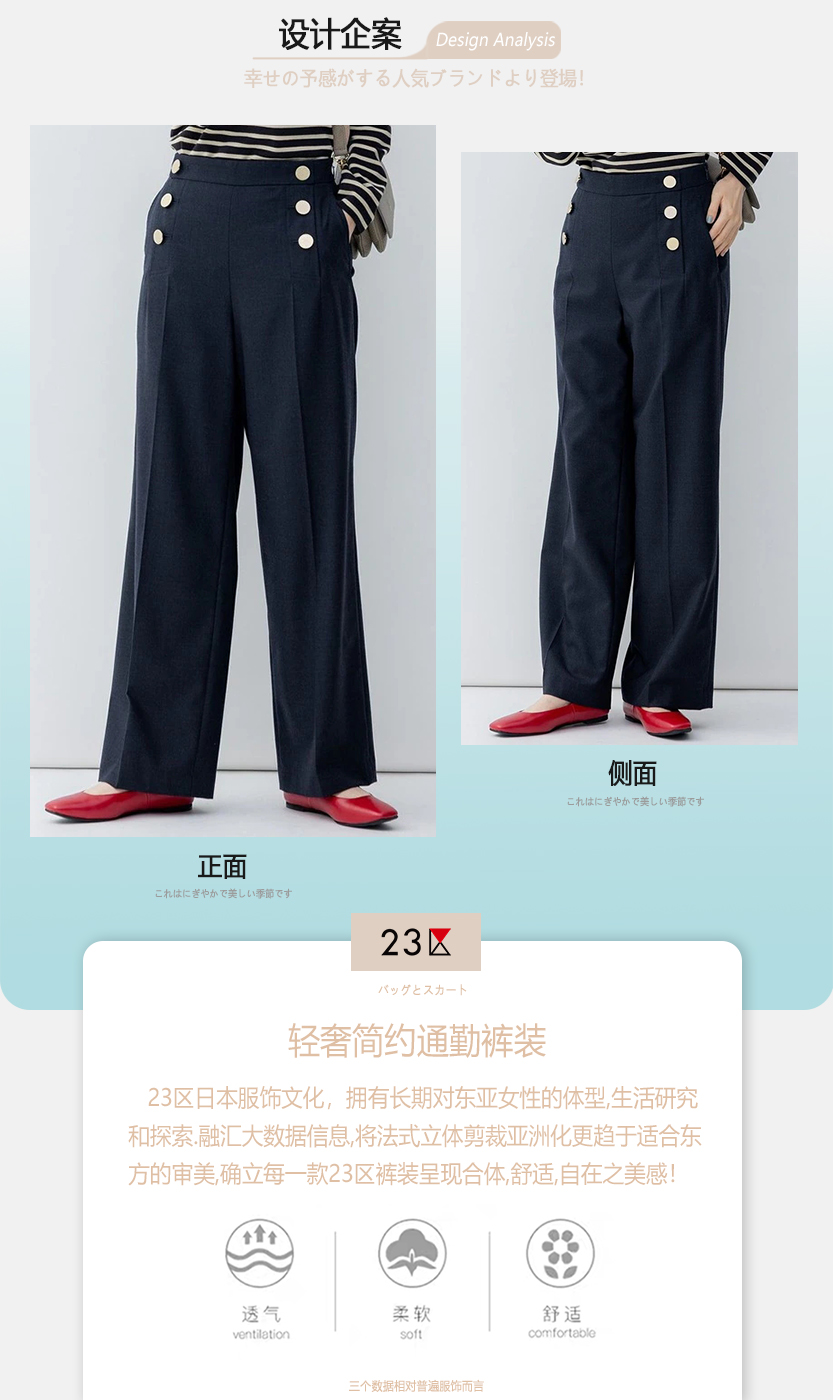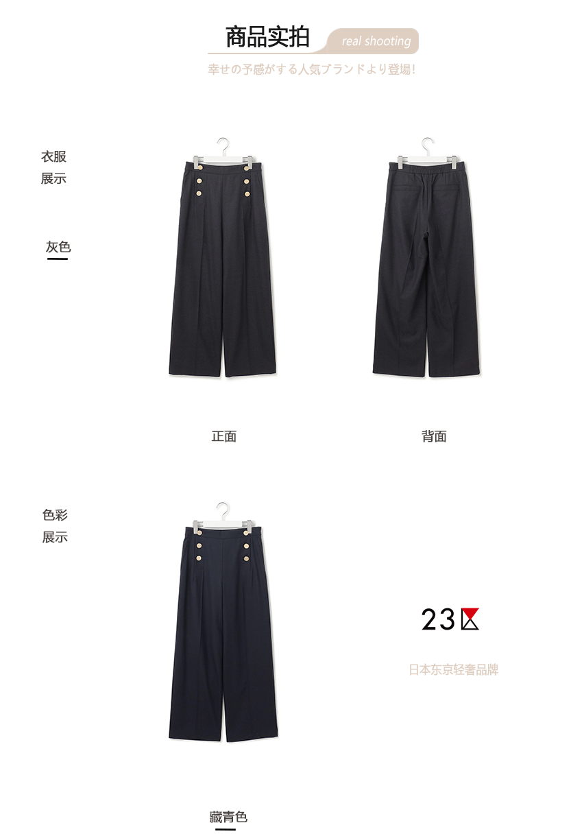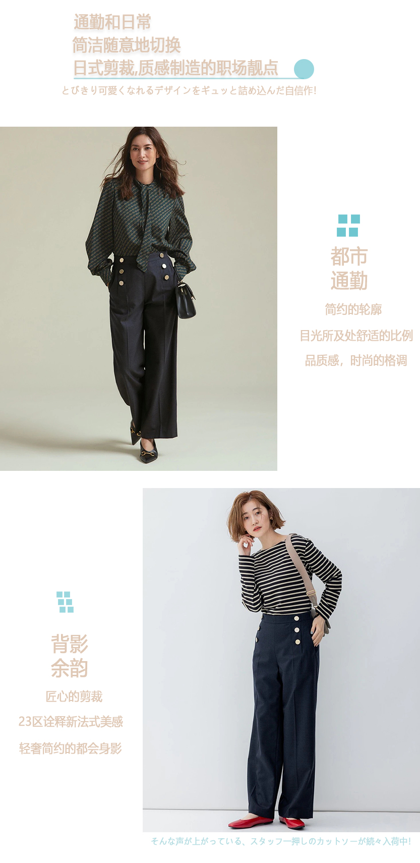 23区日系春季通勤羊毛混纺半松紧腰直筒长裤休闲阔腿裤商场同款