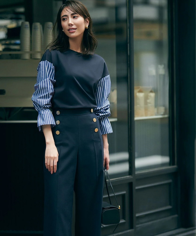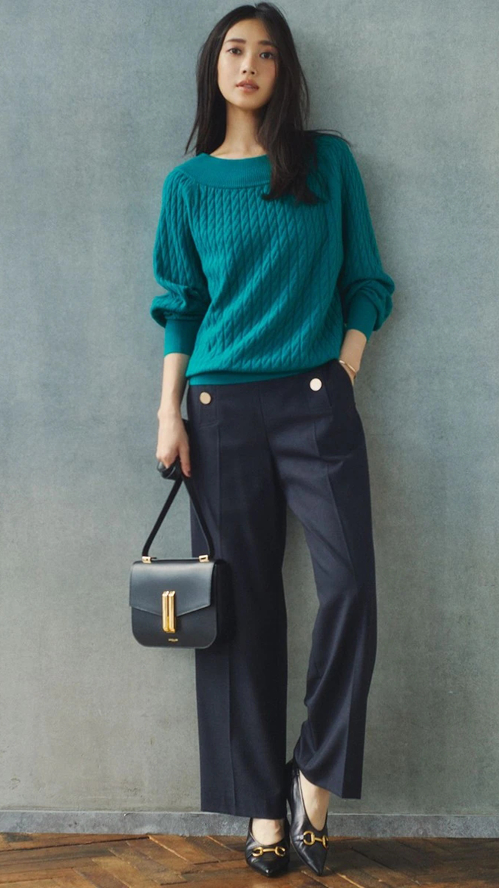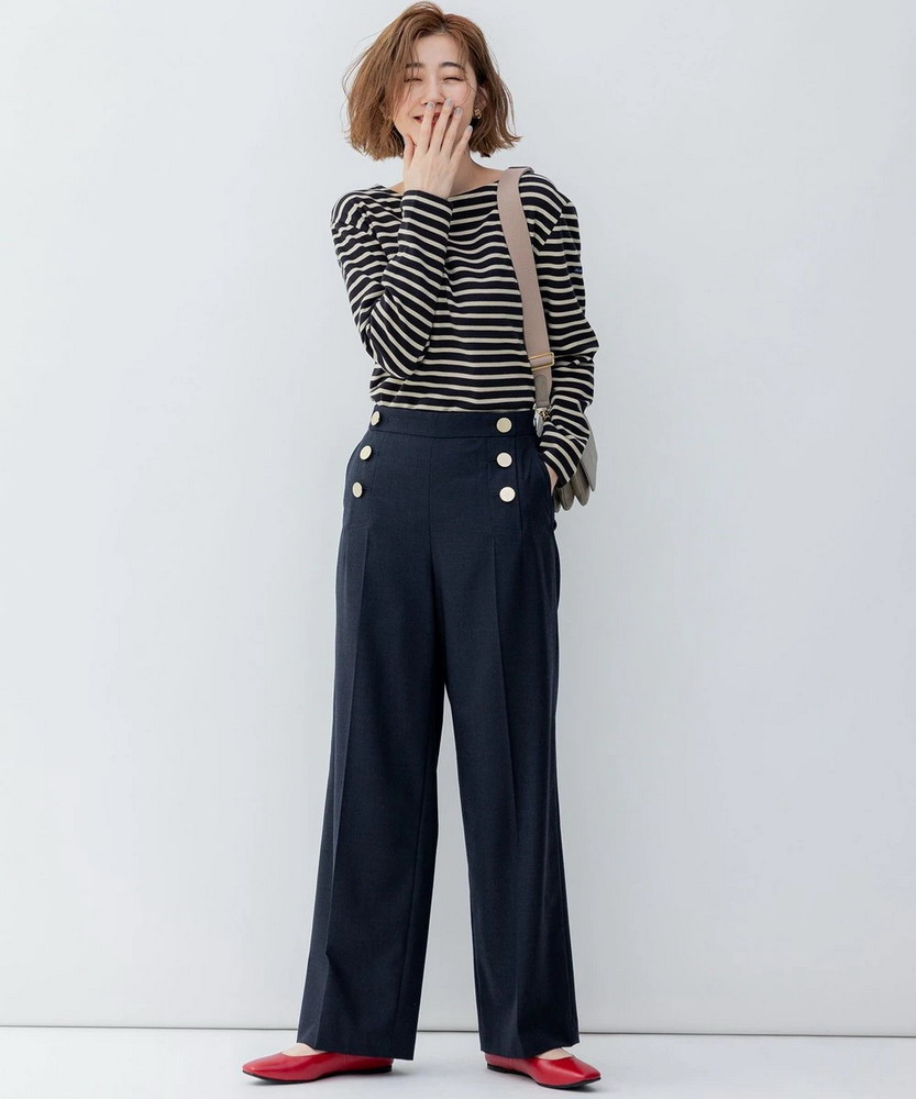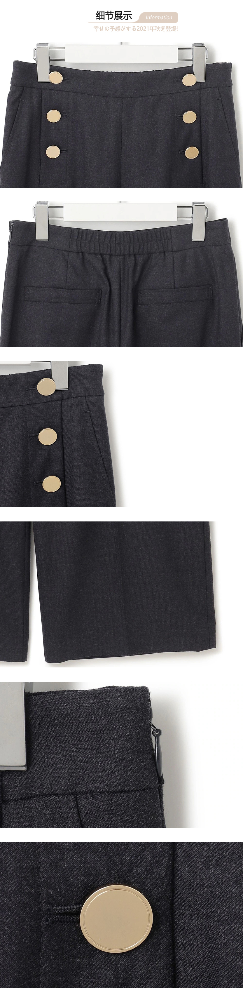 23区日系春季通勤羊毛混纺半松紧腰直筒长裤休闲阔腿裤商场同款