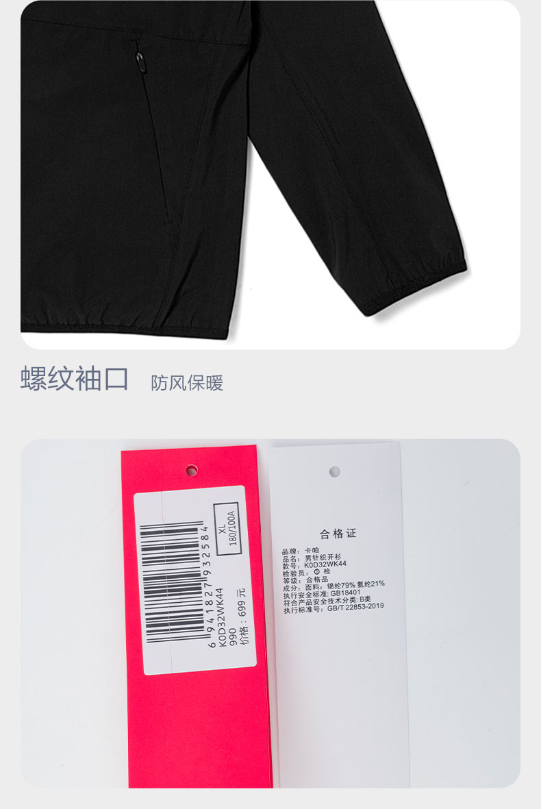 Kappa卡帕开衫夹克2023男运动卫衣立领长袖针织教练外套K0D32WK44