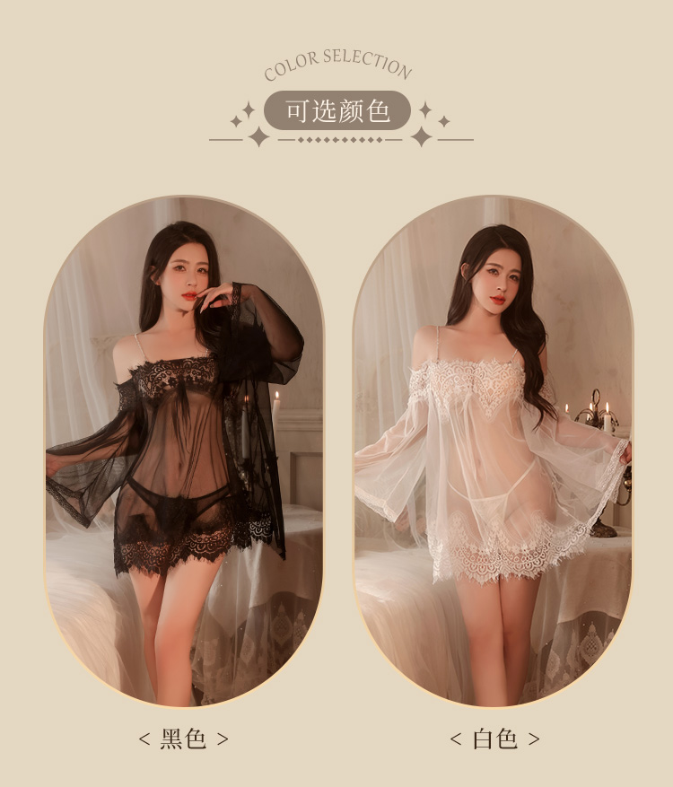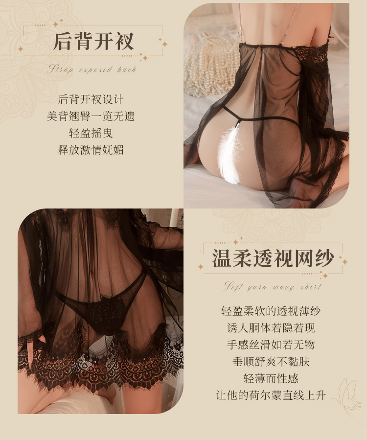 【情趣内衣】霏慕 蝴蝶绑带饰腰身透视睡裙ZY102