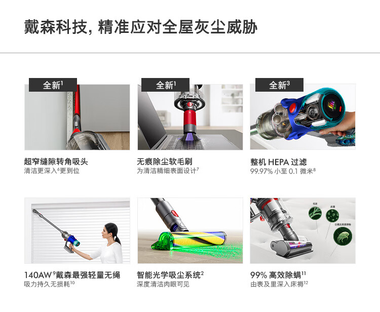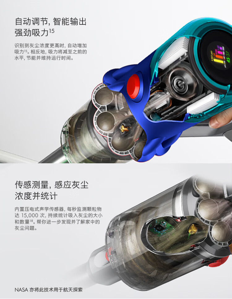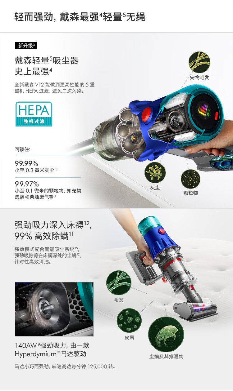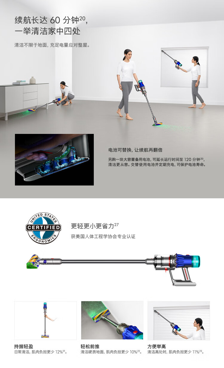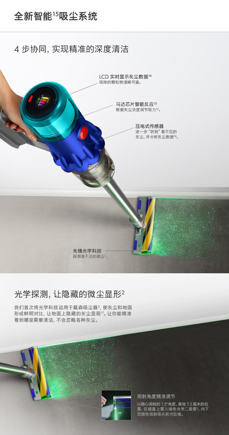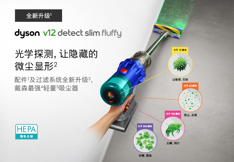 戴森(Dyson) V12 Detect Slim Fluffy无绳吸尘器(2022款蓝色)手持无线 除螨 宠物 家庭适用
