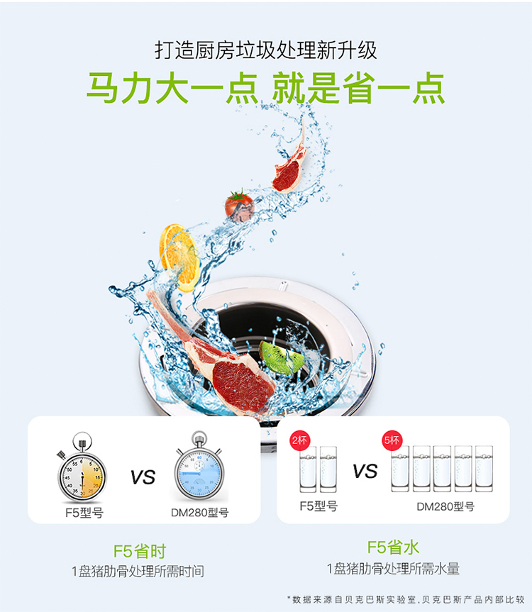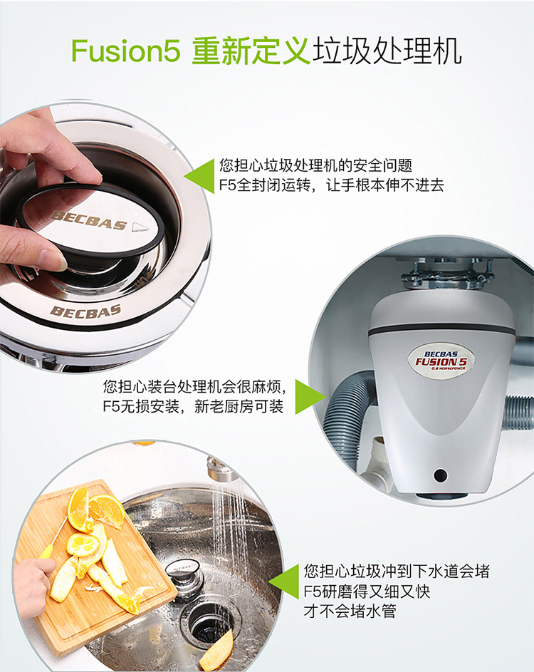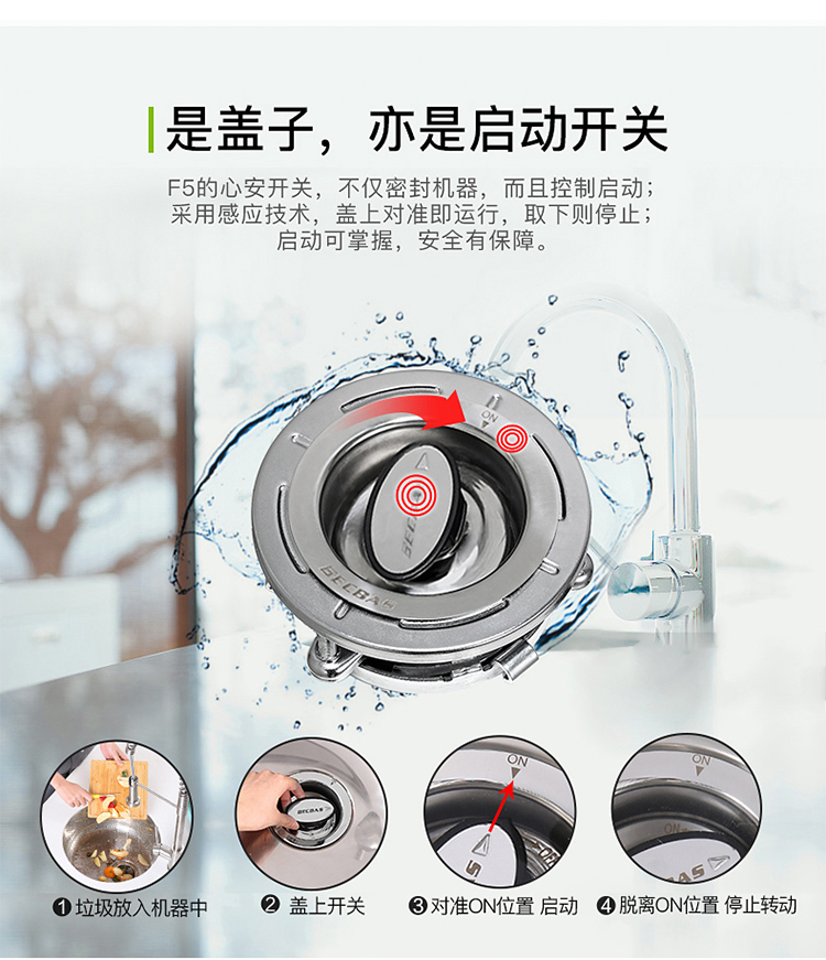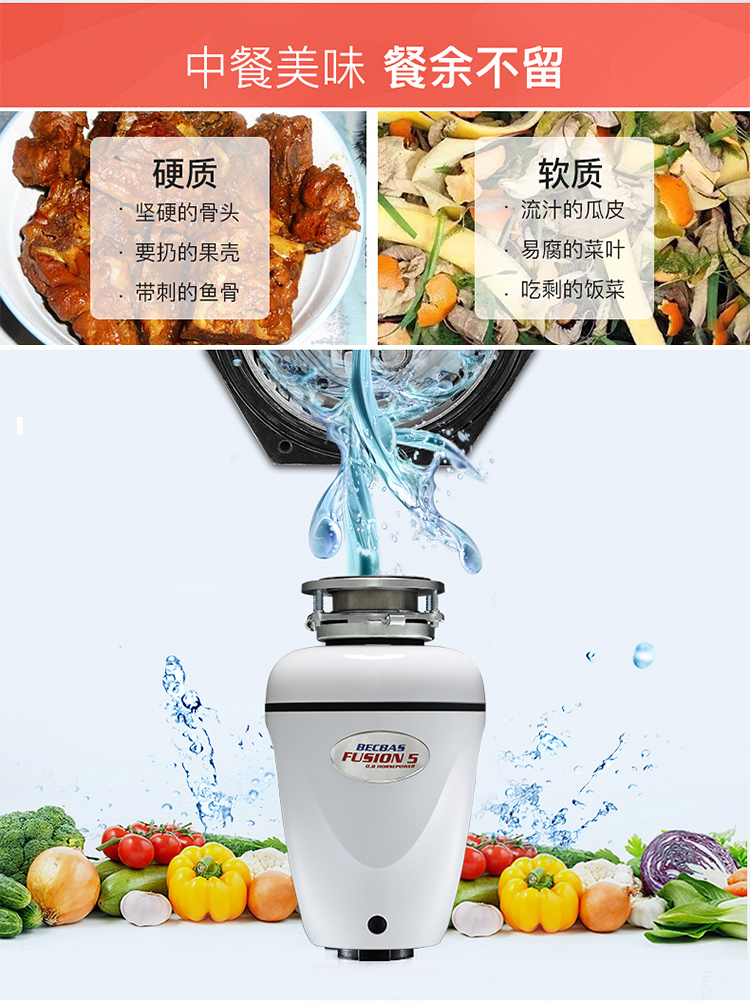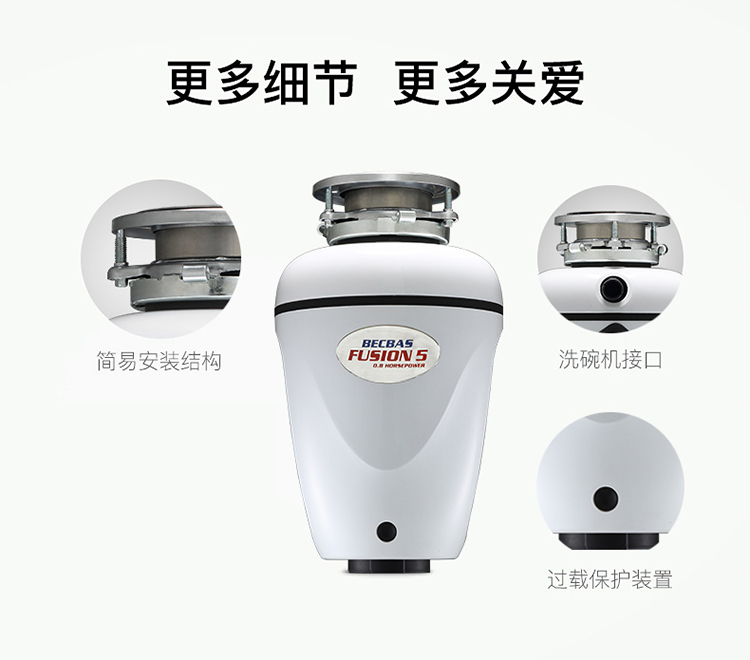贝克巴斯/垃圾处理器/F5/白色 垃圾处理器厨房厨余粉碎机感应开关 定时关机Fusion5(F5e)