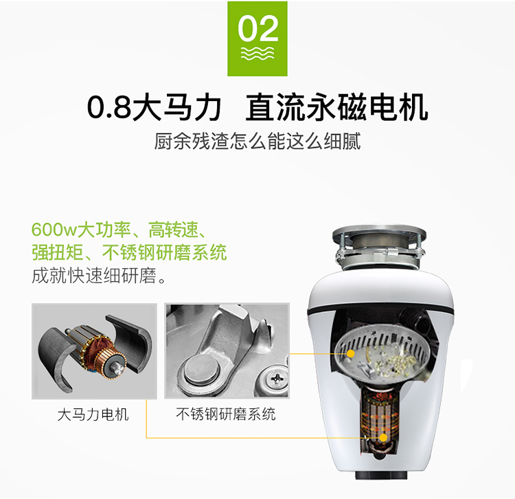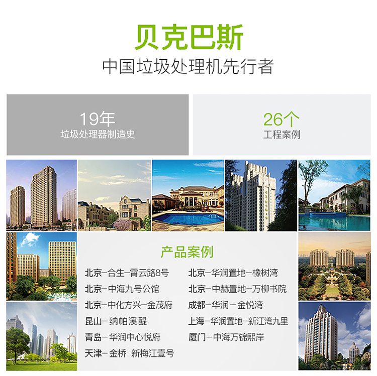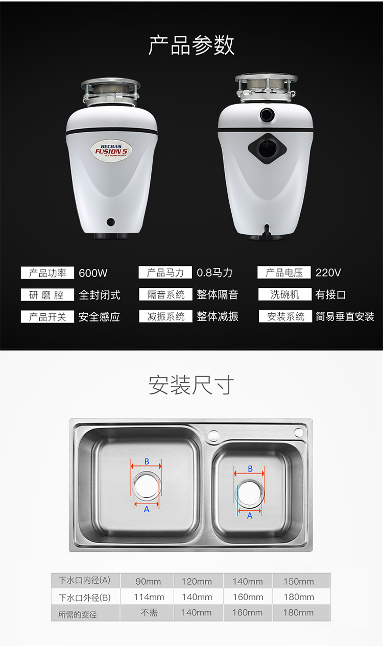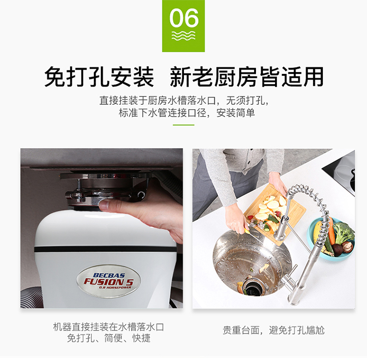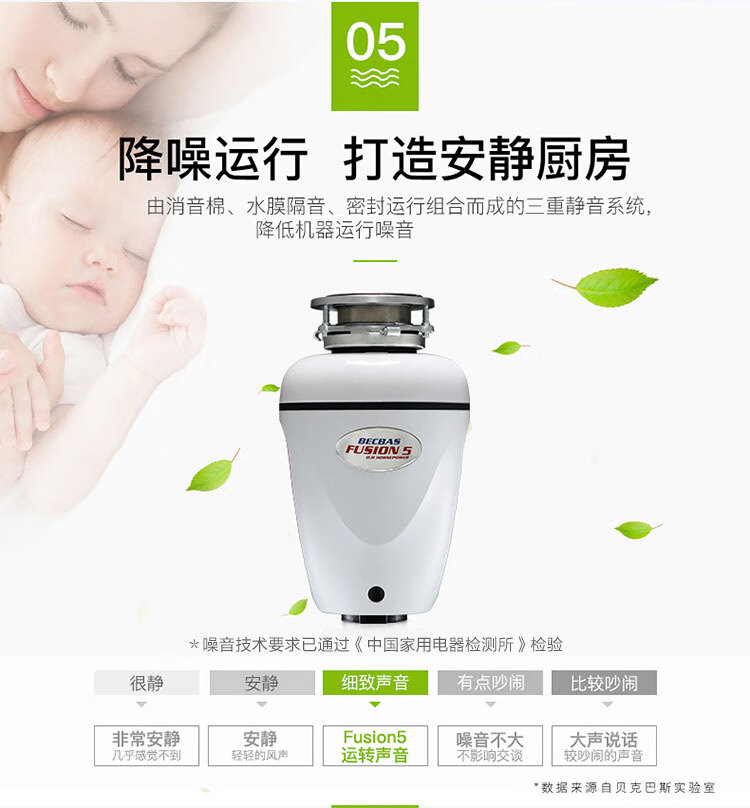 贝克巴斯/垃圾处理器/F5/白色 垃圾处理器厨房厨余粉碎机感应开关 定时关机Fusion5(F5e)