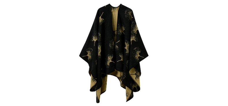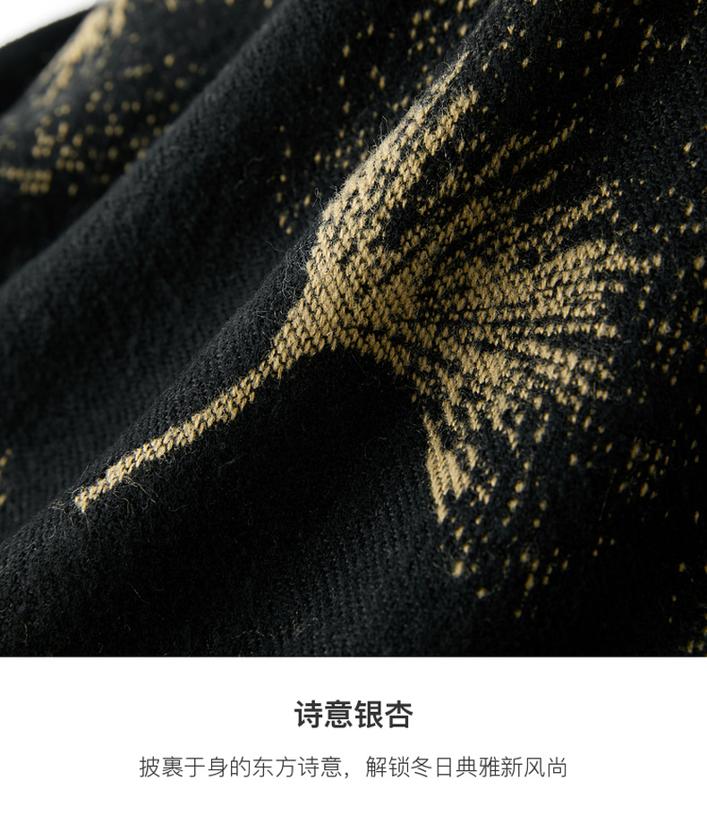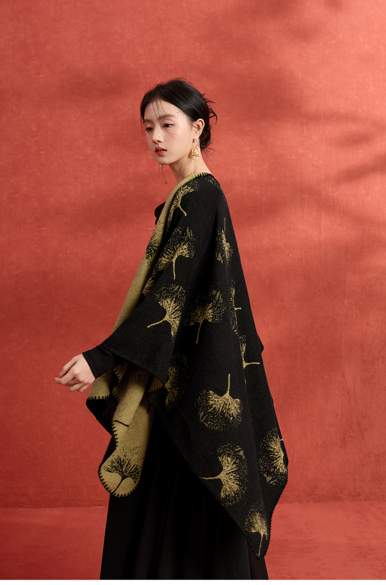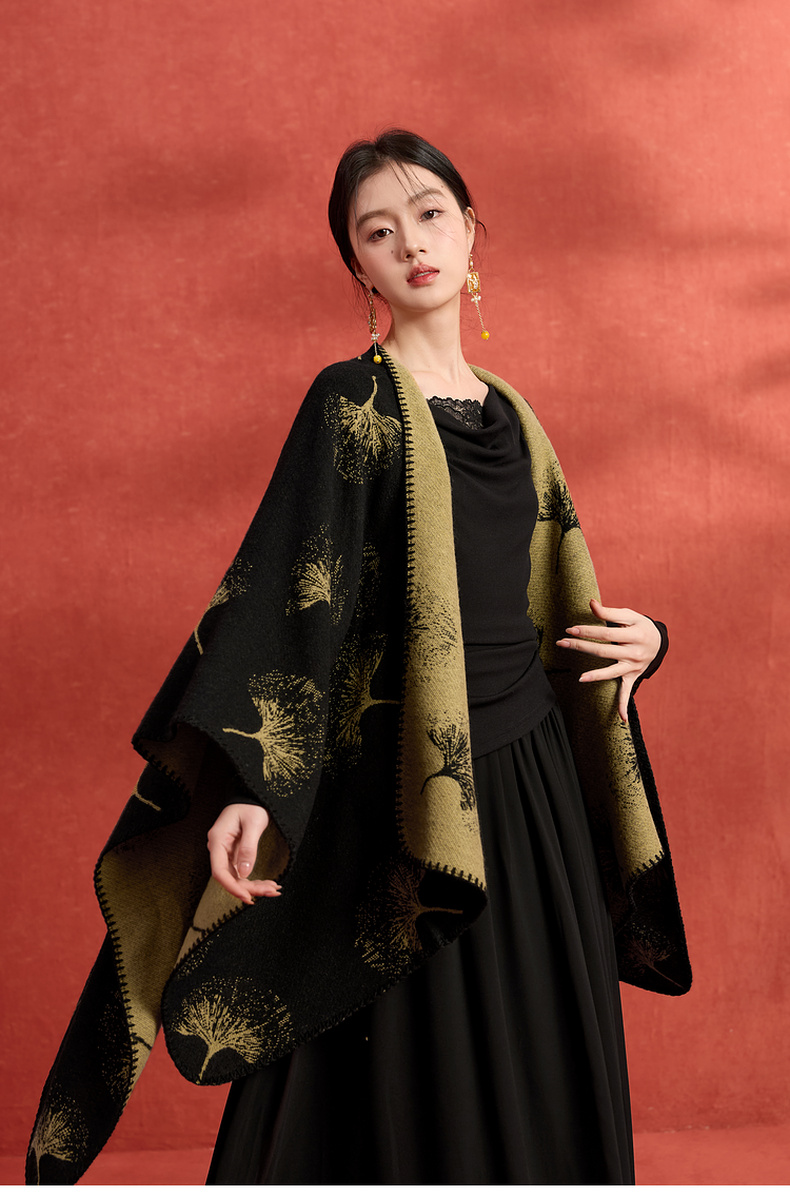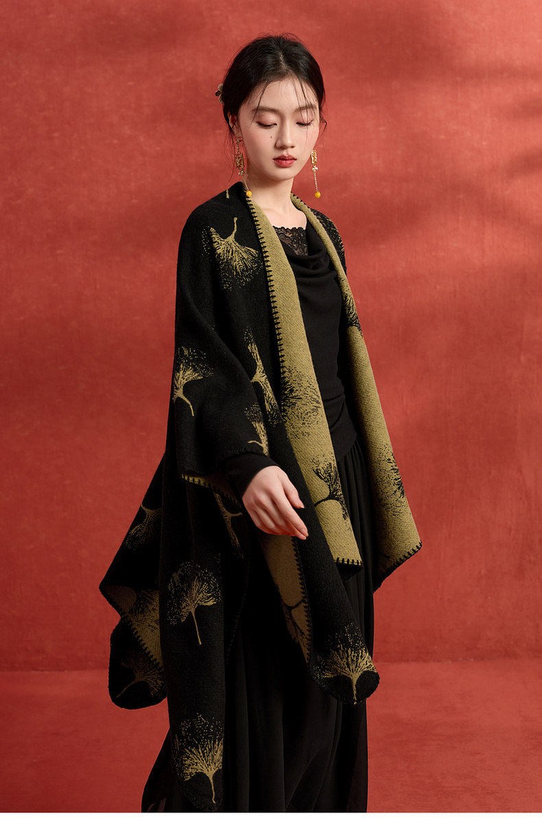 三彩2025新款国风银杏披肩保暖氛围感国潮双面可穿时尚高级感女