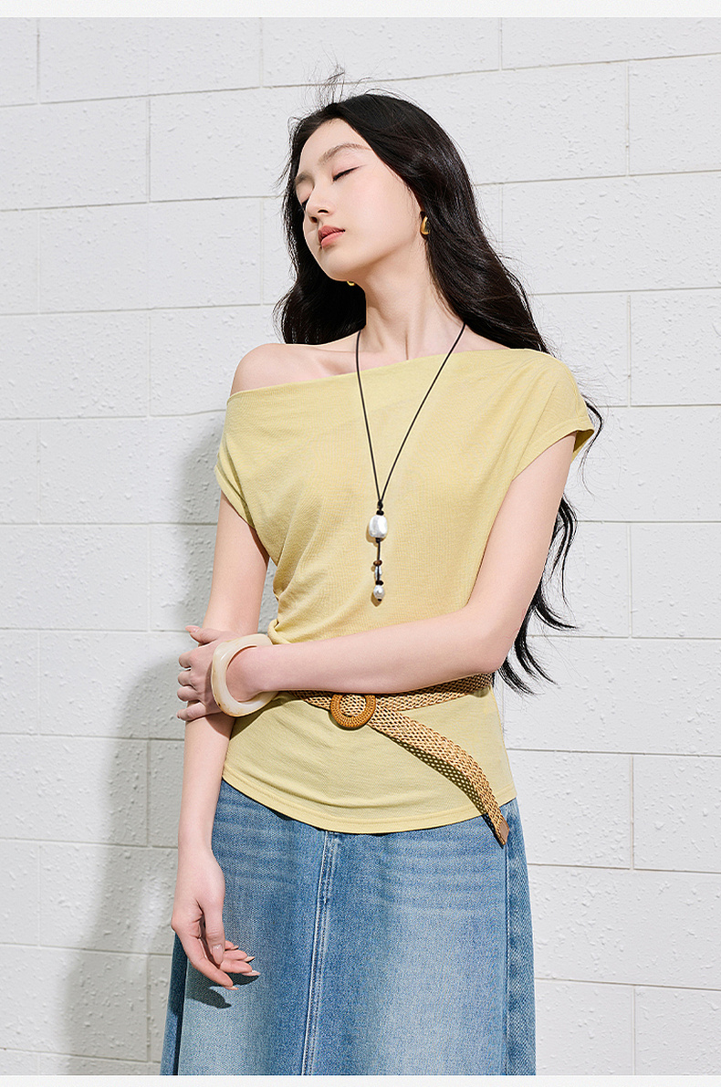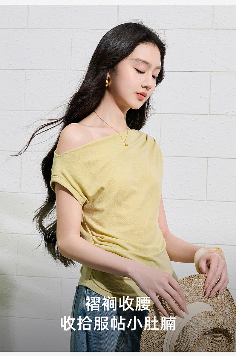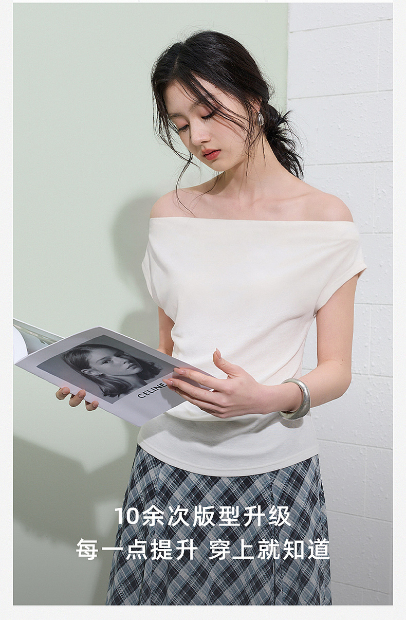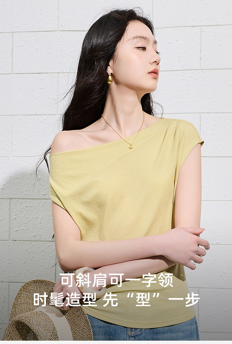 【社群秒杀】【莱赛尔瘦瘦T】三彩2026夏季新款一字领设计感T恤短袖上衣套头S