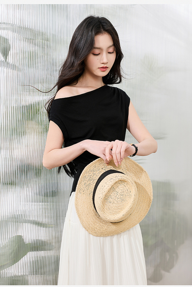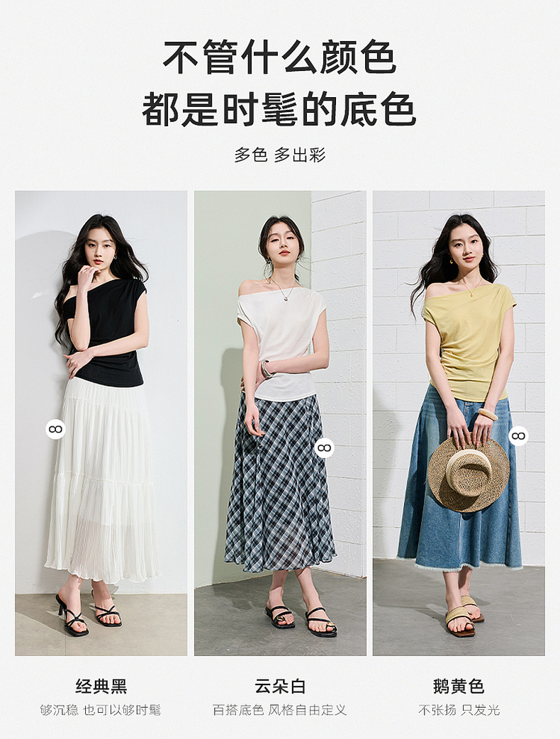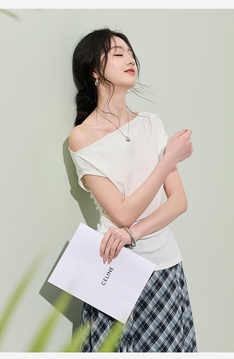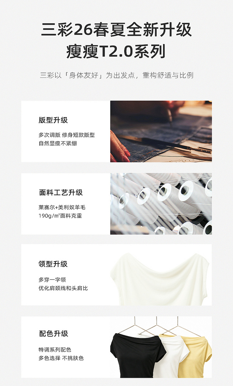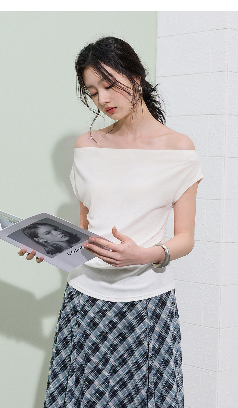 【社群秒杀】【莱赛尔瘦瘦T】三彩2026夏季新款一字领设计感T恤短袖上衣套头S