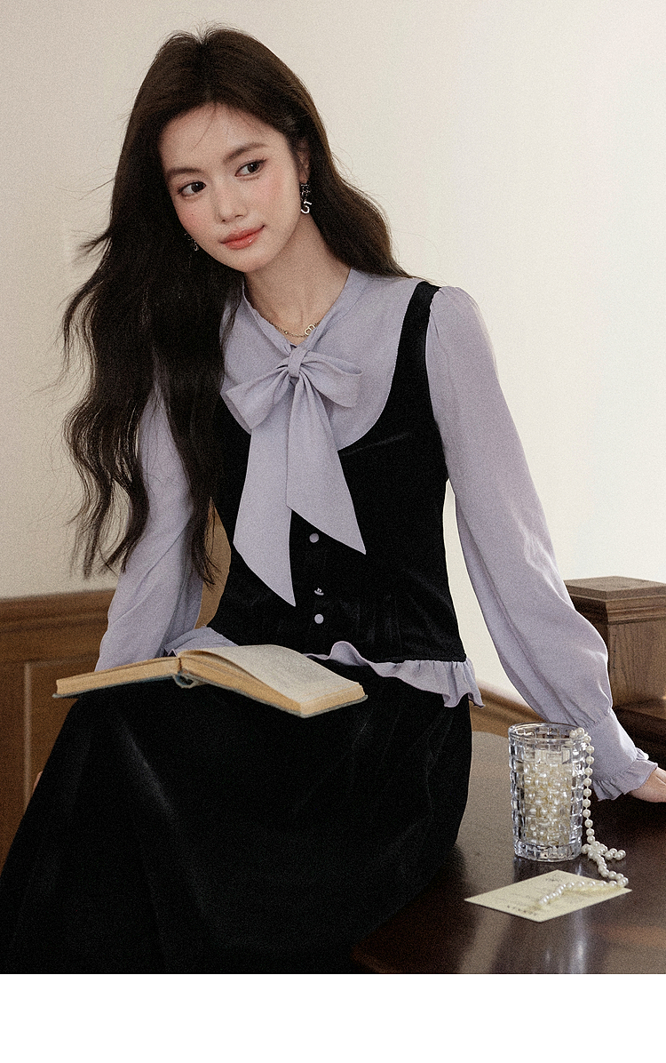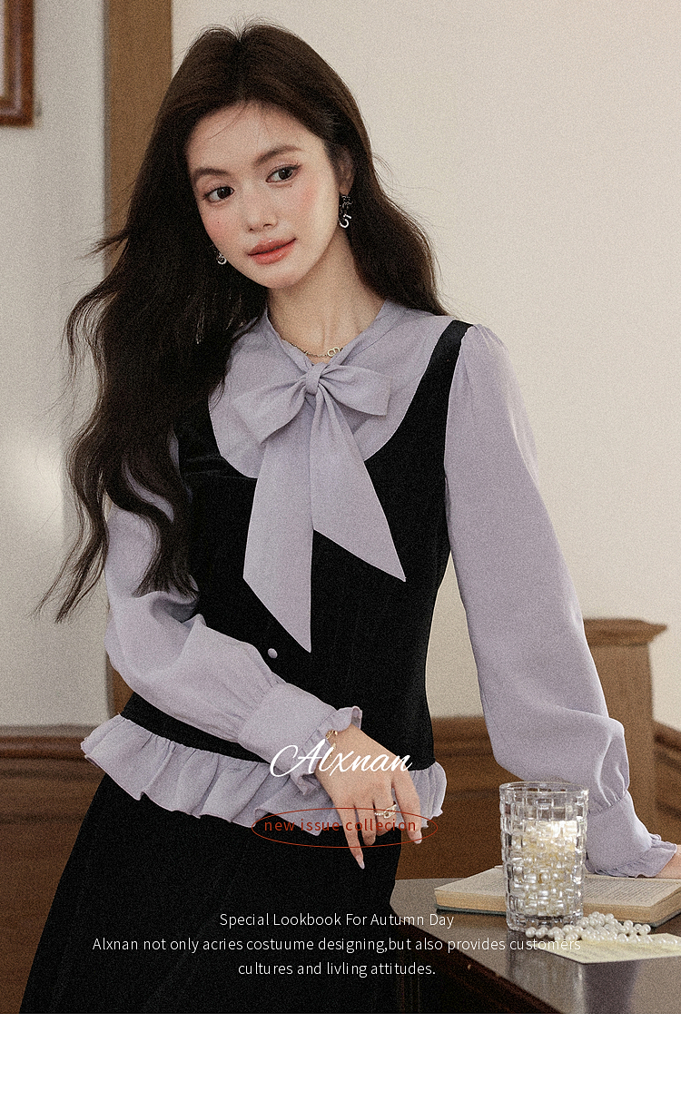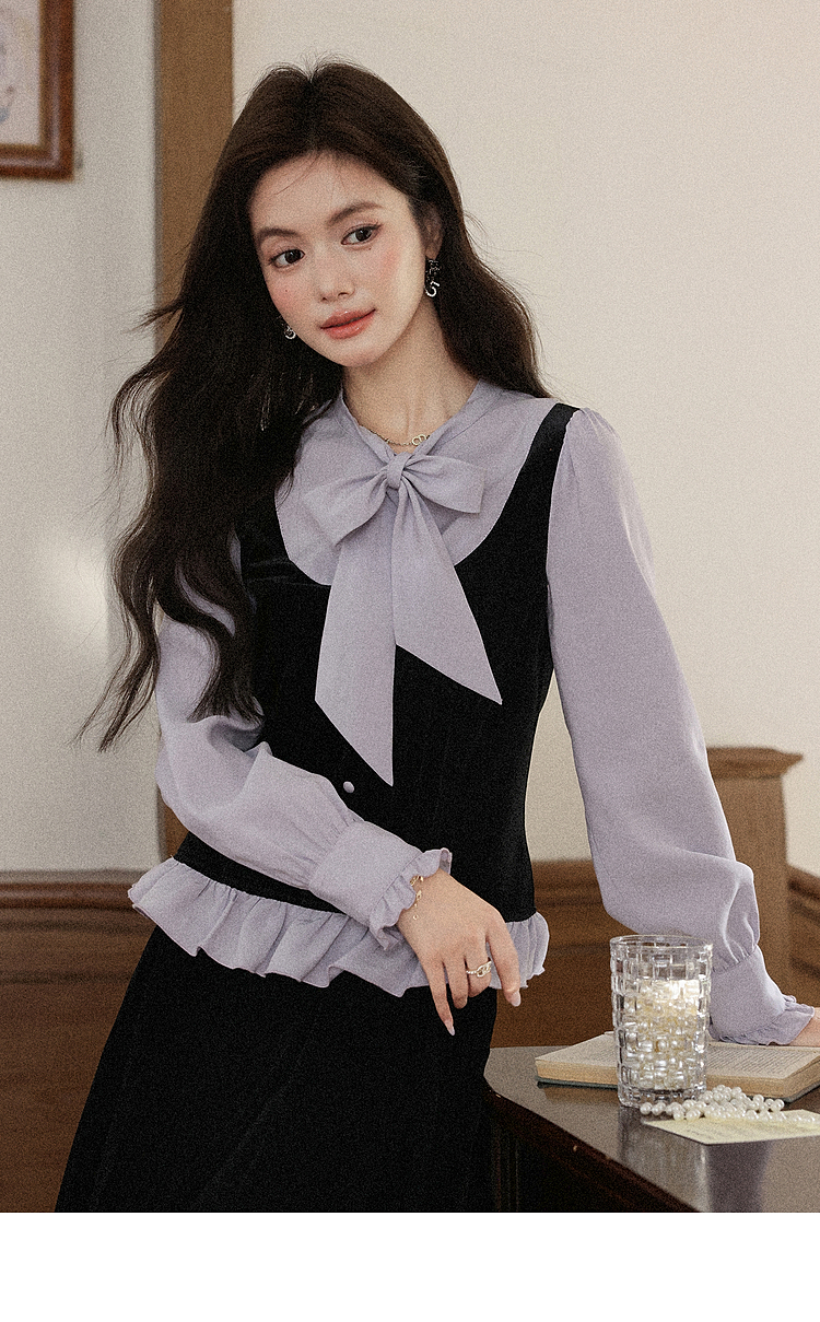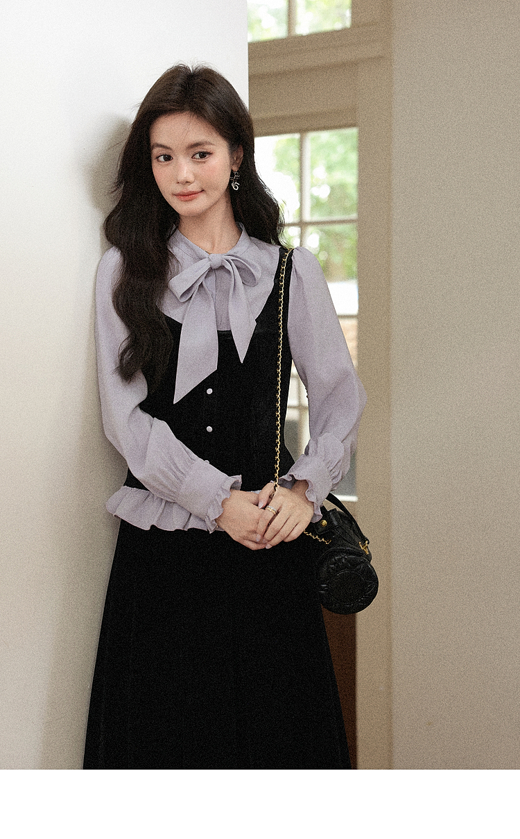 【65折秒杀】鹿向南「紫气东来」法式长袖紫色衬衫女秋季新款高级洋气独特上衣L57666