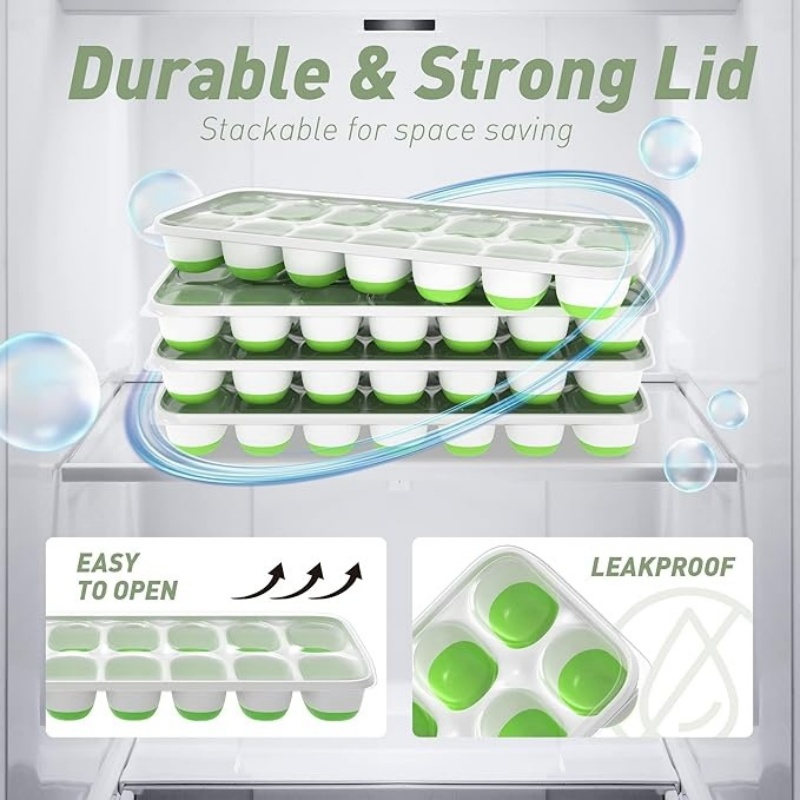 可堆叠设计:带有可拆卸盖子的冰格,不仅能防止冰块散发冷冻室气味,还能让托盘完美叠放。可叠放设计有助于节省空间,保持冷冻室的清洁和整洁。