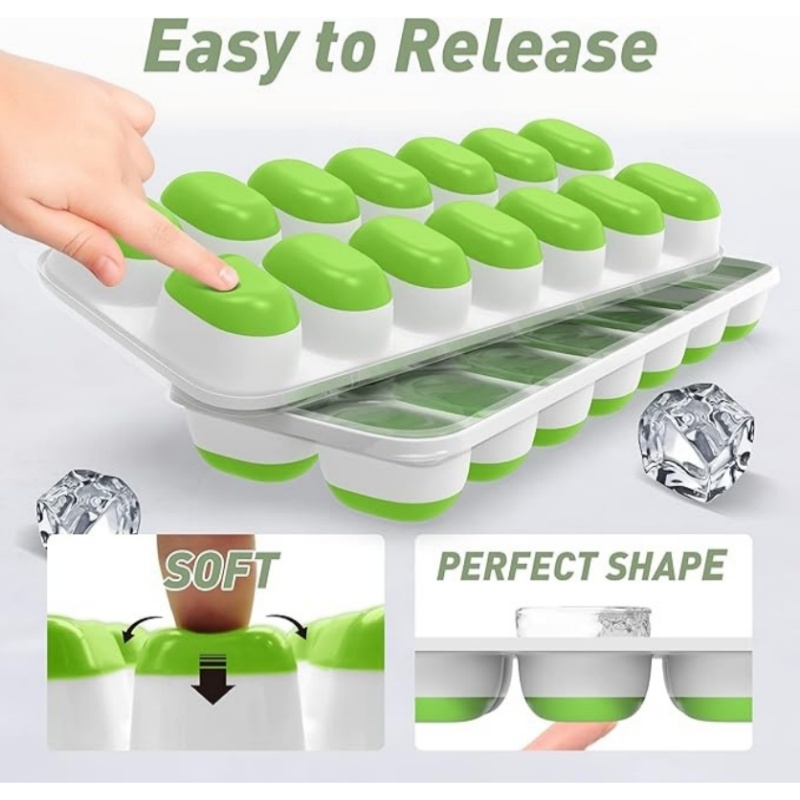 易于释放:冰格巧妙地结合了塑料和硅胶。托盘顶部半块是塑料,这有助于保持形状,不像全硅胶托盘那样。而且硅胶底部让冰块释放非常容易。因此,与旧式硬塑料托盘不同,这里不需要费力扭转来取出冰块。此外,这些托盘还能制成矩形冰块,非常适合任何饮品。它们非常适合做婴儿食品、鸡尾酒、咖啡、水果、汽水、果汁、威士忌等。有了这些托盘,你可以随时享用冰饮。