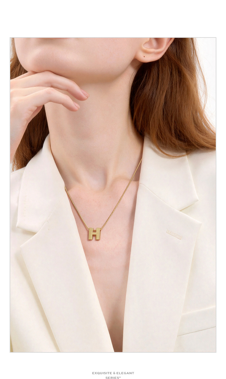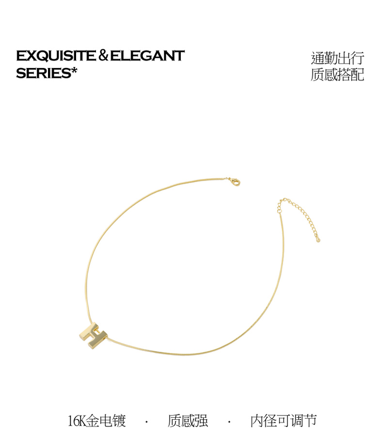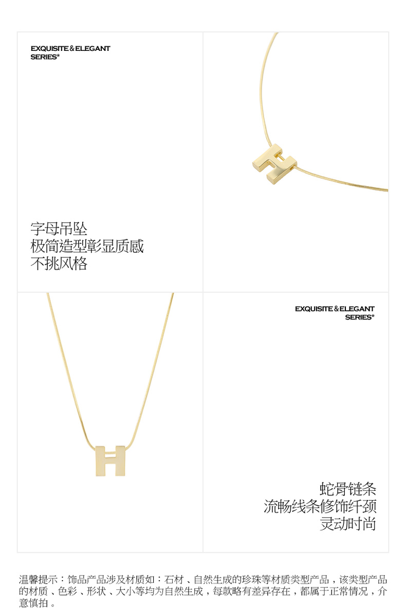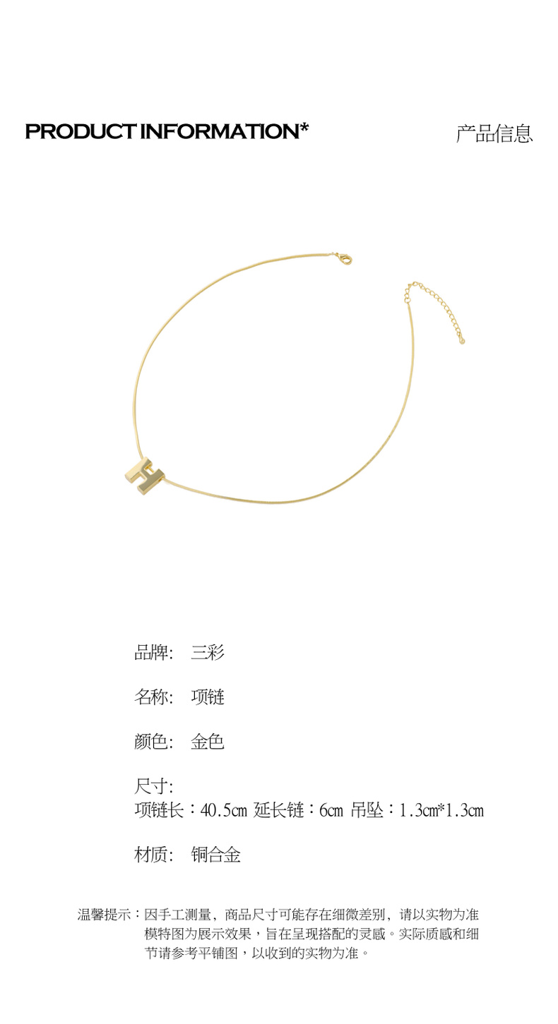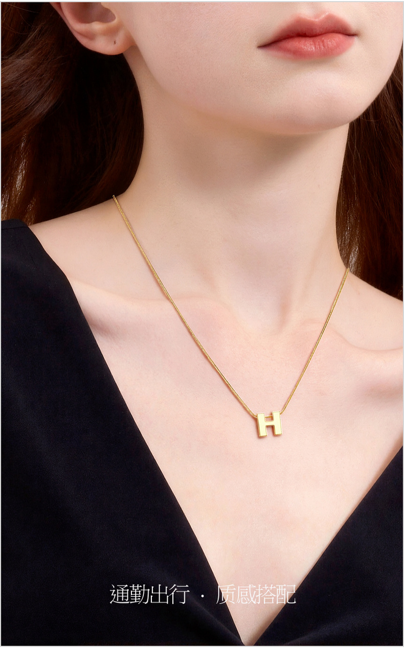 三彩2026新款镀金字母H吊坠项链极简轻奢小众设计感通勤锁骨链女