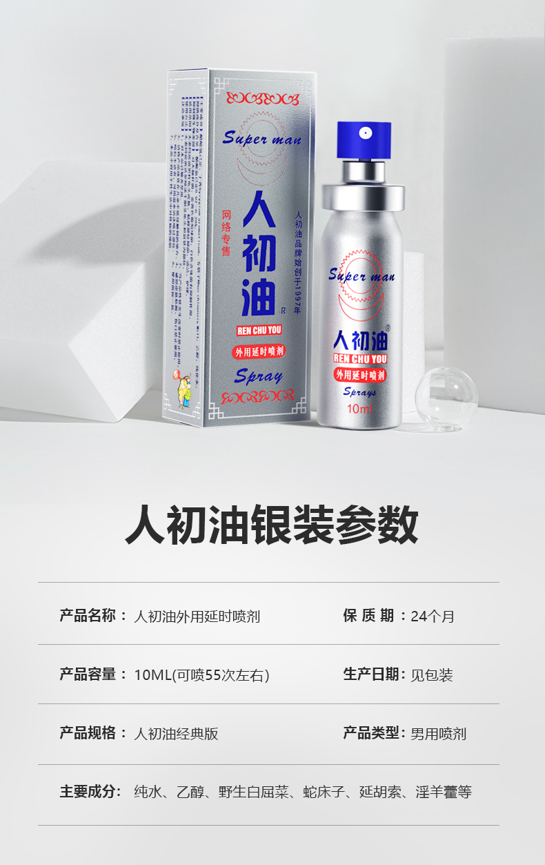 【情趣用品】人初油 外用延时喷剂银色装10ml男用喷剂