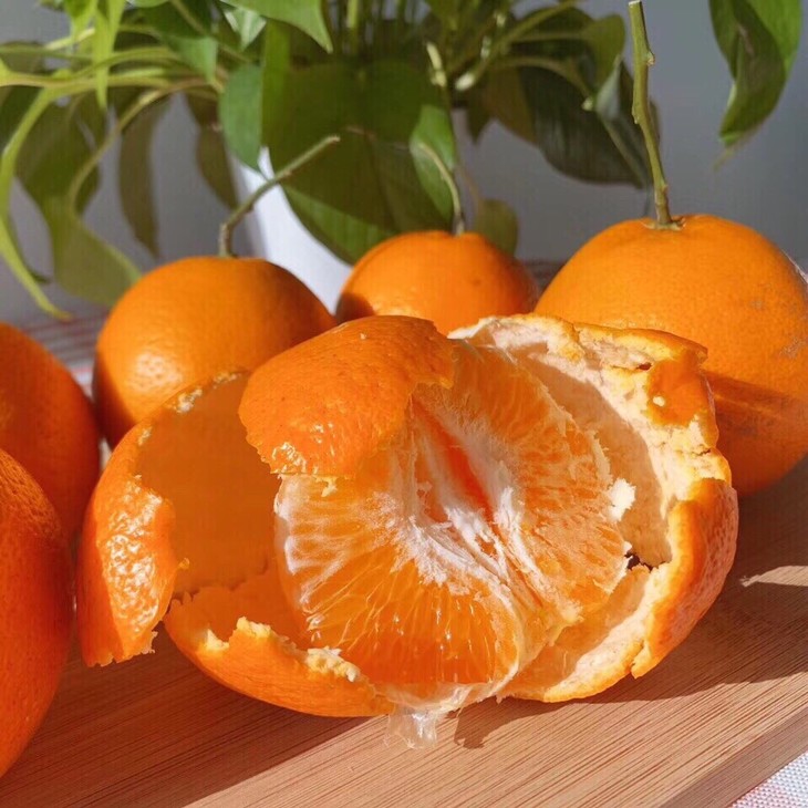 “春见”可是从日本引进的优质椪柑杂交杂交品种,引进我国后只能生长于四川蒲江地区,属长秋山的品质最好,因为那里海拔高、日照充足、而且昼夜温差大,极有利于柑橘糖分的累积。