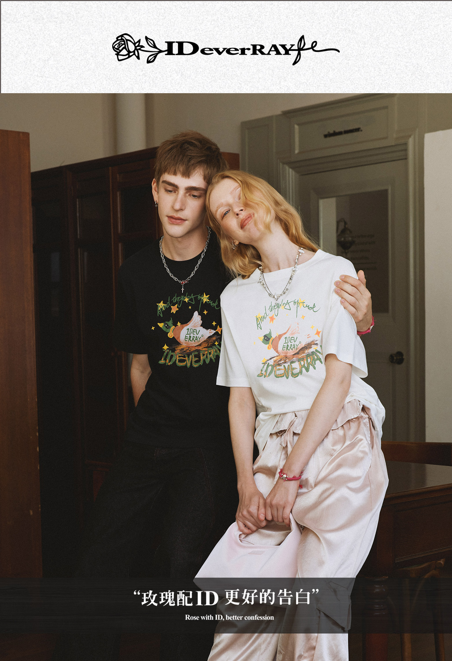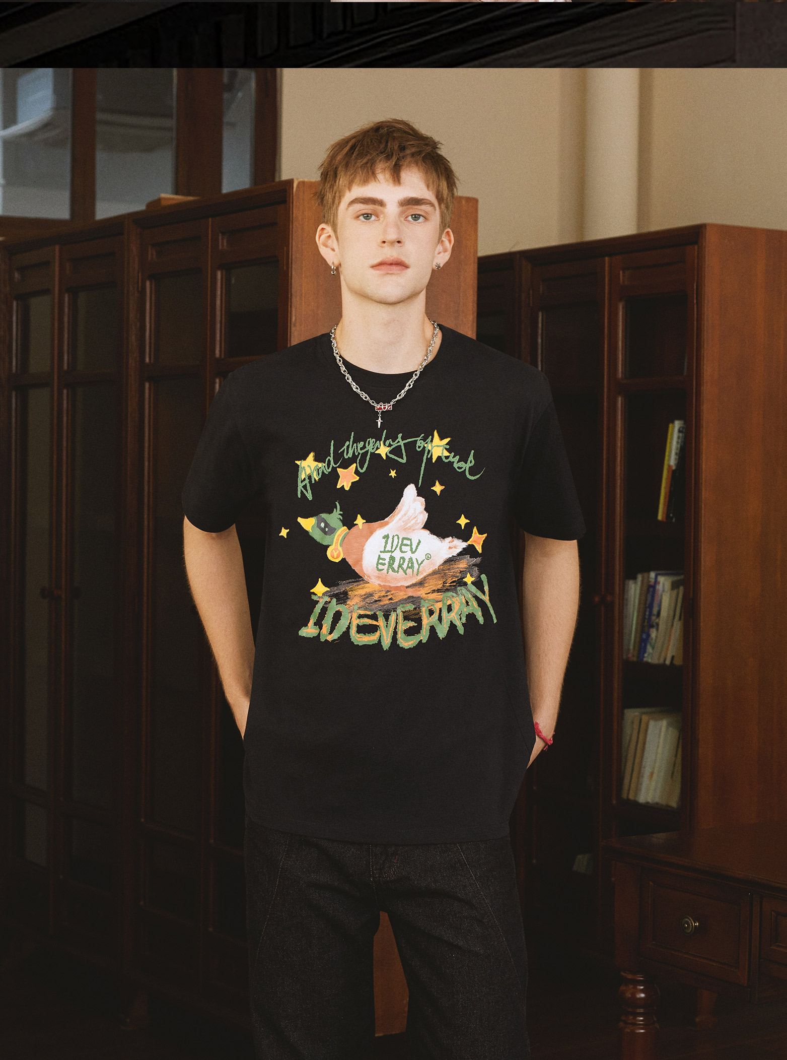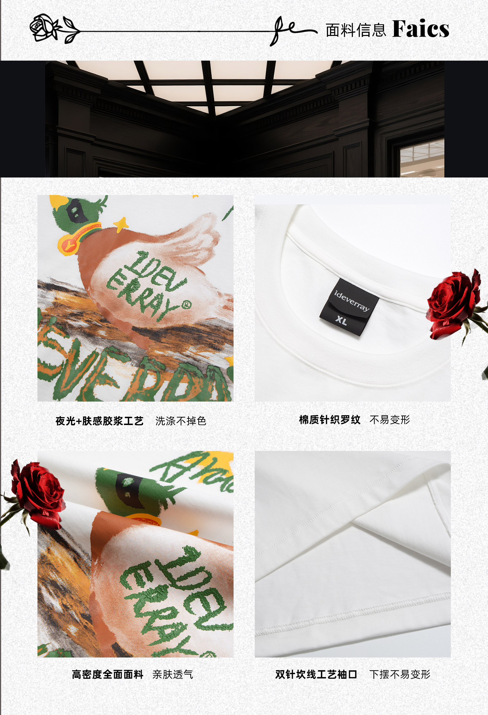 IDEVERRAY国潮夜光手绘小鹅夏季国潮印花t恤男潮流美式ins短袖TEE21MSL-TM655