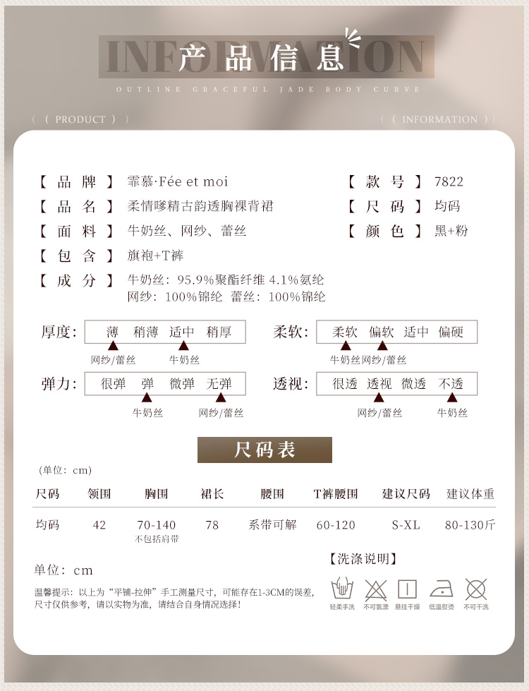 【情趣内衣】霏慕 柔情嗲精古韵透胸裸背裙7822