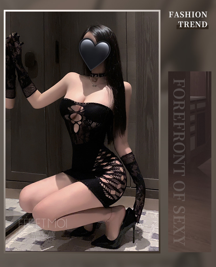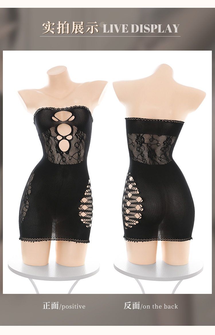 【情趣内衣】霏慕 镂空抹胸提花包臀连身网衣7544