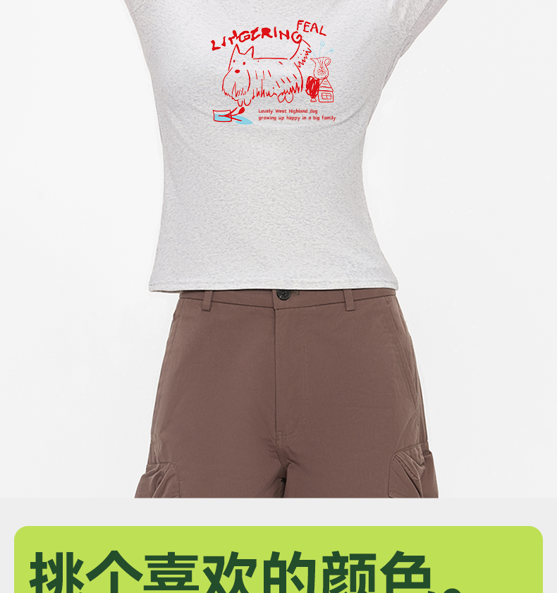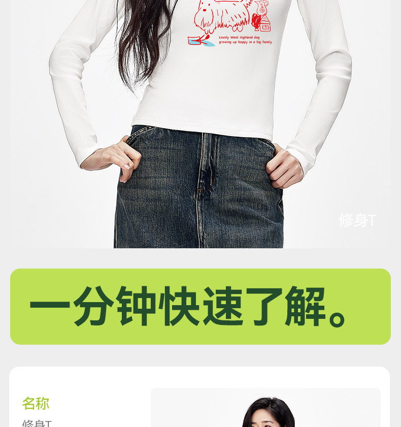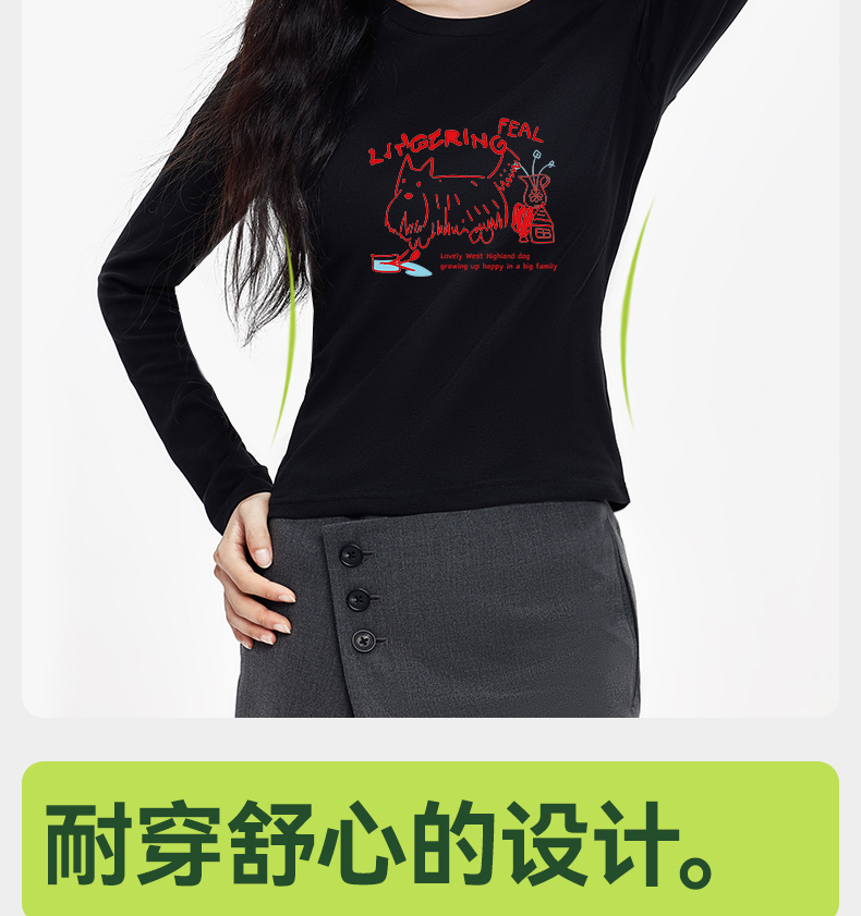 「棉的美学」可外穿打底衫女长袖印花新款圆领修身辣妹设计感上衣