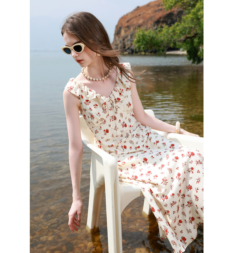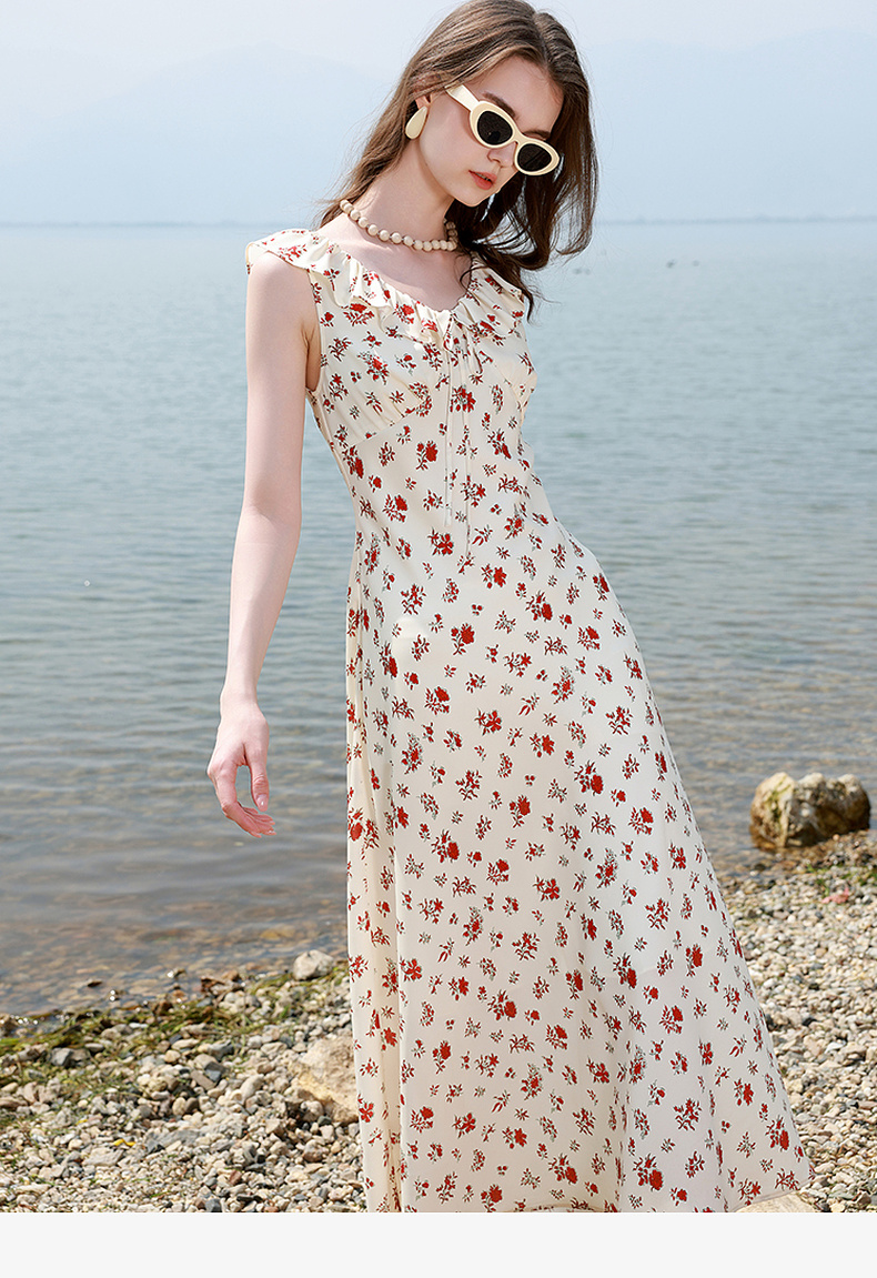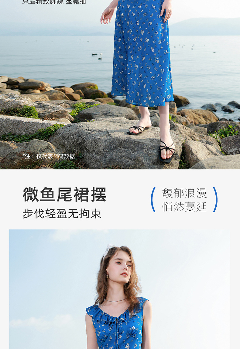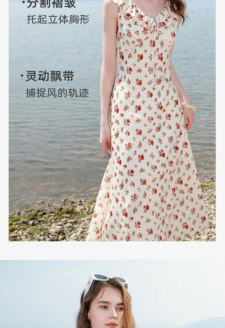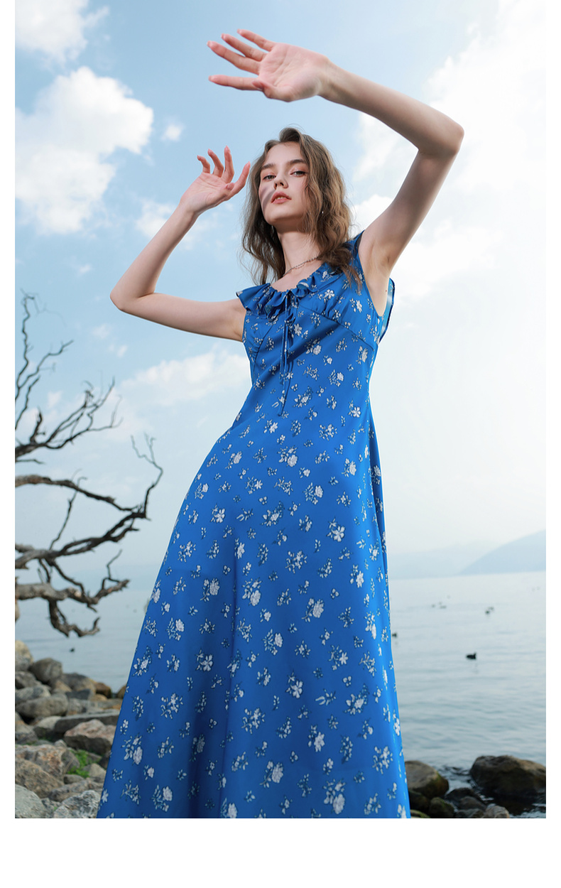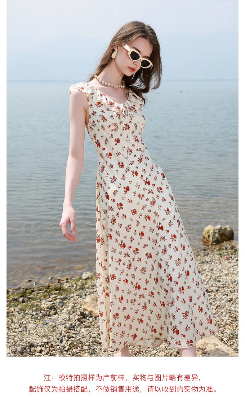 三彩独醒2025夏季新款碎花连衣裙荷叶边收腰A字裙长裙浪漫F