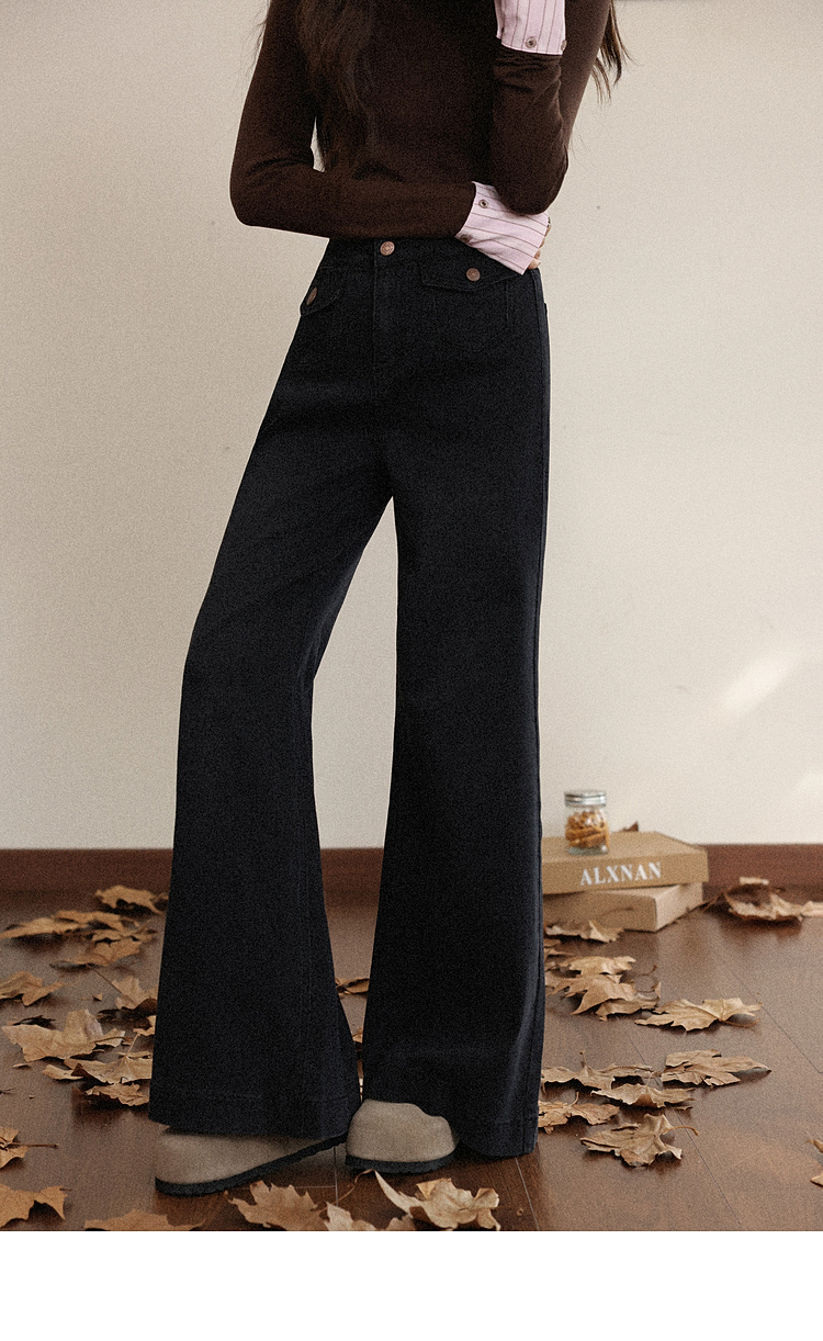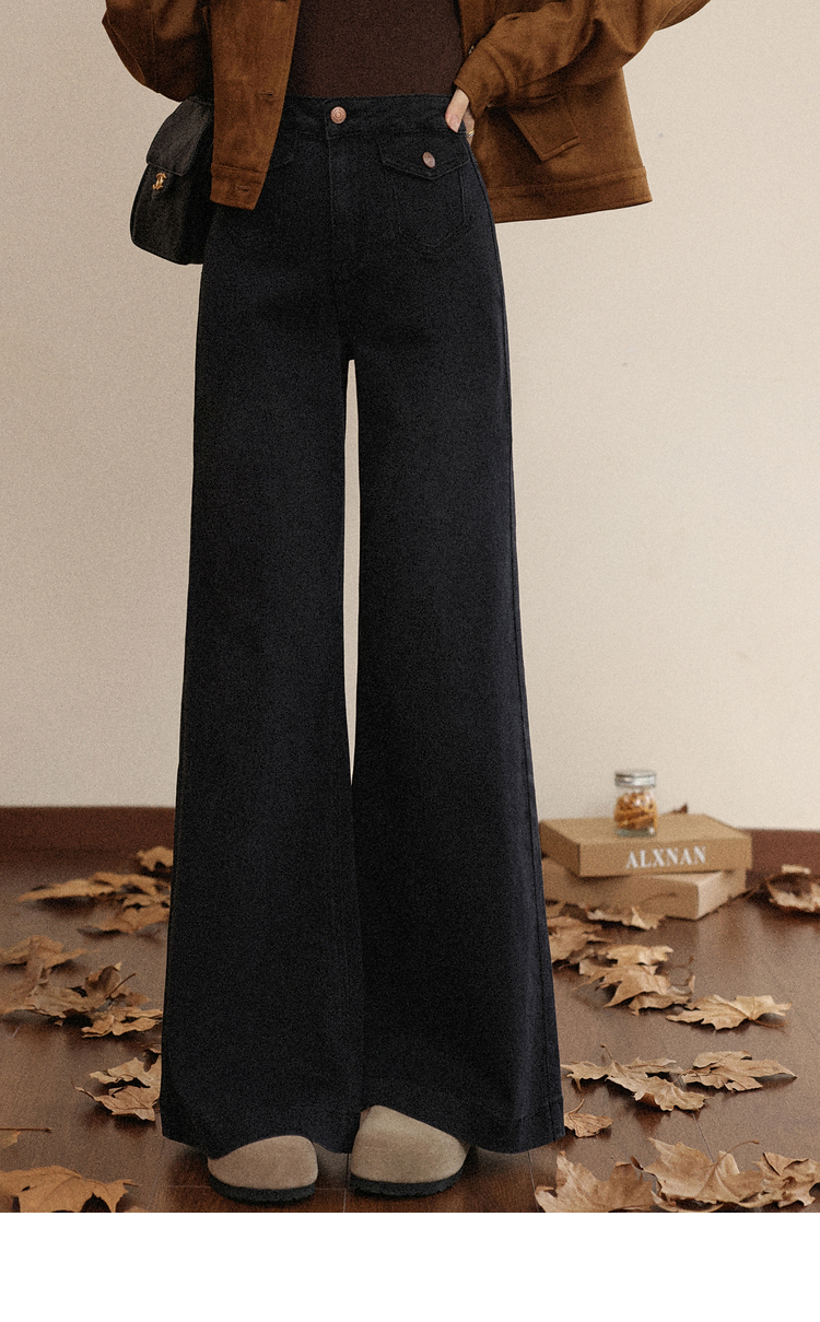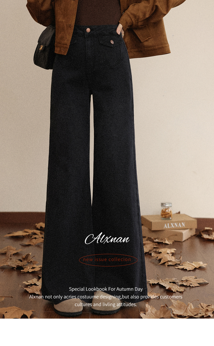 鹿向南「馥郁玫瑰」黑色休闲宽松阔腿牛仔裤女早秋新款显瘦长裤女