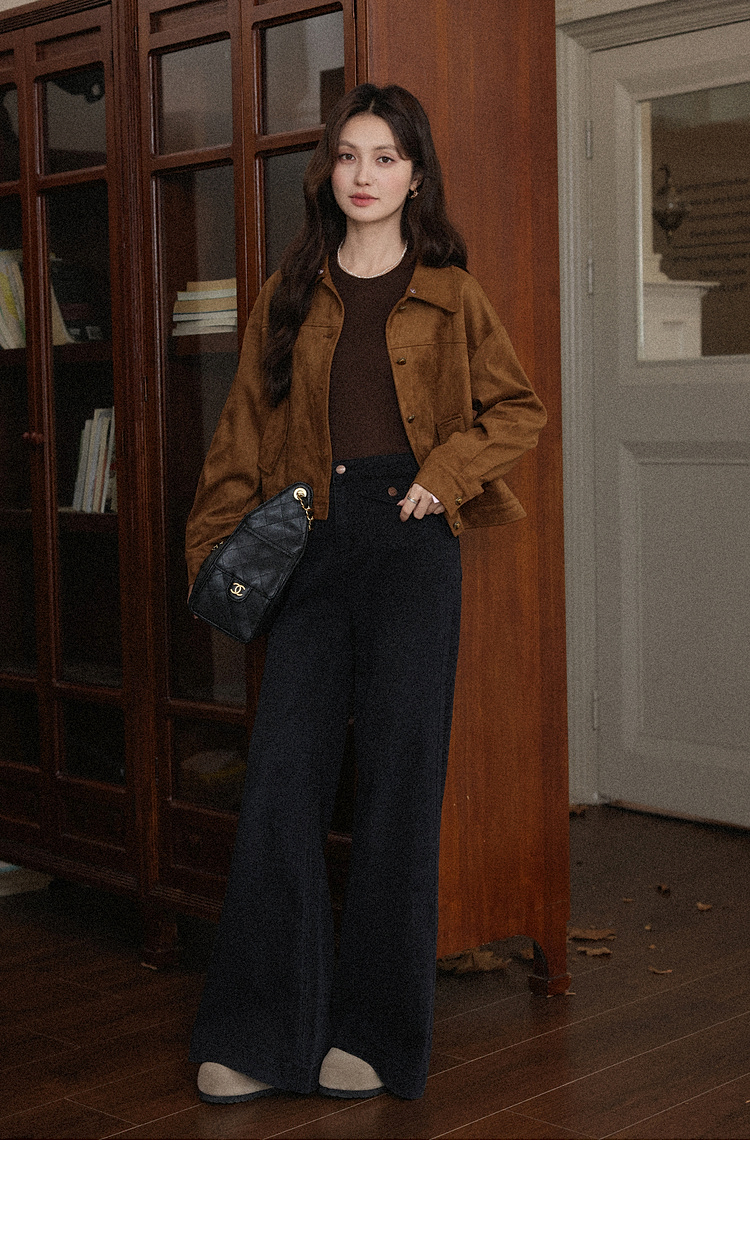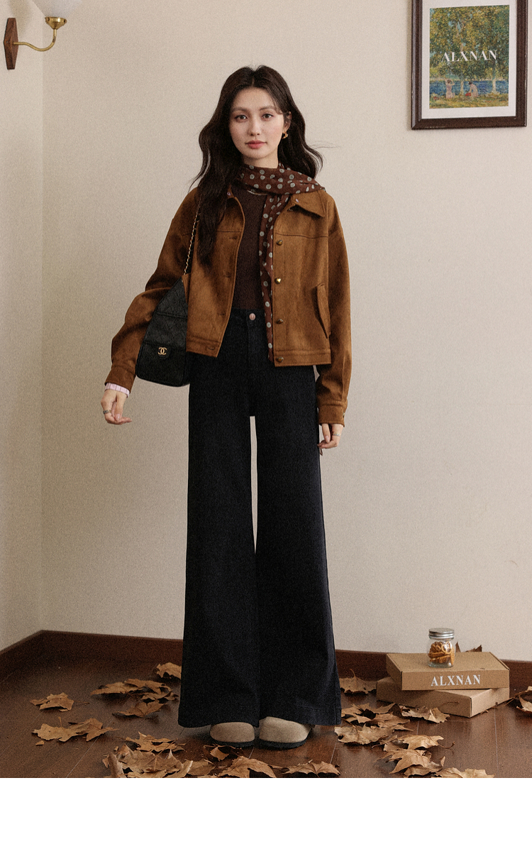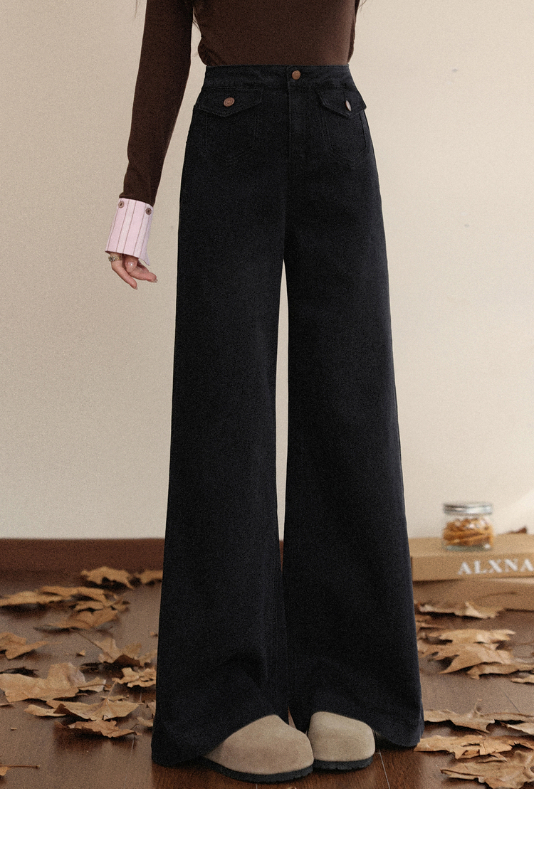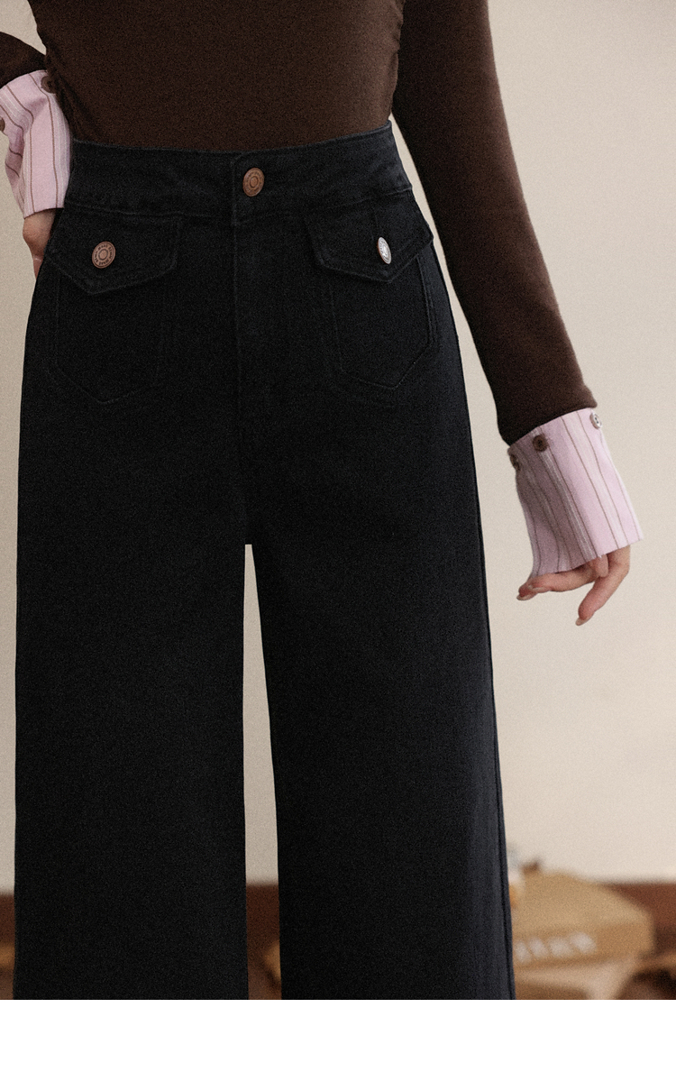 鹿向南「馥郁玫瑰」黑色休闲宽松阔腿牛仔裤女早秋新款显瘦长裤女