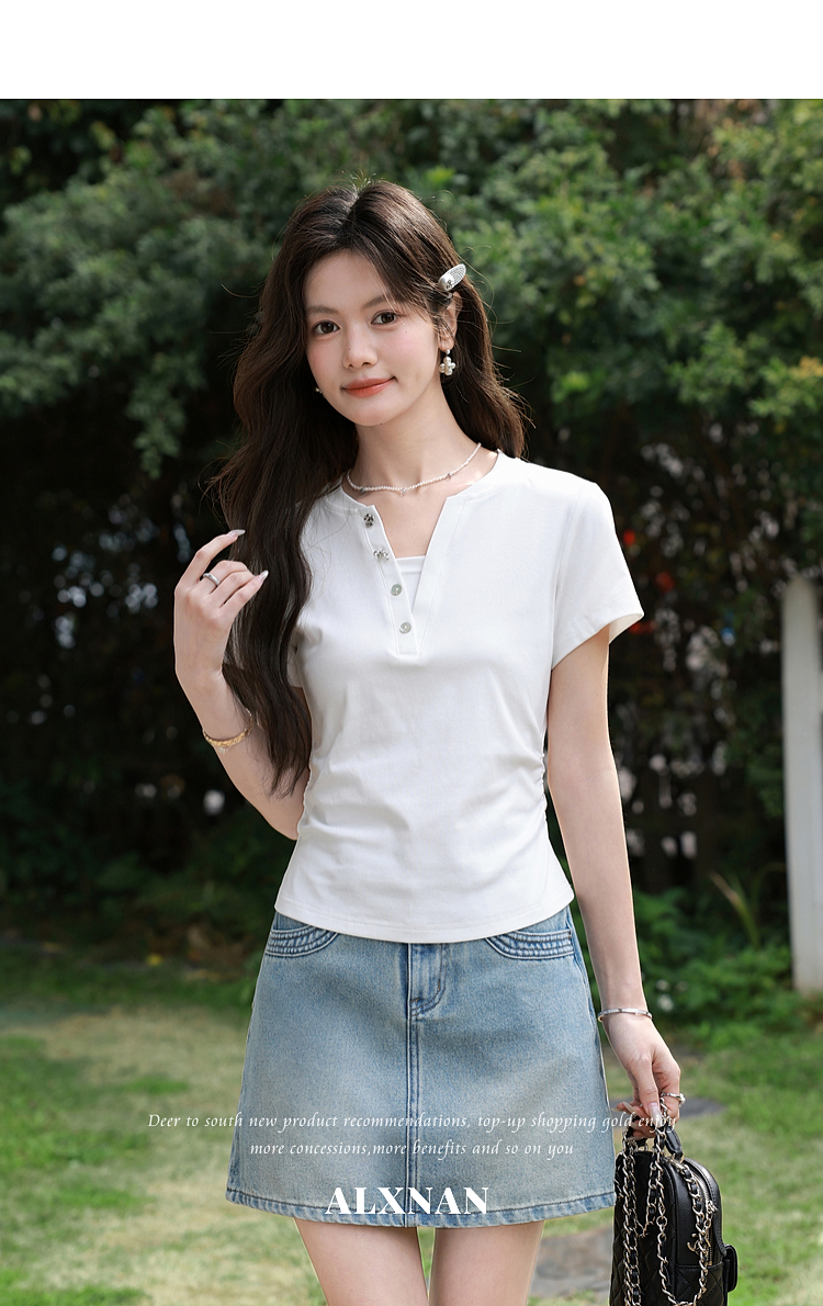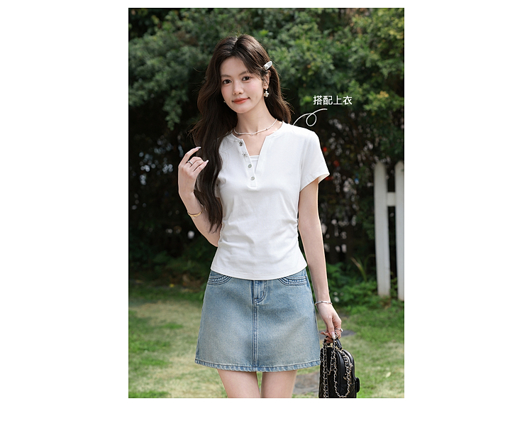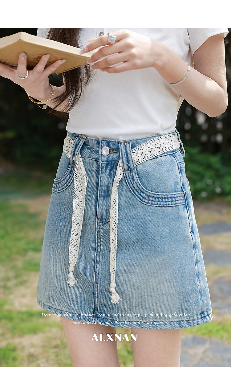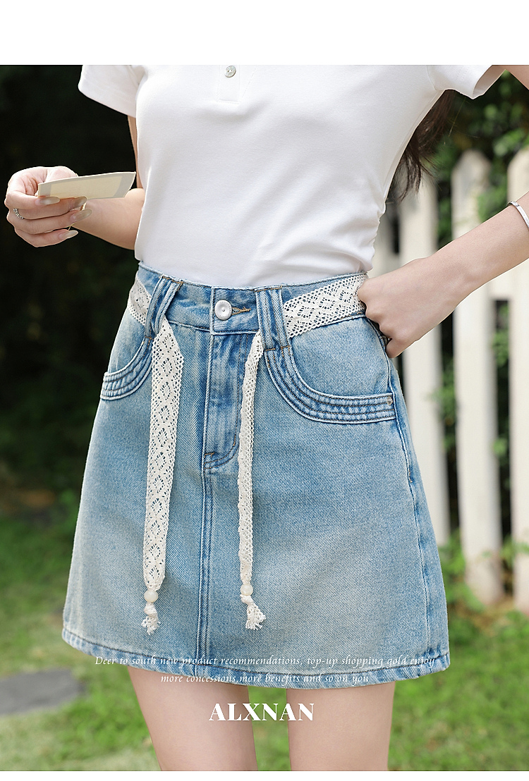 鹿向南「浅夏织梦」浅蓝色牛仔半身裙女夏季韩系小个子A字短裙子