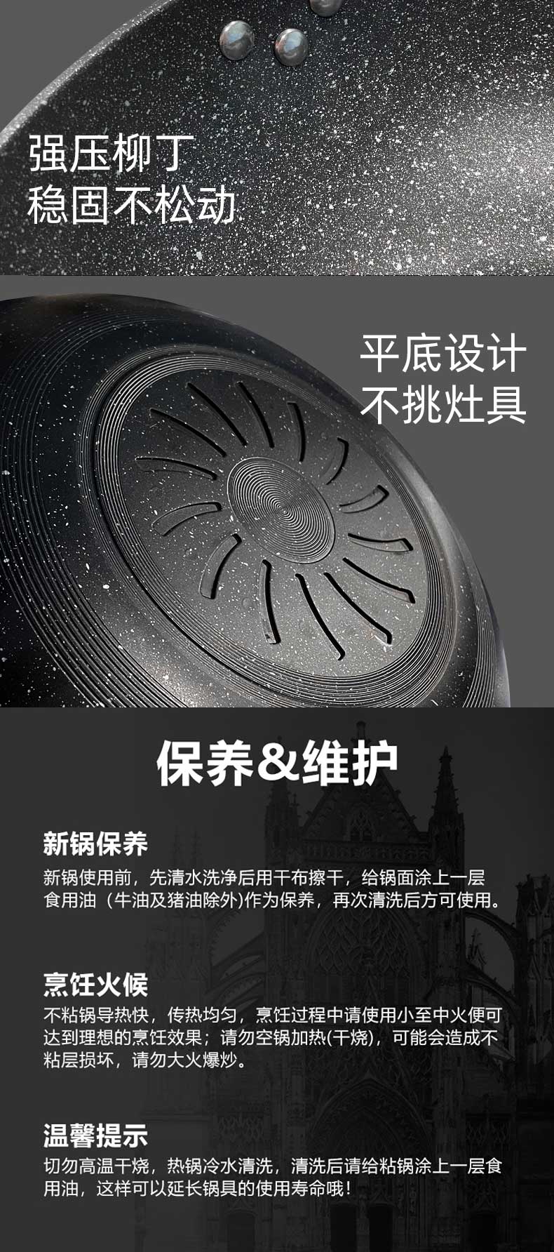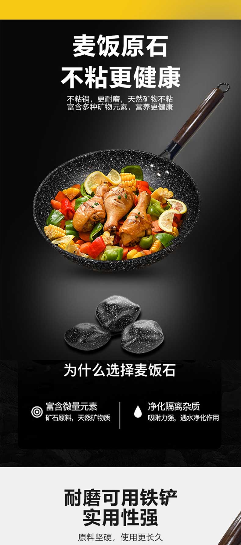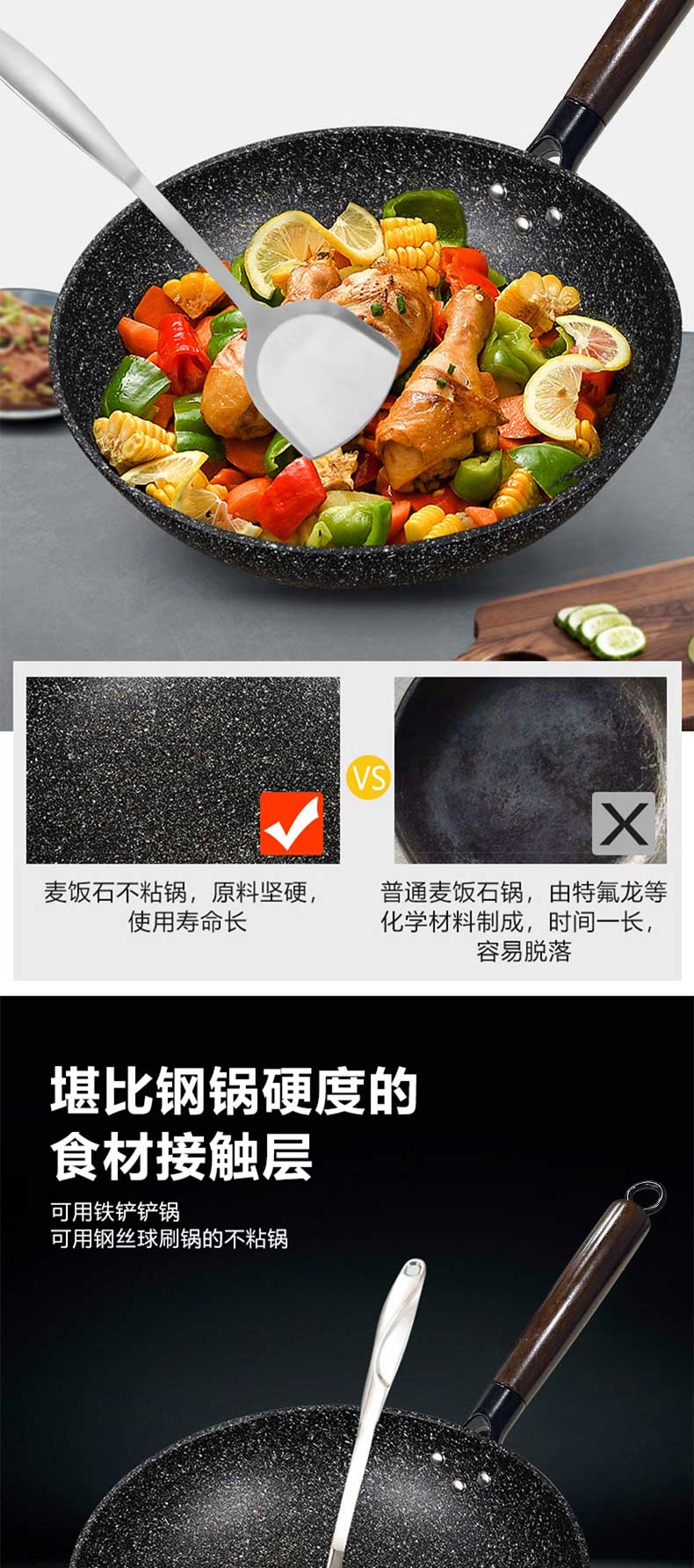 志高精铁麦饭石色炒锅不粘锅电磁炉燃气灶通用家用炒菜锅32cm 商品图3