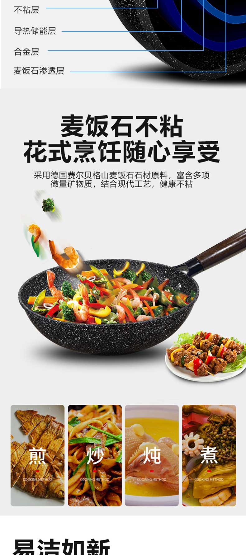 志高精铁麦饭石色炒锅不粘锅电磁炉燃气灶通用家用炒菜锅32cm 商品图2