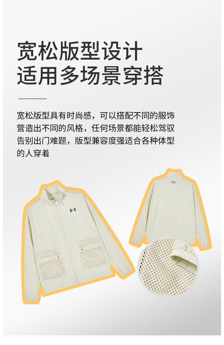 这款外套采用了宽松设计,非常适合穿着。同时,袖子的网布拼接设计,与网布口袋呼应,增加细节、层次感,打破单一沉闷感。可以满足不同顾客的需求。宽松版型具有时尚感,可以搭配不同的服饰,营造出不同的风格,任何场景都能轻松驾驭,告别出门难题,版型兼容度强适合各种体型的人穿着