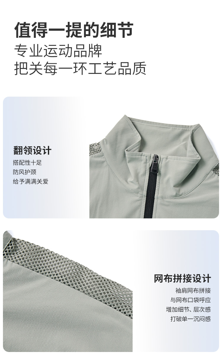 a:袖子的网布拼接设计,与网布口袋呼应,增加细节、层次感,打破单一沉闷感