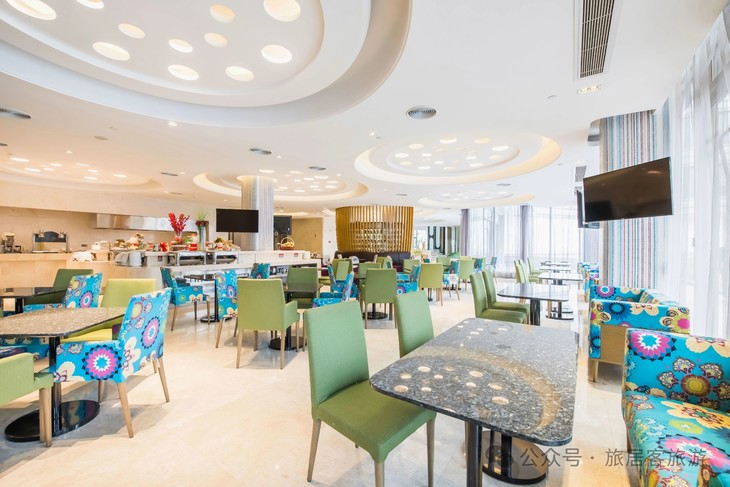 酒店的餐饮设施十分完备,拥有一个无柱式宴会大厅,空间开阔,毫无遮挡,能够同时容纳 400 人就餐,无论是大型宴会还是聚会活动都能轻松承办。还有可容纳 300 人的自助餐厅,布局合理,环境舒适。此外,特色中式包厢典雅精致,为宾客提供更为私密的用餐空间。