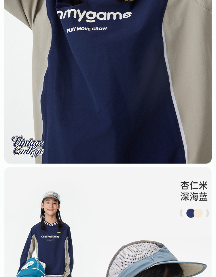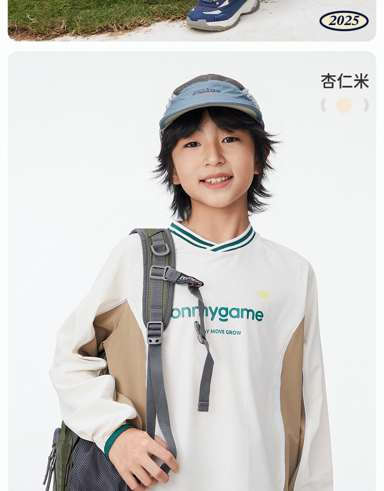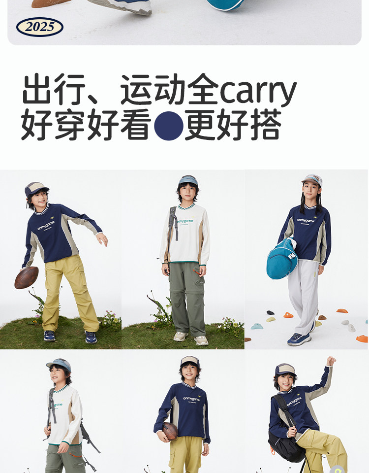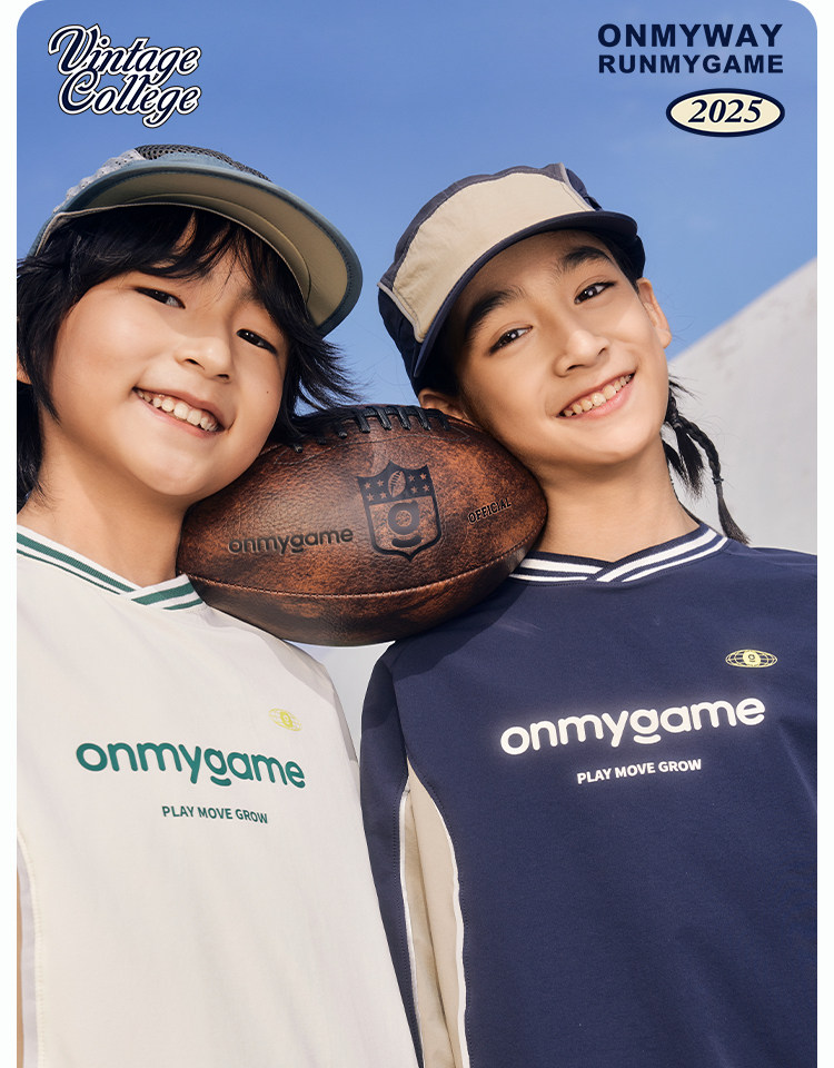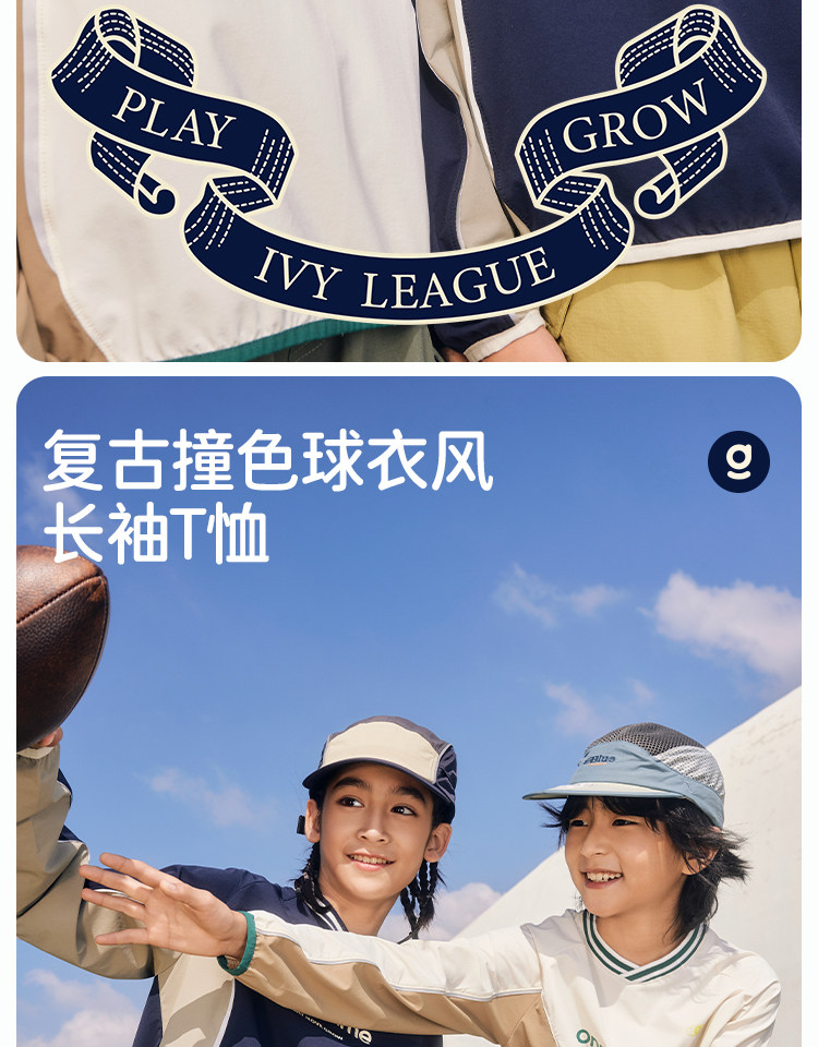 onmygame【复古撞色球衣风】男女童长袖T恤2025年春季上衣新款KEB0A210547