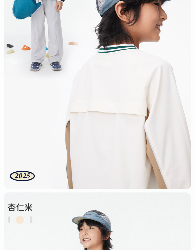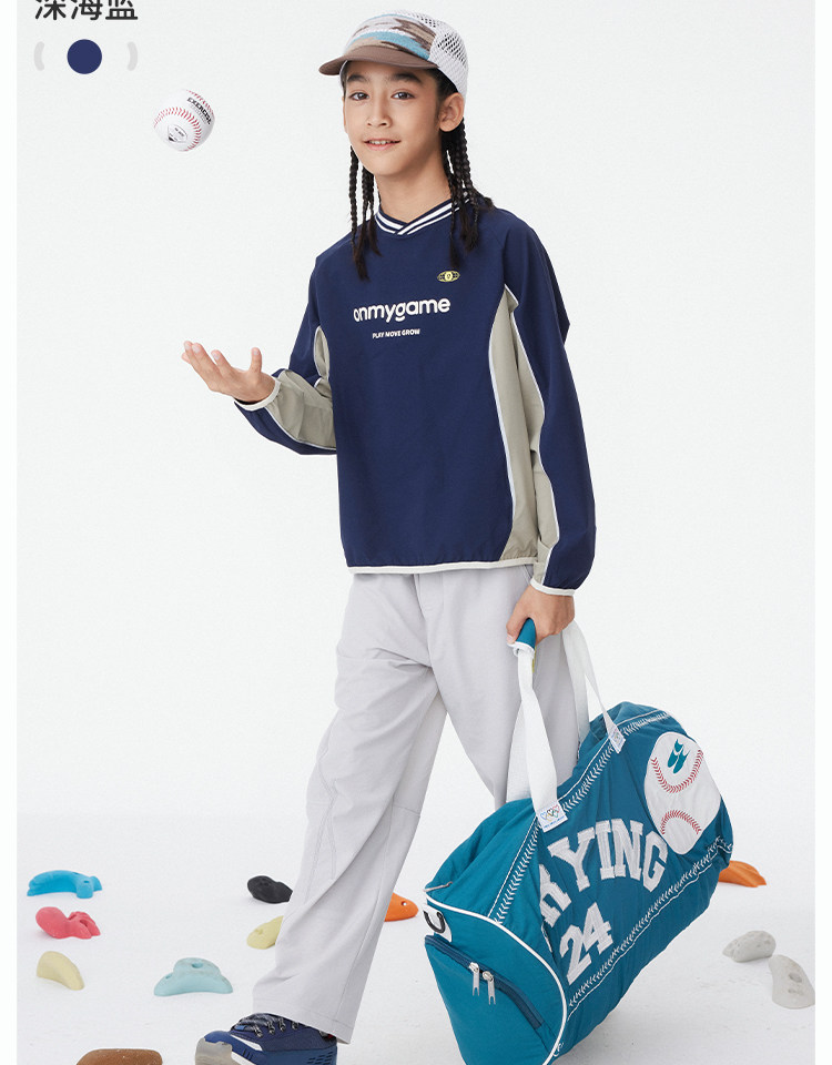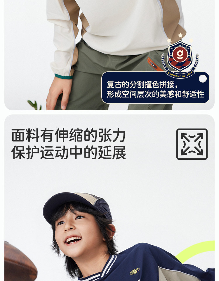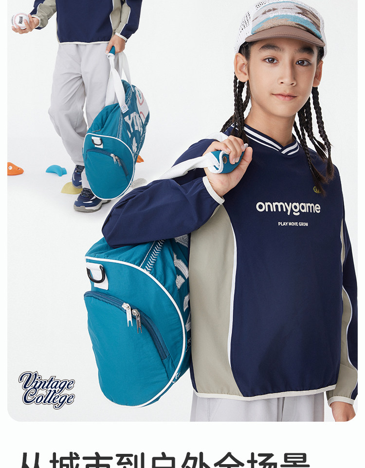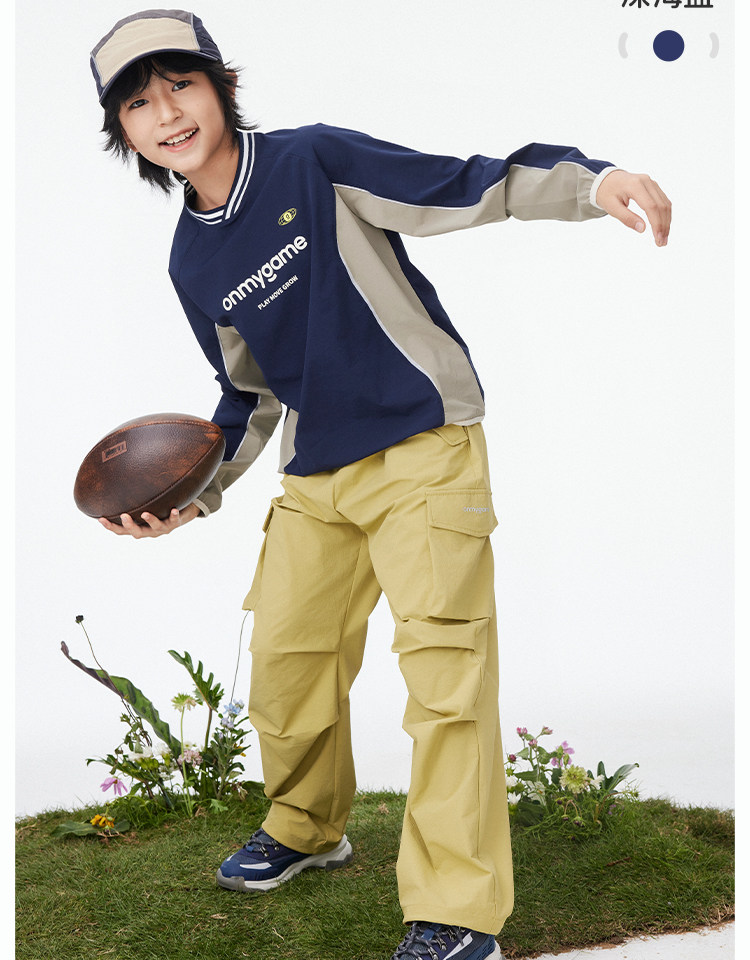 onmygame【复古撞色球衣风】男女童长袖T恤2025年春季上衣新款KEB0A210547