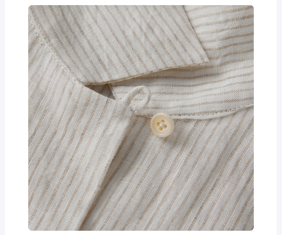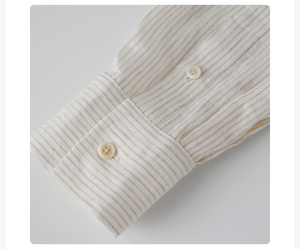 ROMI STUDIO“随性自然”100%亚麻肌理感细条纹翻领衬衣 RWCSSG1579