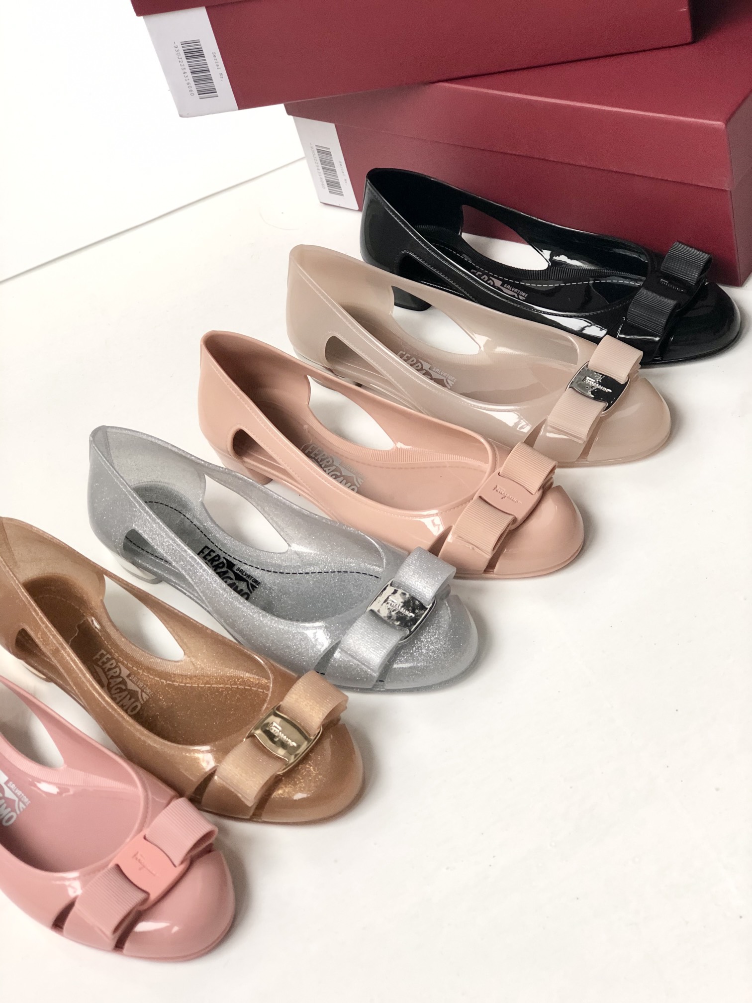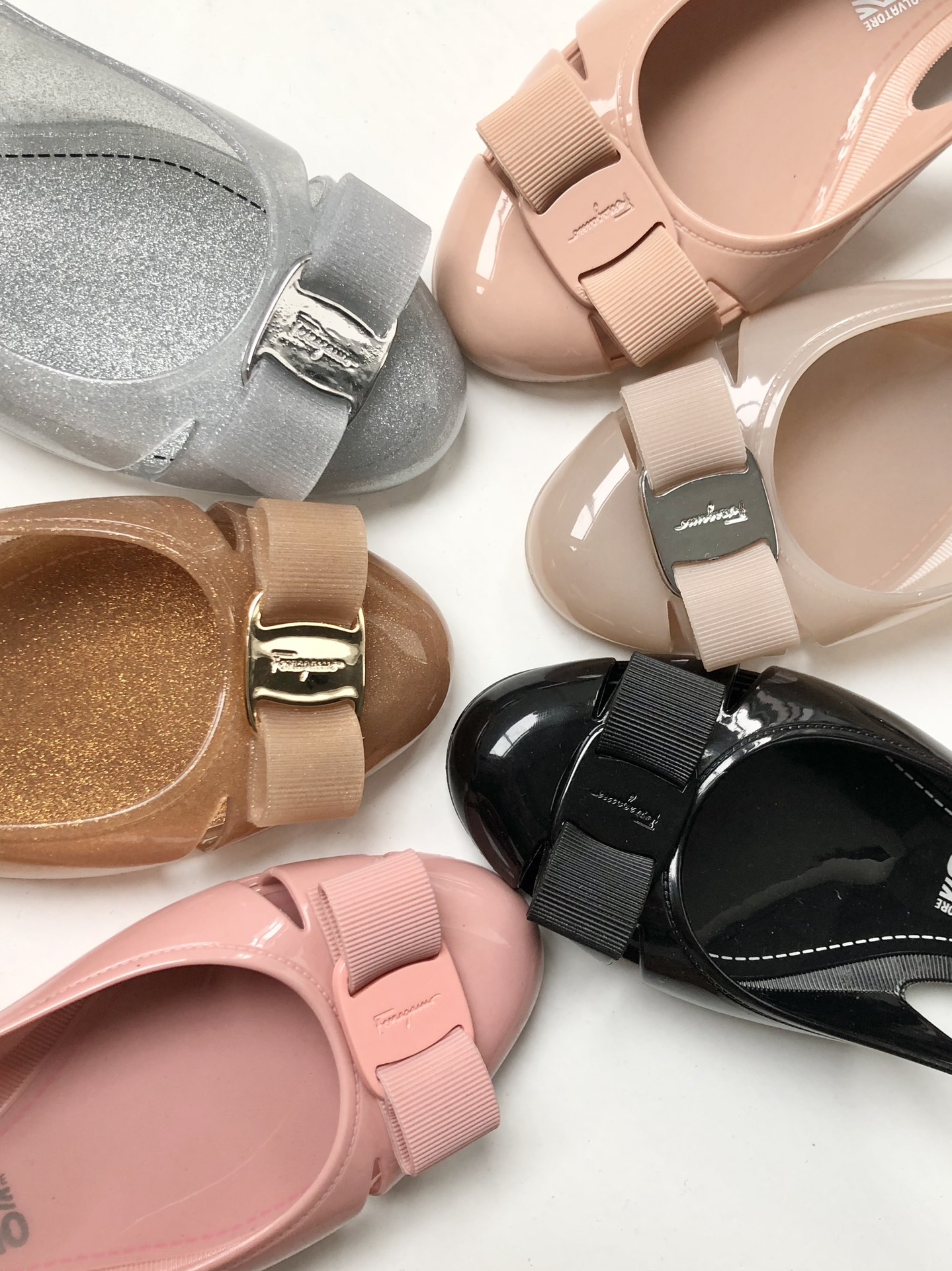 相信大家认识菲拉格慕的前提都是先认识那标志性的蝴蝶结吧?不难否认 菲拉家的鞋款都必备标志性的蝴蝶结装饰 让大家对他的印象更加深刻 最近天气变化无常 出着太阳都会突然的下雨 那么一双舒适又不怕雨的果冻鞋就派上用场啦 依旧是菲拉的蝴蝶鞋作为点缀~每一双的果冻鞋颜色都非常的可爱 有点像咱们小时候的果冻鞋 但是又是那么的精致 大家下雨天能穿 到海边度假沙滩上玩耍也不怕 随便一次一冲就干净~ 码数:35-39码
