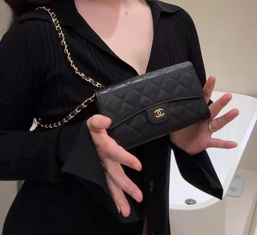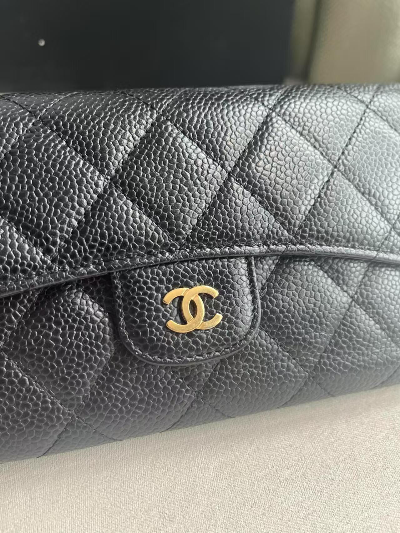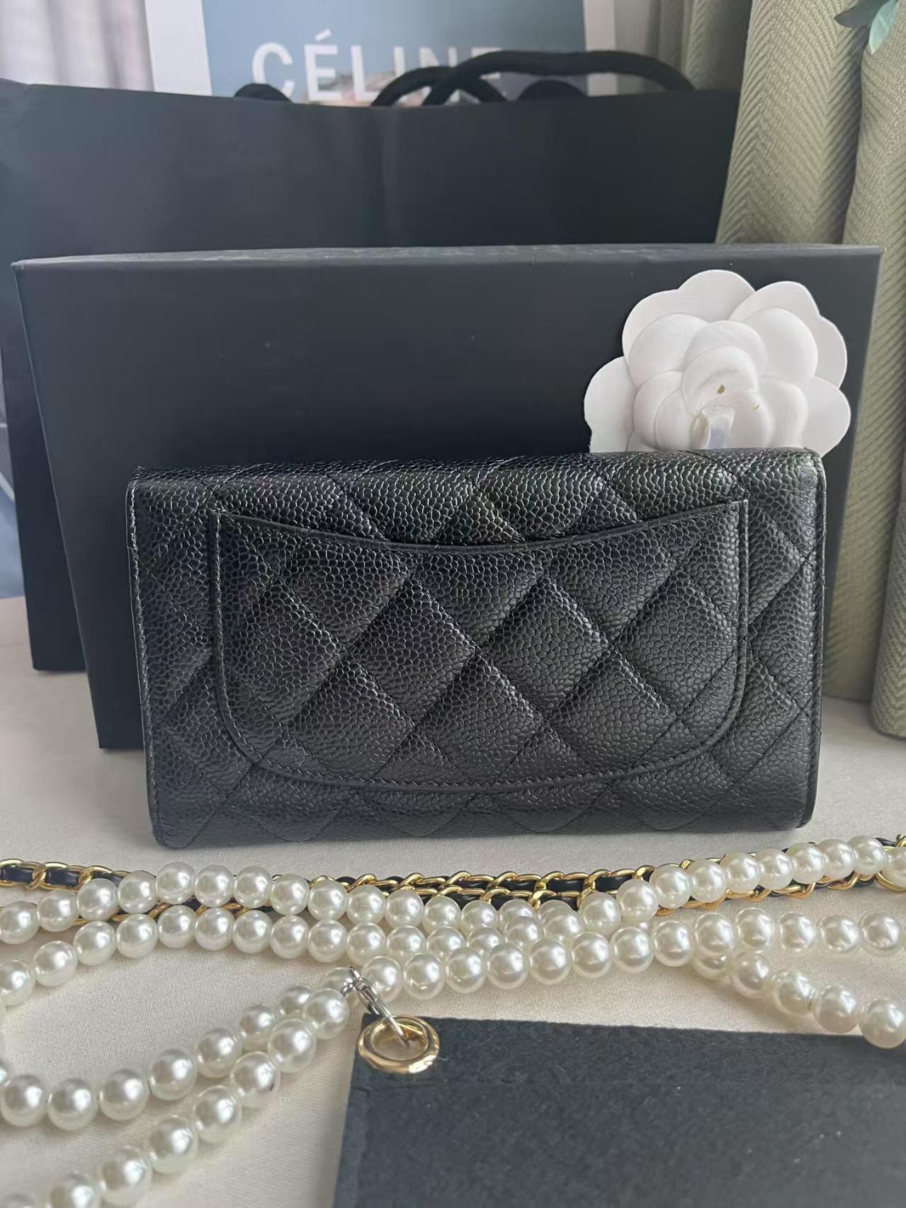 CHANEL香奈儿 23P 经典菱格长款 颗粒压花小牛皮配金属 卡包钱包 女款 黑色