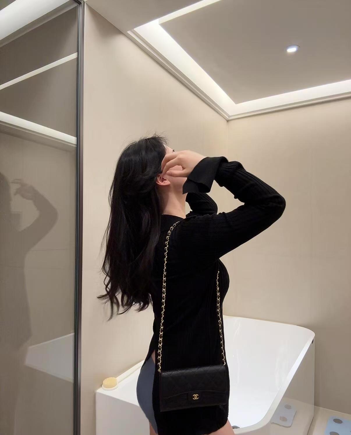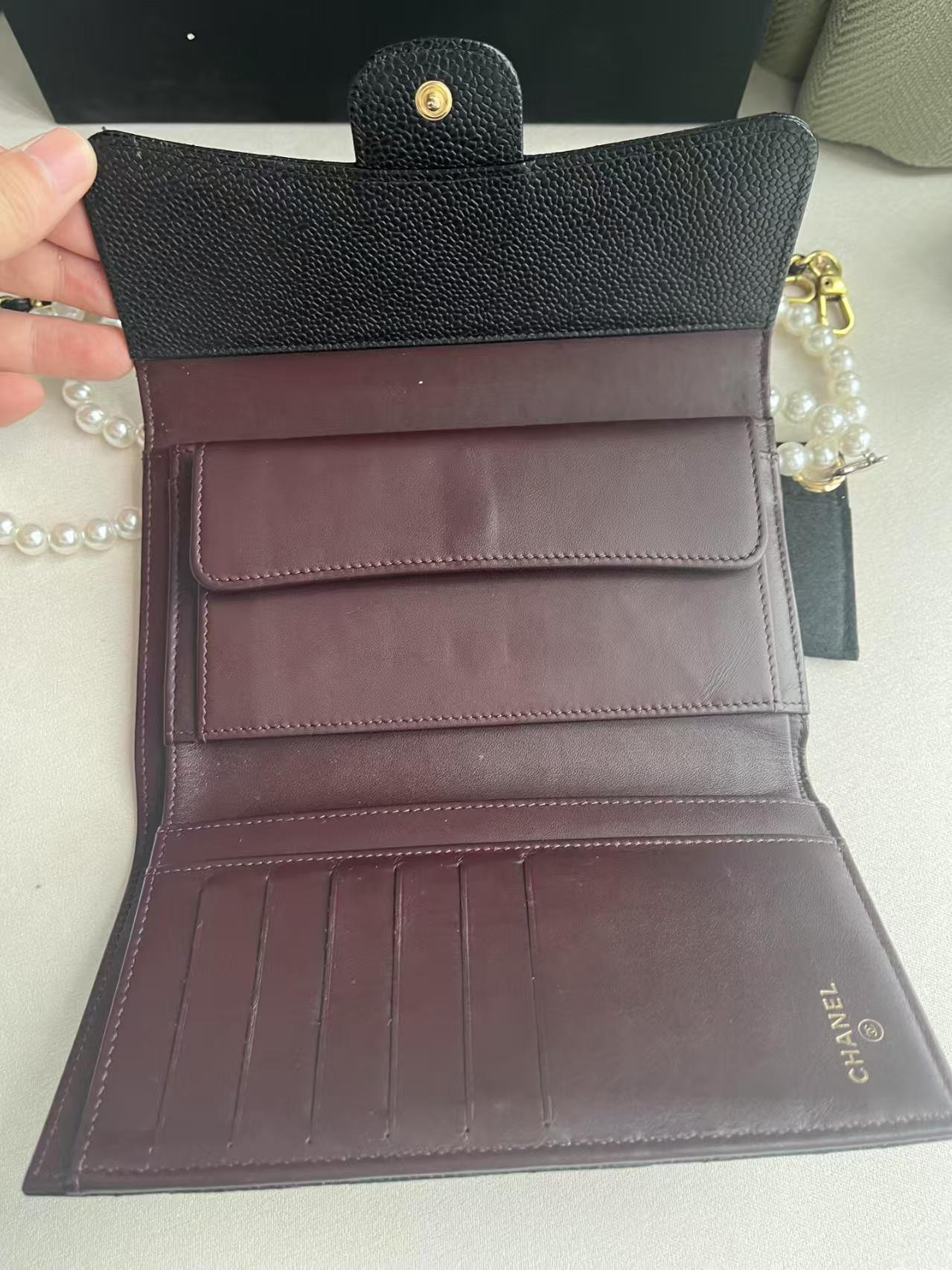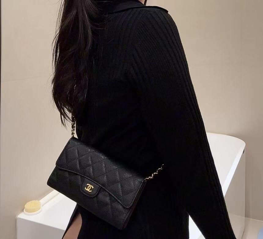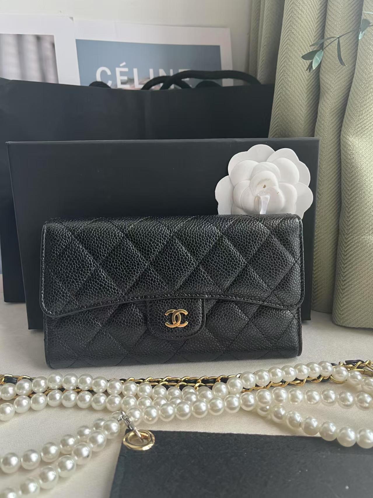 CHANEL香奈儿 23P 经典菱格长款 颗粒压花小牛皮配金属 卡包钱包 女款 黑色