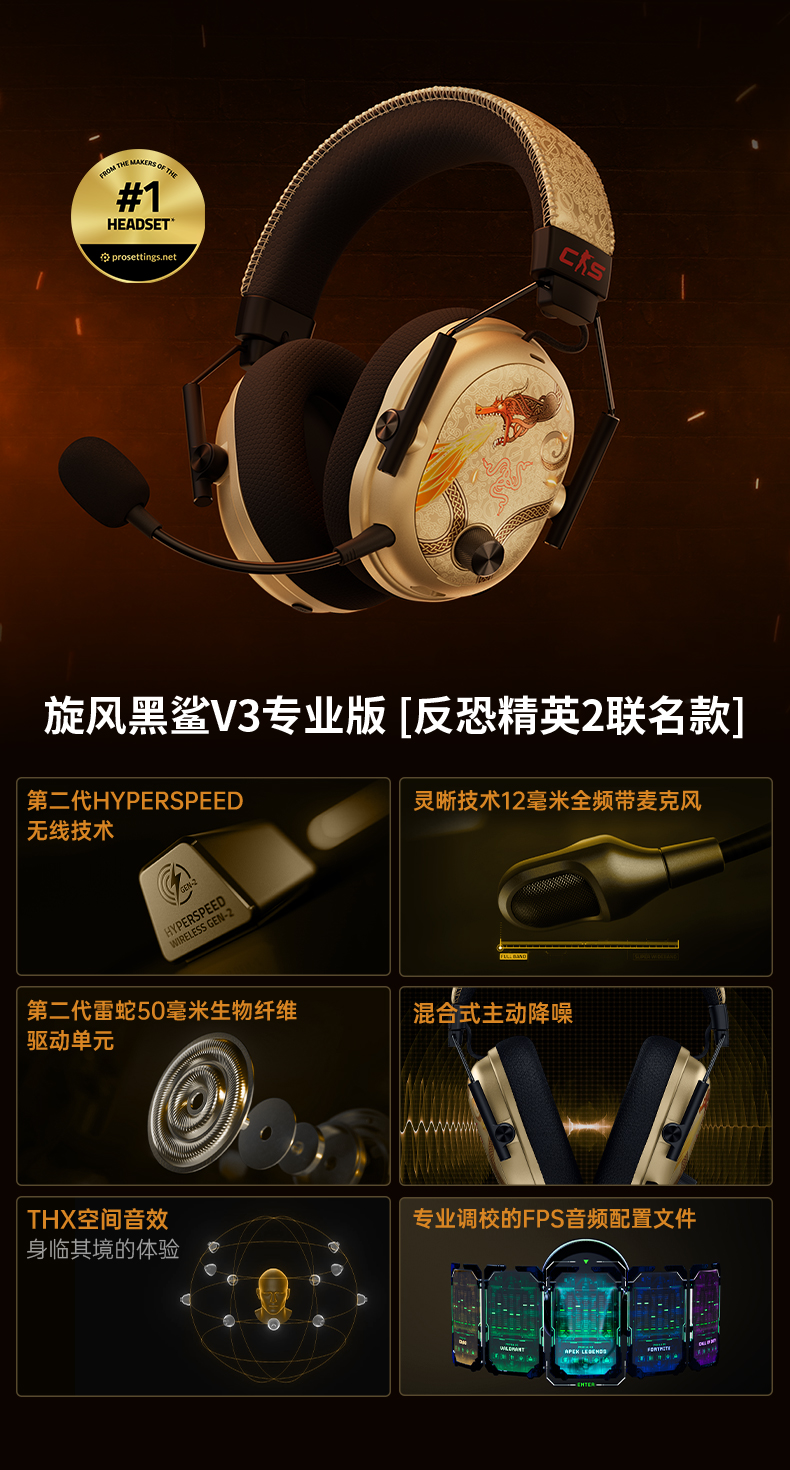 Razer雷蛇《反恐精英2》CS巨龙传说联名款 毒蝰V3专业版无线鼠标【雷蛇官方直营,延保一年】