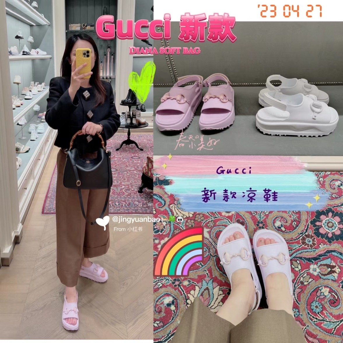Gucci Plastic# 古驰2023新款马衔扣松糕厚底凉鞋 夏日必备款 拉腿增高神器 尝试一个新 look 橡胶材质赋予当代配饰复古又不失俏皮的