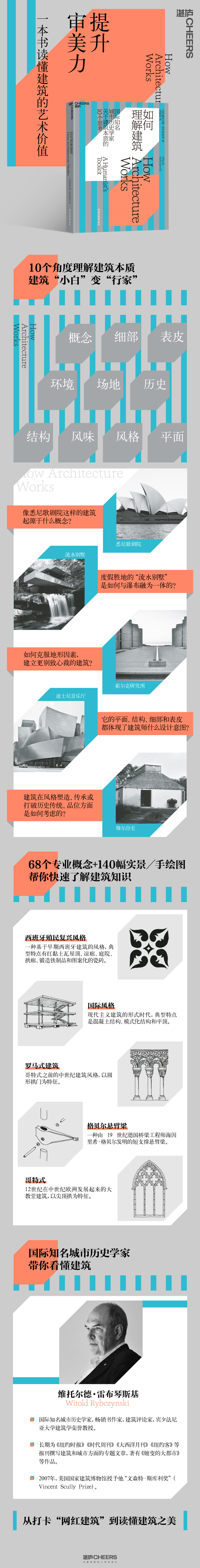 ● 大多数人对建筑的了解都停留在一知半解的名胜古迹,或者时常被忽略的生活背景,其实建筑对我们来说是容易接触到艺术形式。因此,提升对建筑的理解力,优化欣赏建筑的思维,是每一个追求生活品味的现代人需要掌握的技能。