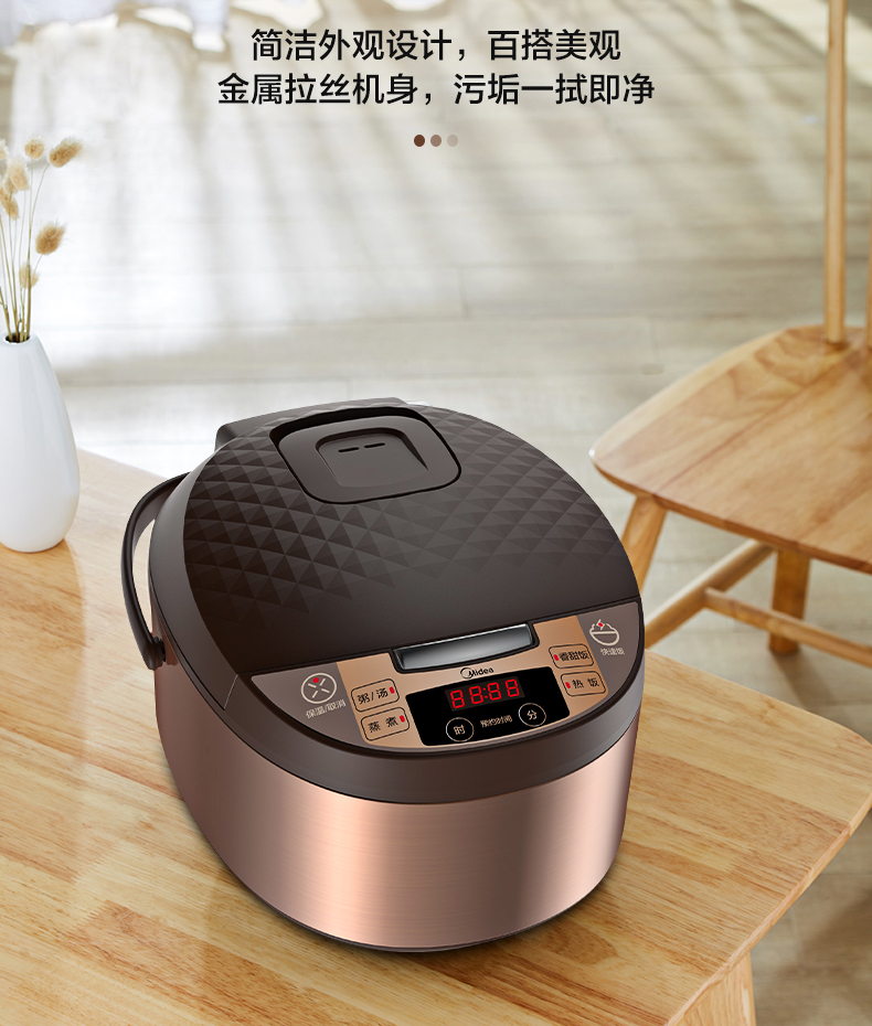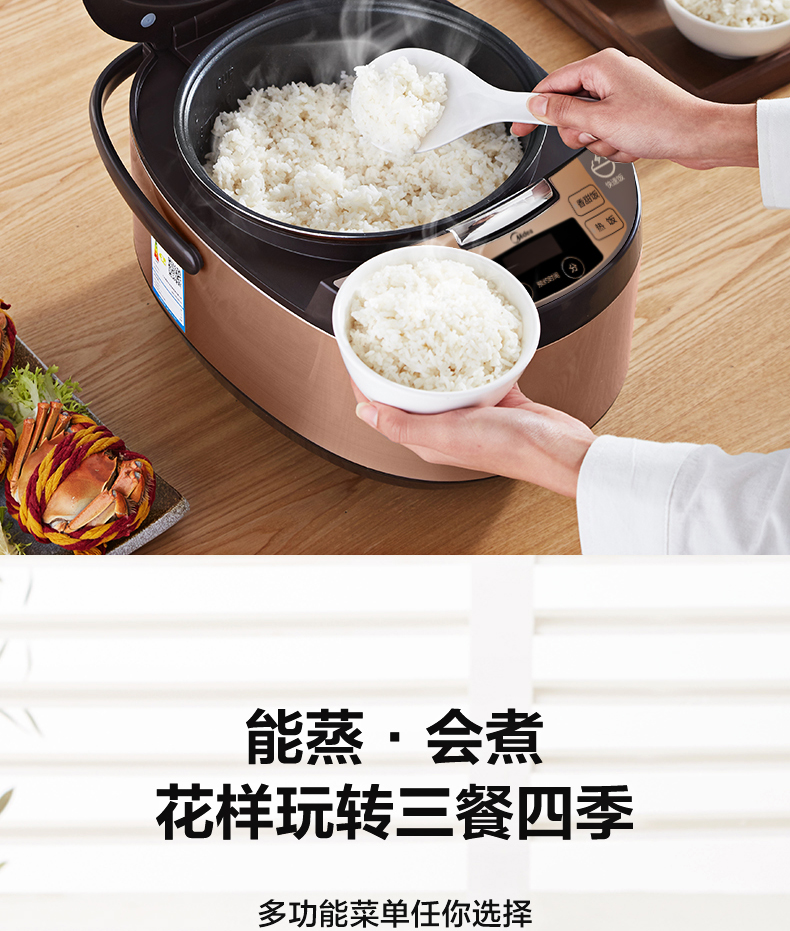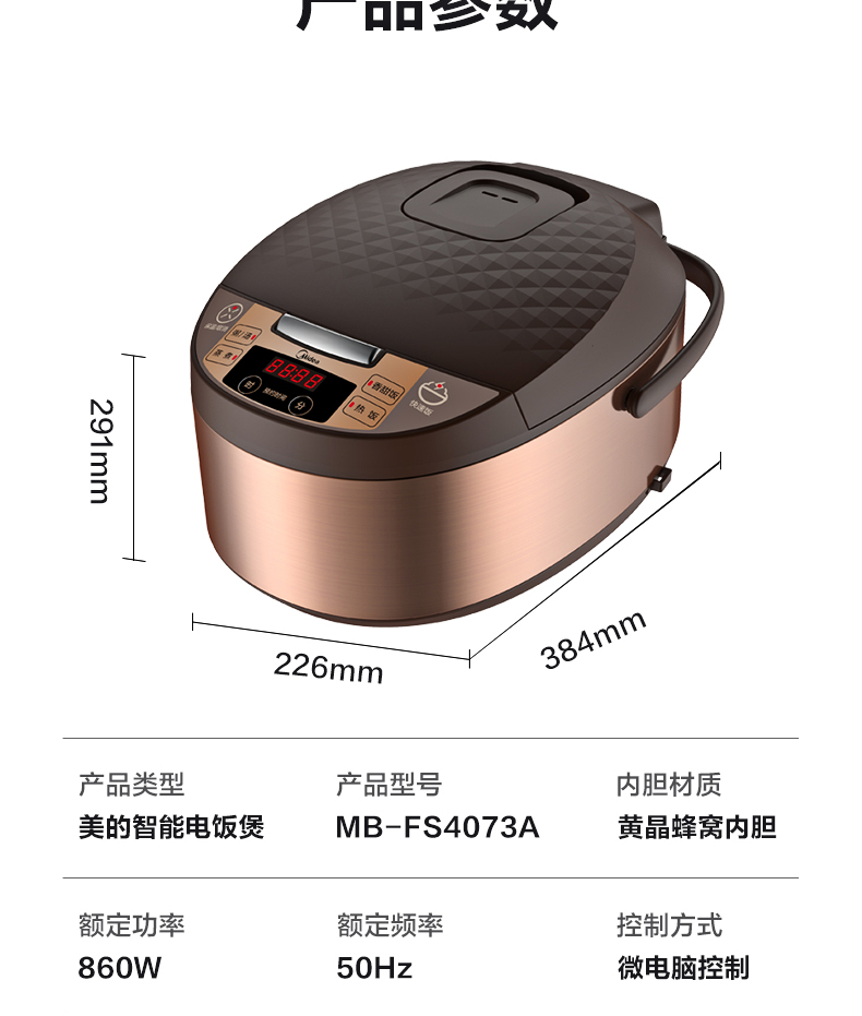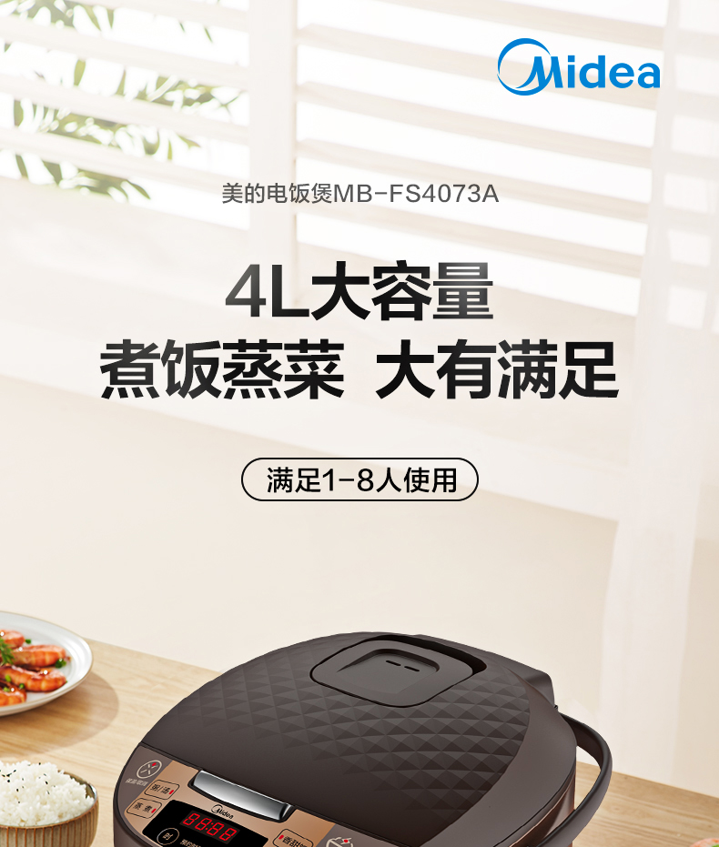 美的 Midea FS4073A电饭煲煲汤煮粥柴火饭智能预约饭锅不粘4L大容量排水槽底盘加热黄晶蜂窝内胆(线下同款)