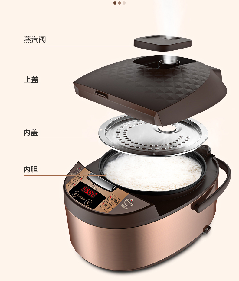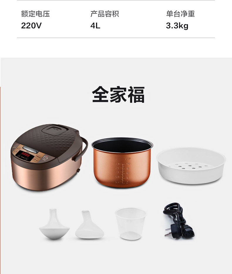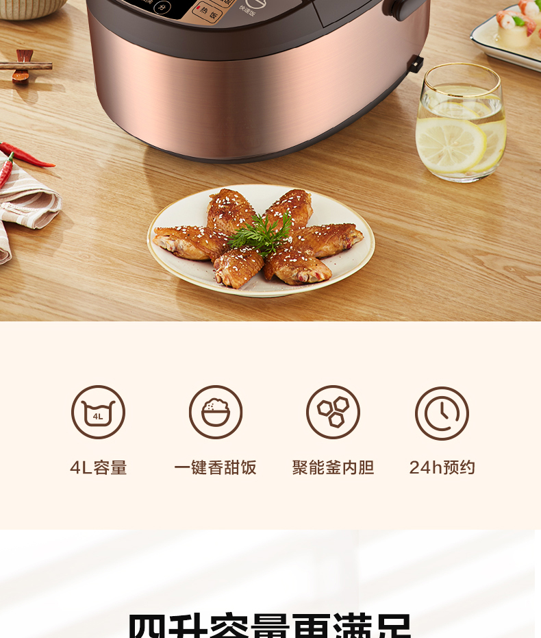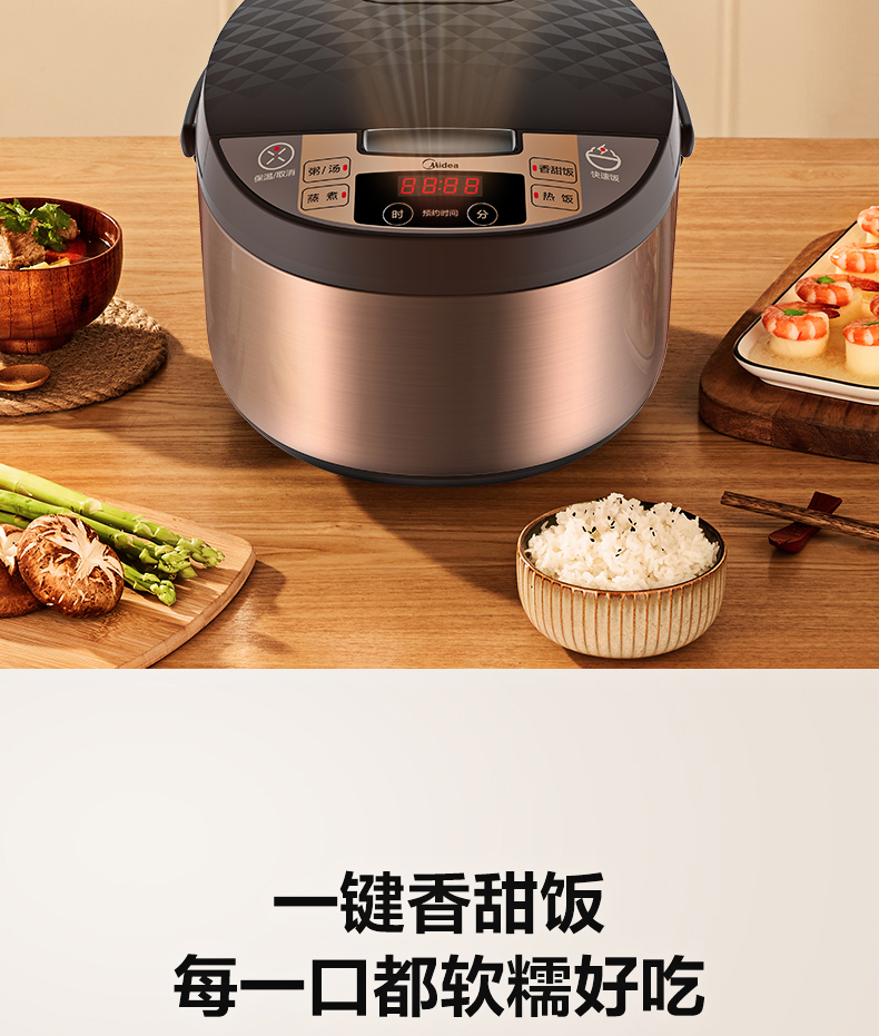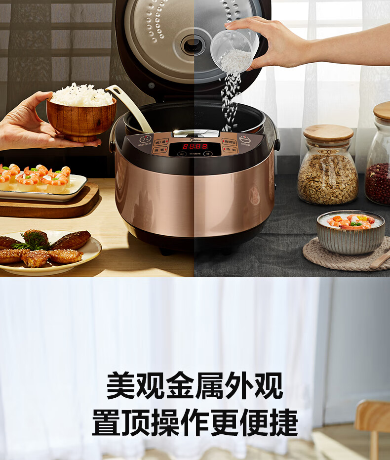 美的 Midea FS4073A电饭煲煲汤煮粥柴火饭智能预约饭锅不粘4L大容量排水槽底盘加热黄晶蜂窝内胆(线下同款)