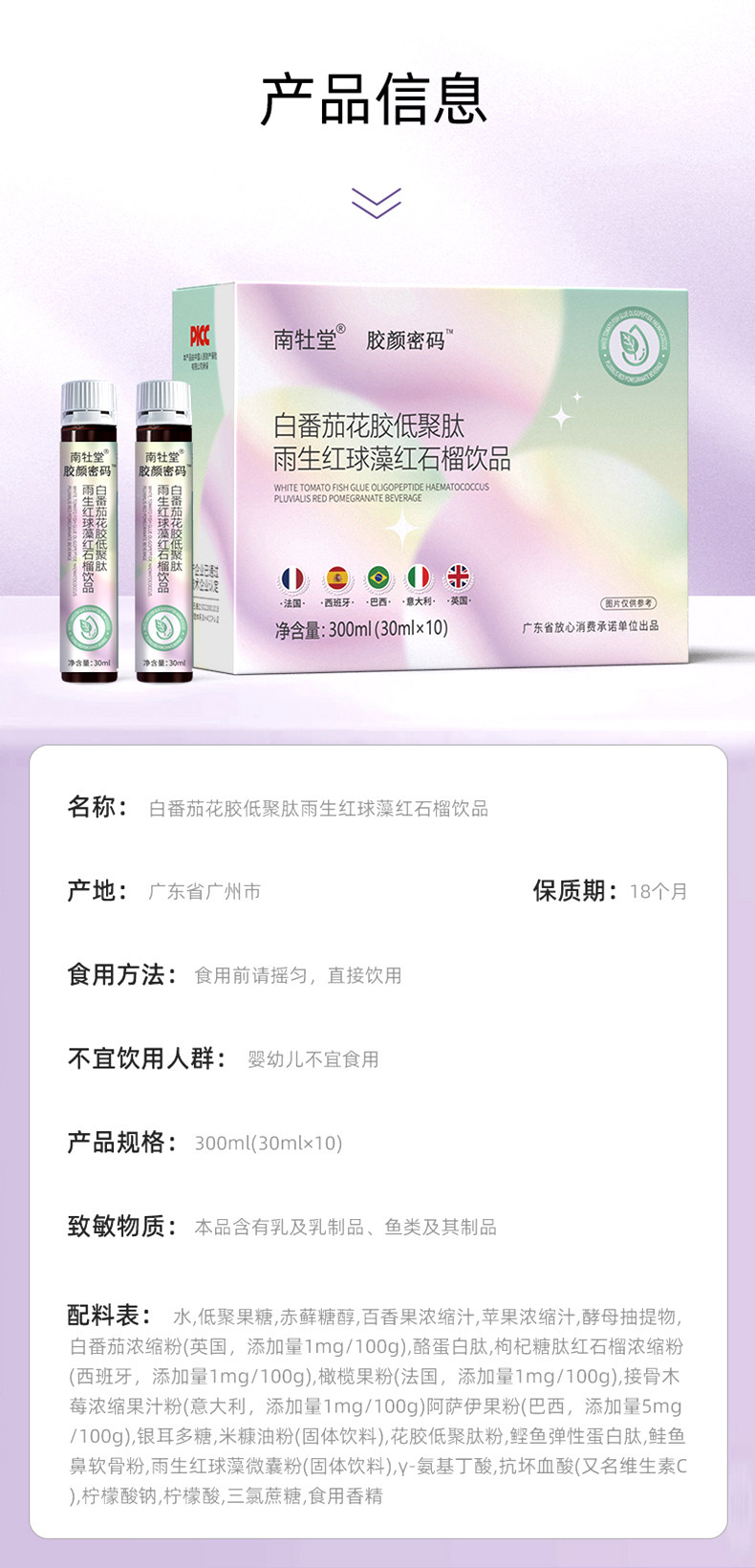 南牡堂官方红球藻饮南牡堂红石榴-南牡堂白番茄花胶低聚肽红石榴