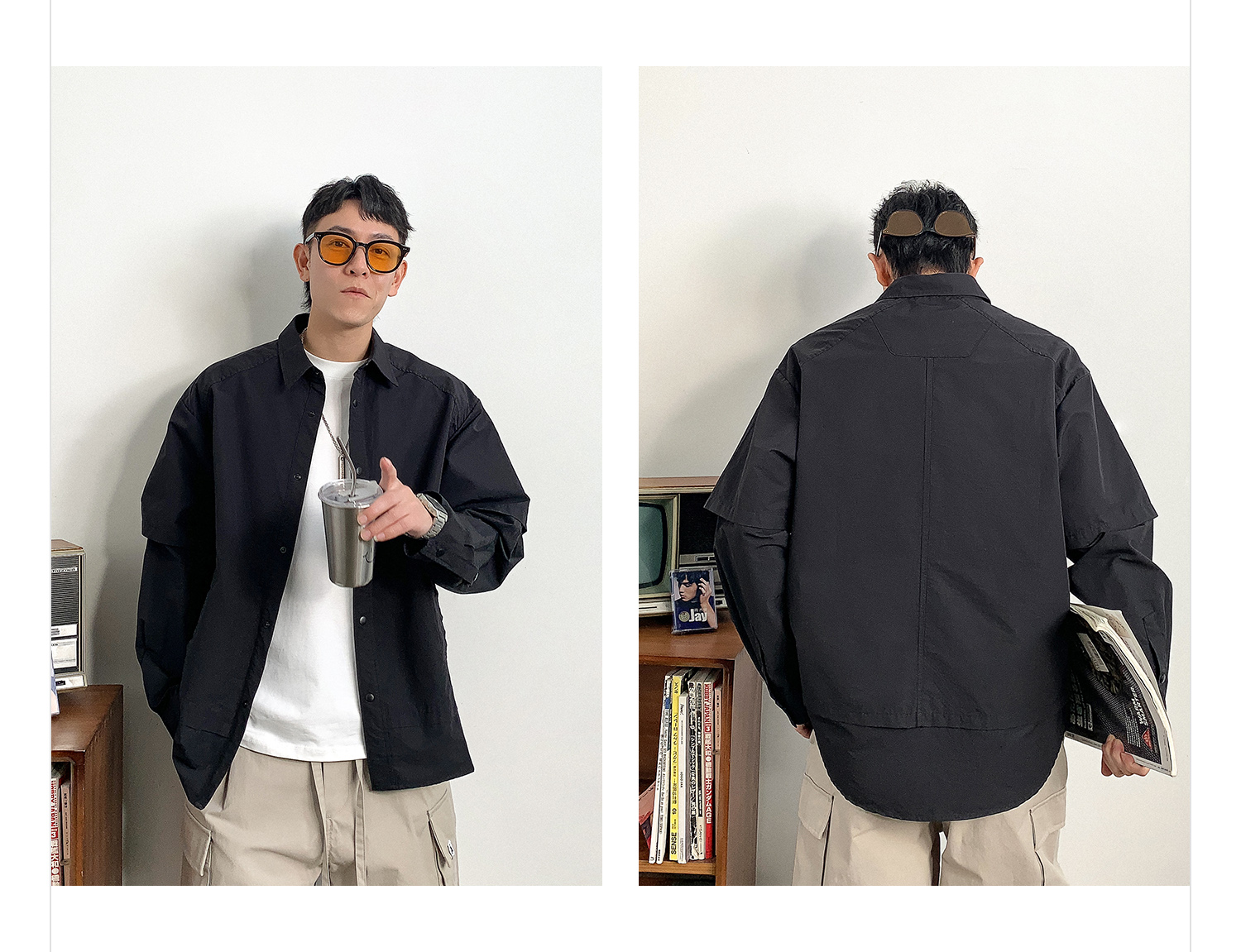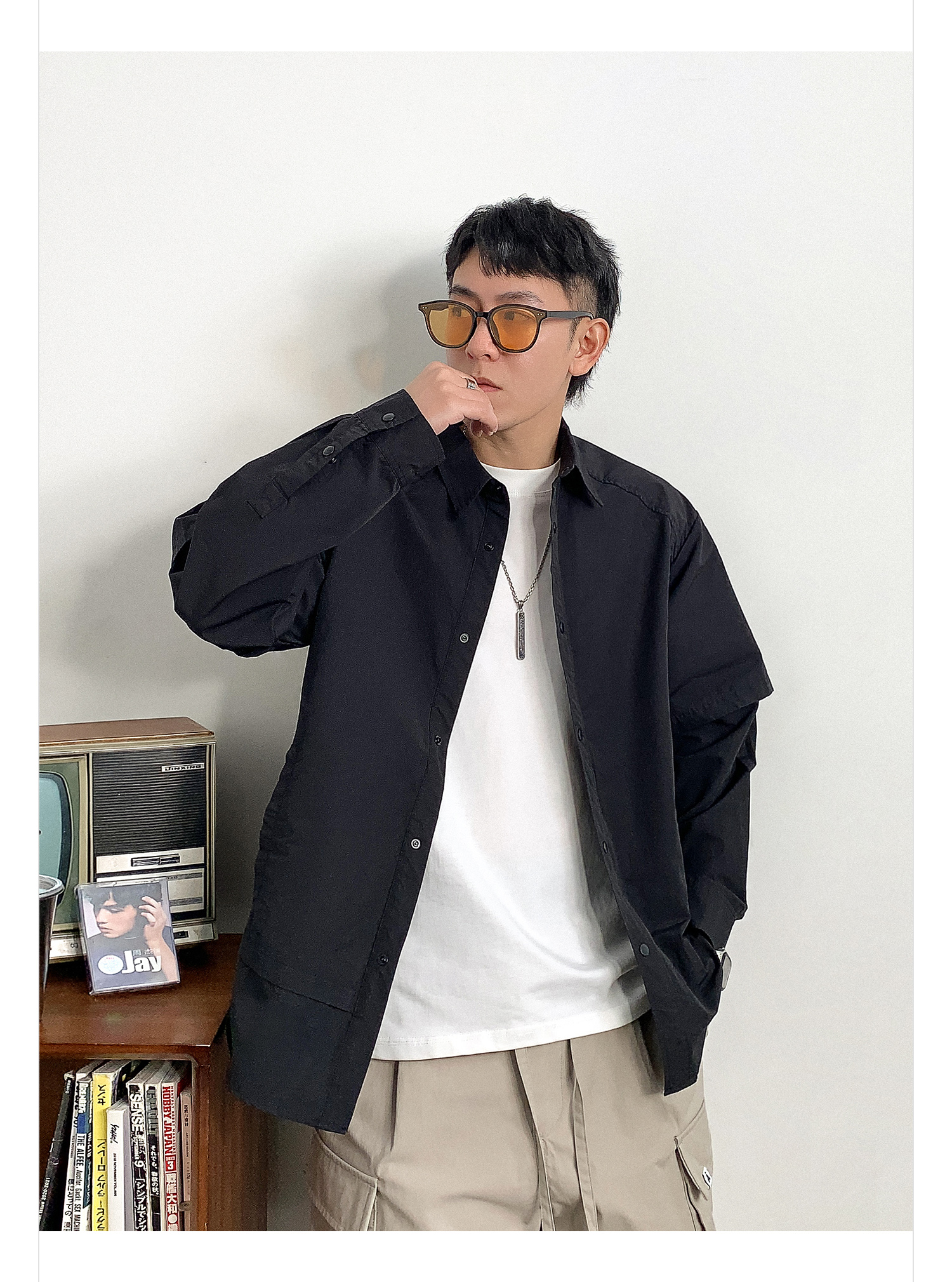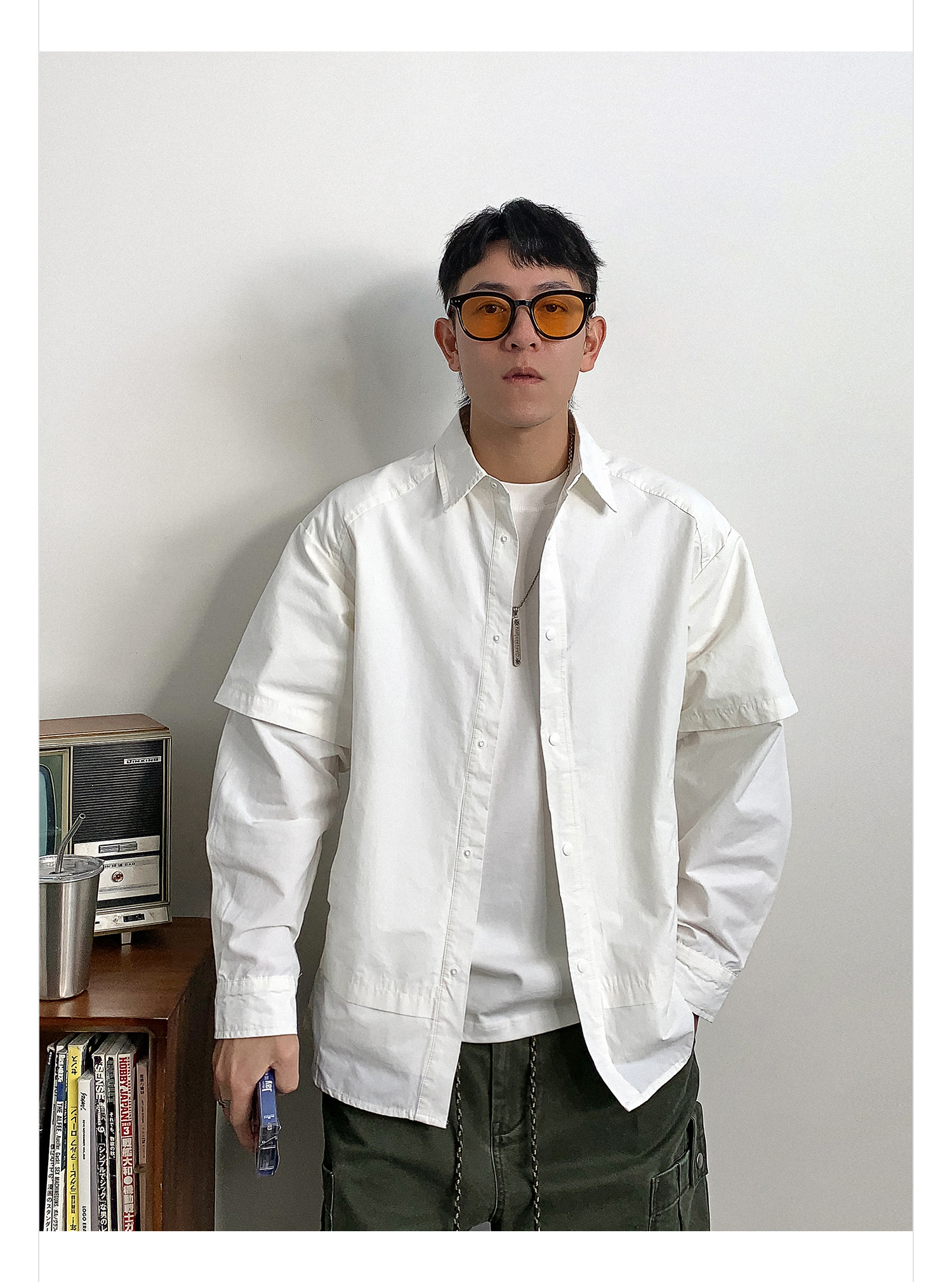 徐太浪假两件纯色长袖衬衫男2025新款春季大码男装休闲风衬衣外套