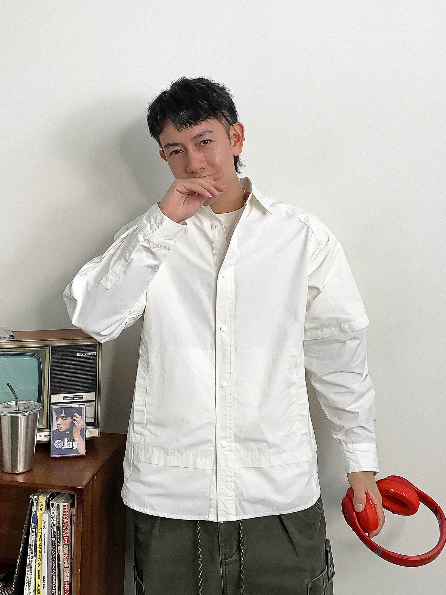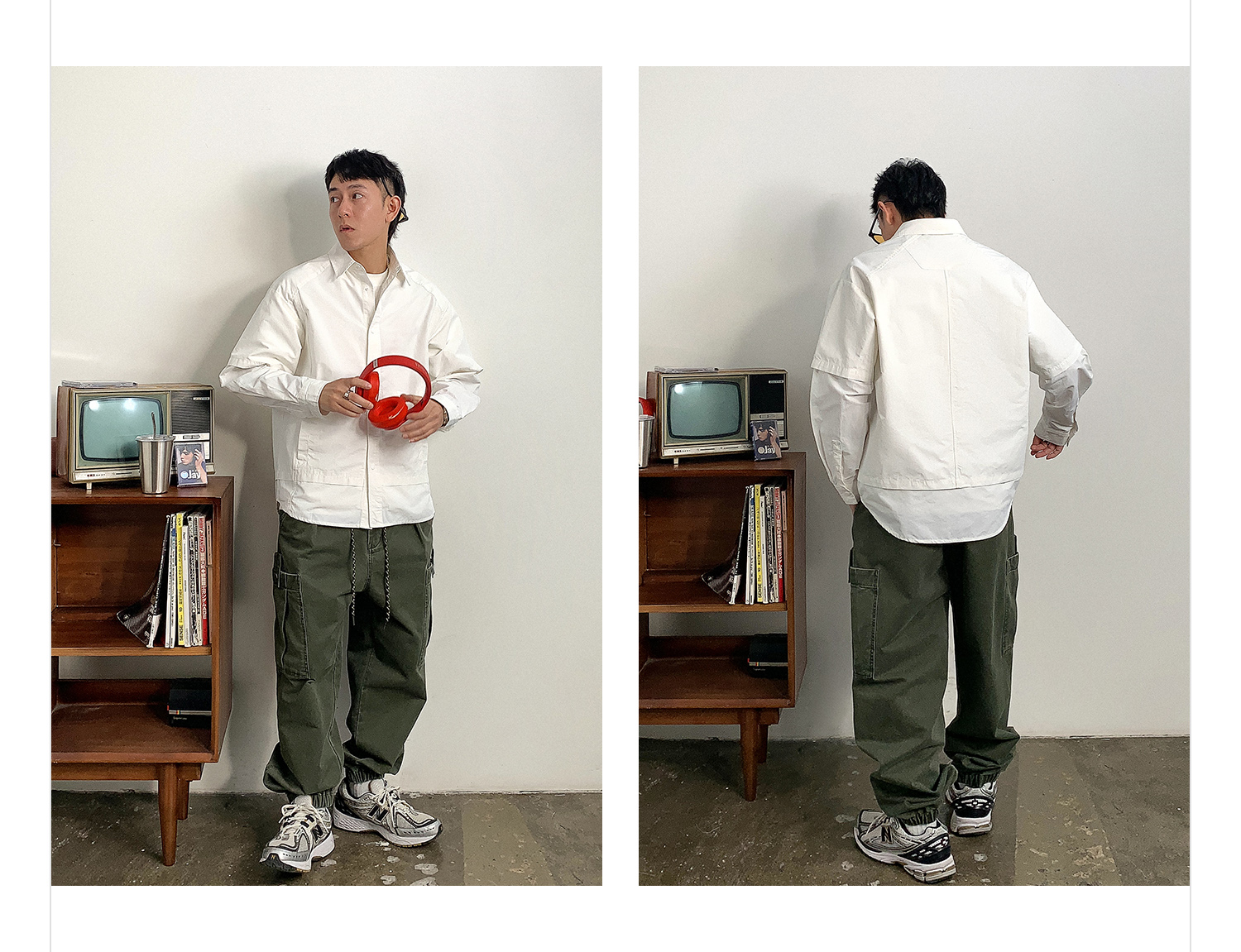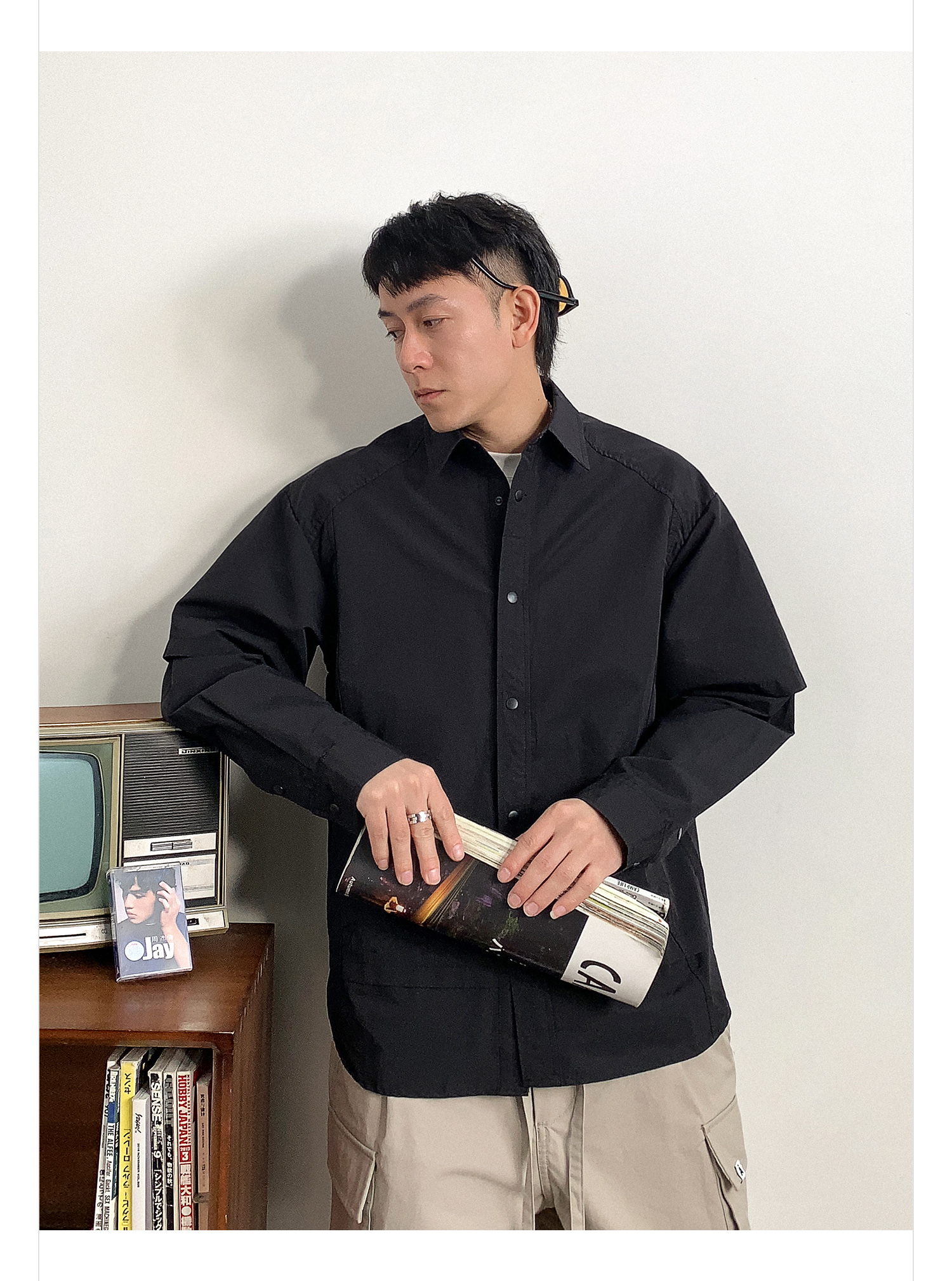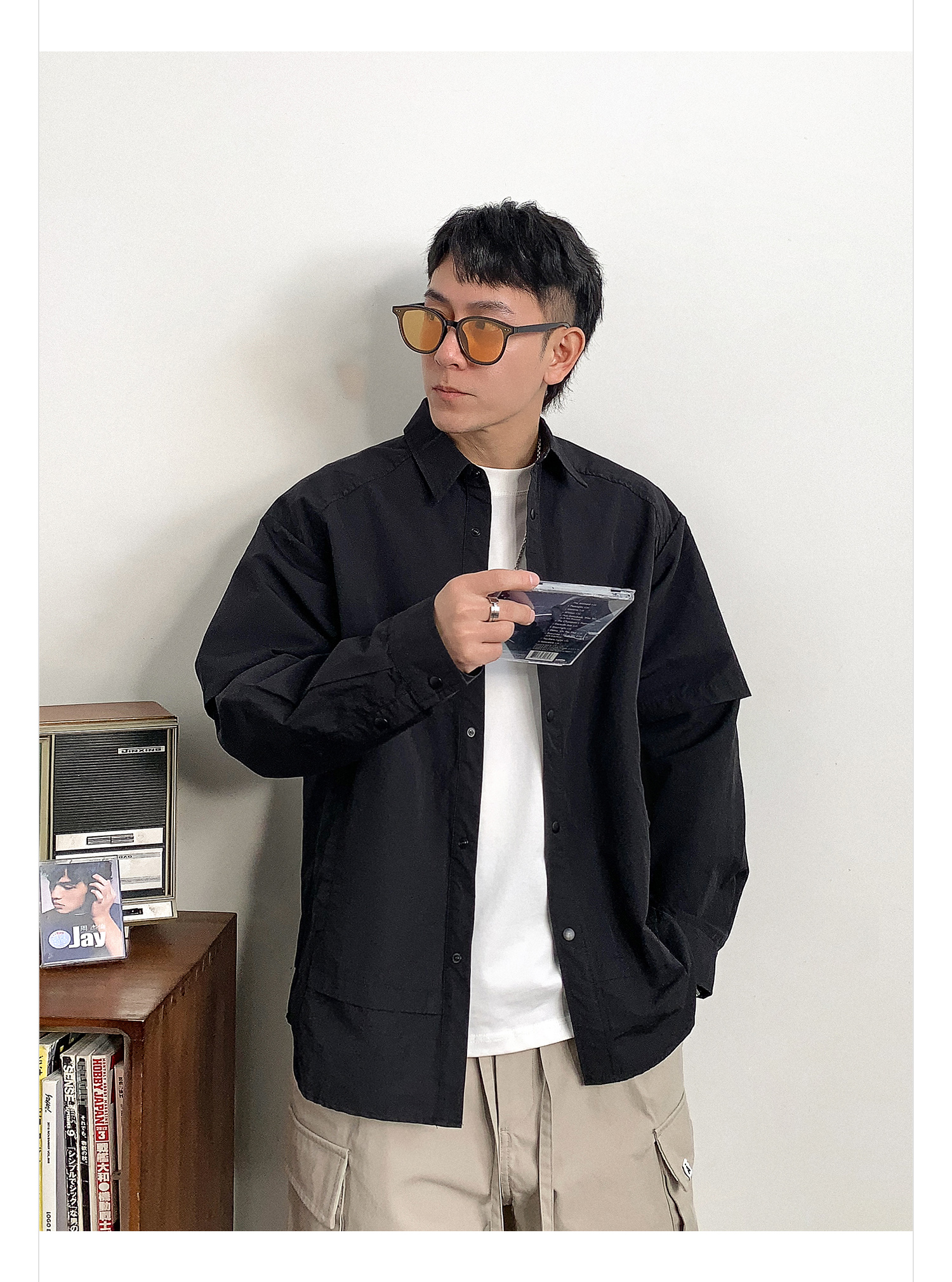 徐太浪假两件纯色长袖衬衫男2025新款春季大码男装休闲风衬衣外套