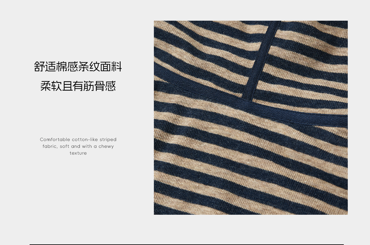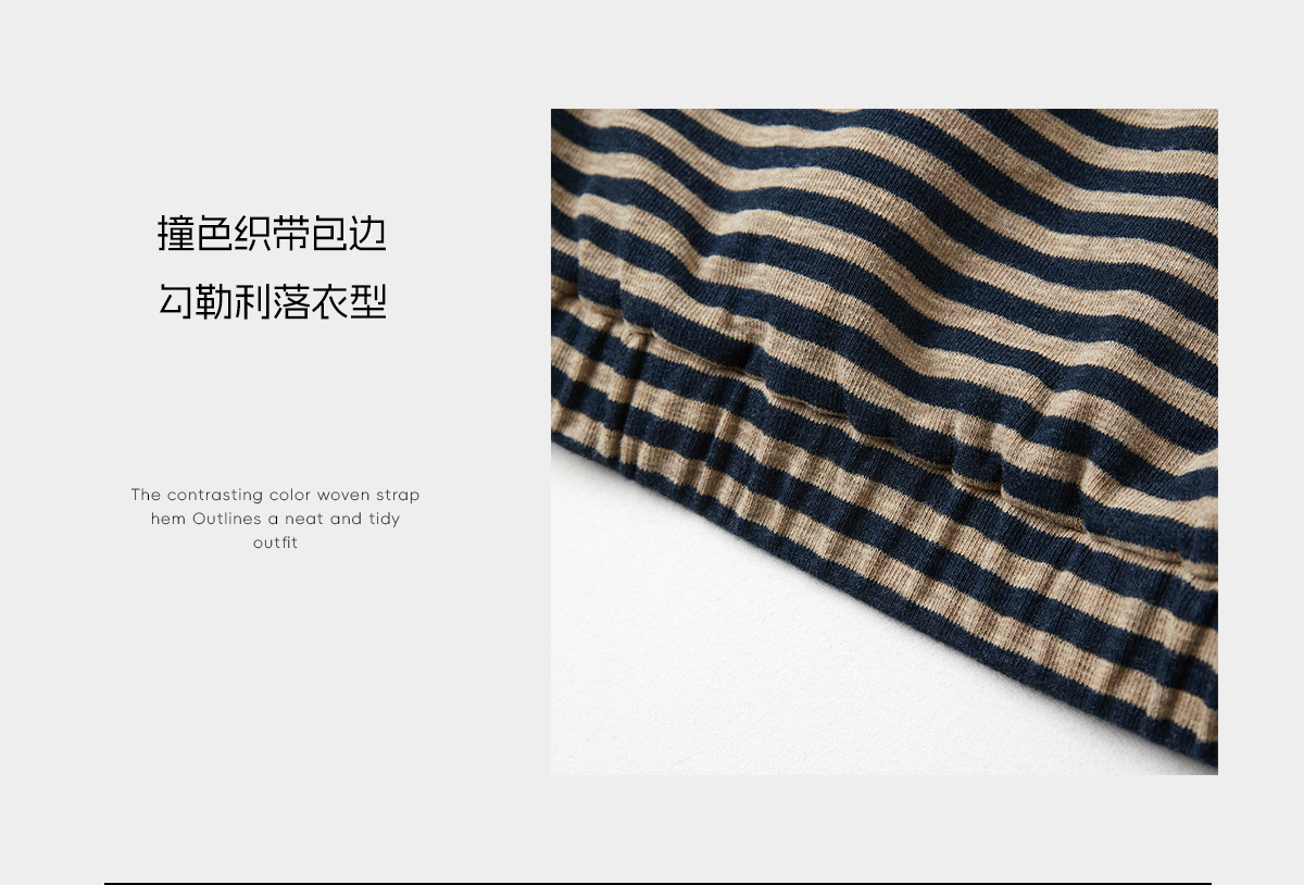 ROMI STUDIO“复古条纹“暖调撞色舒适圆领宽松长袖T恤 RWCASU5315