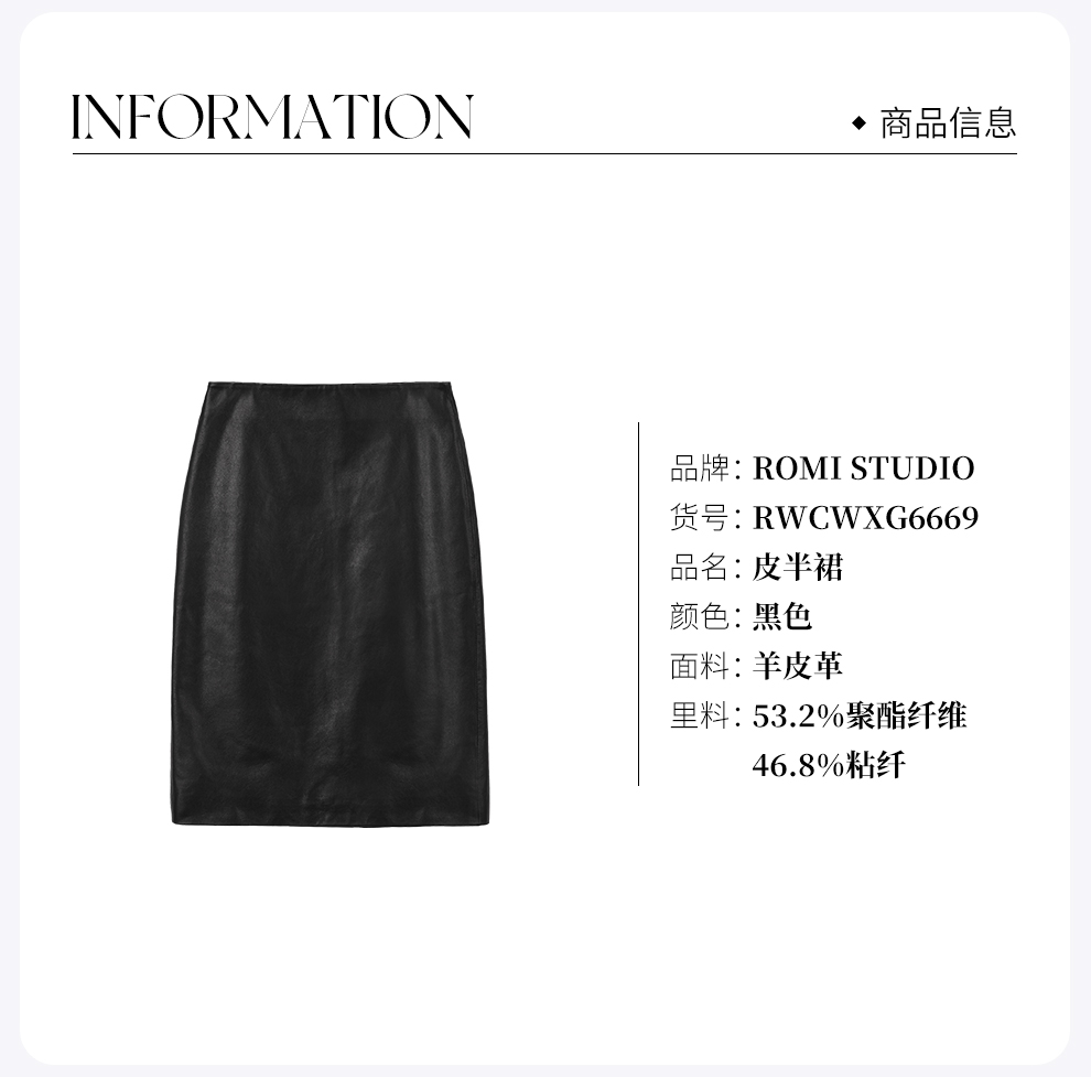 ROMI STUDIO“棕标系列”植鞣羊皮高腰直筒哑光皮半裙RWCWXG6669