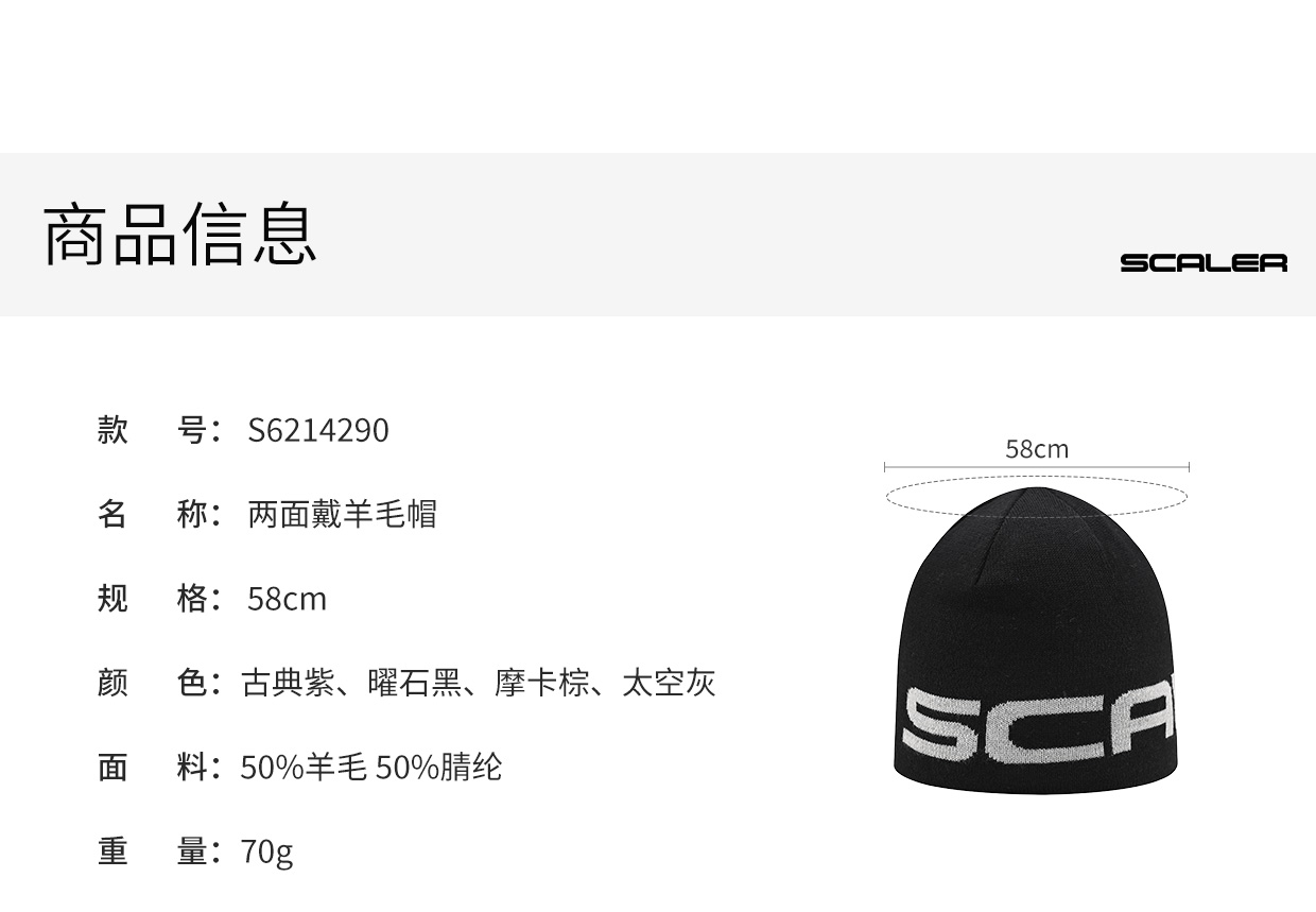 【两面戴羊毛帽】SCALER/思凯乐 防风防寒保暖时尚冷帽冷帽S6214290